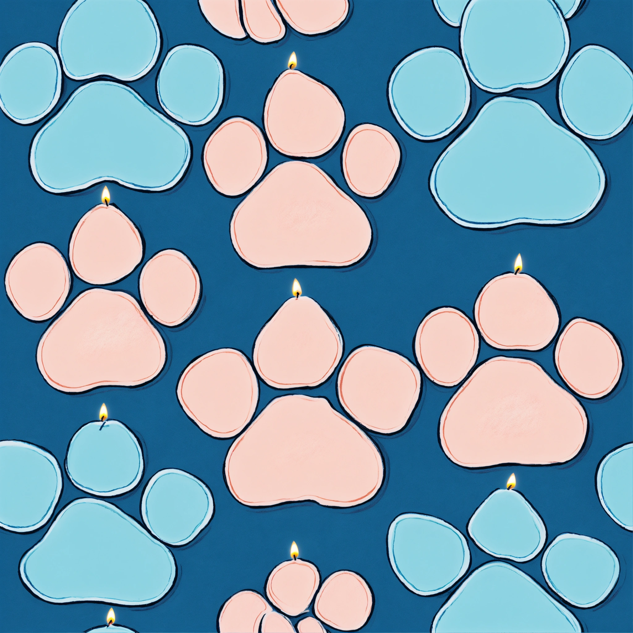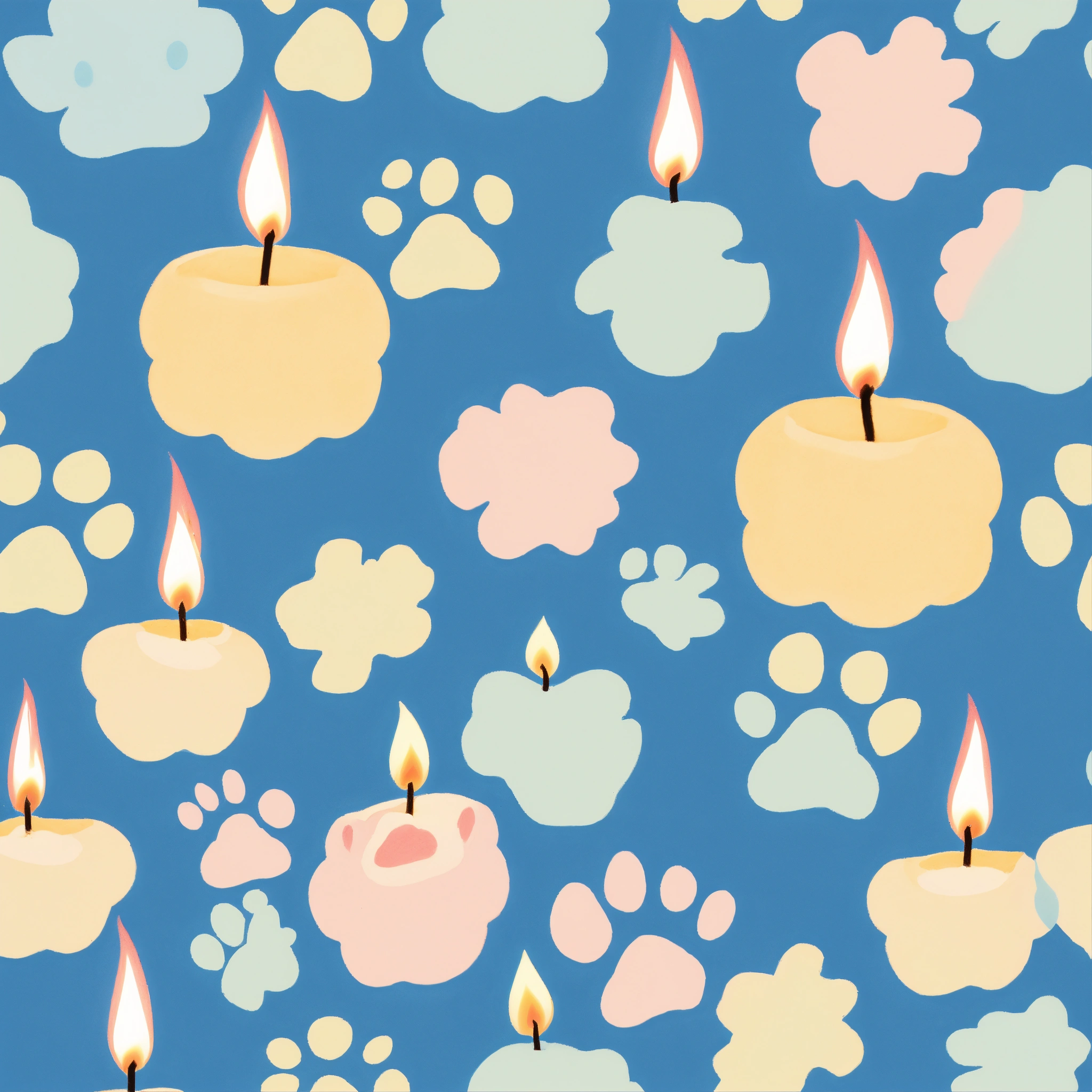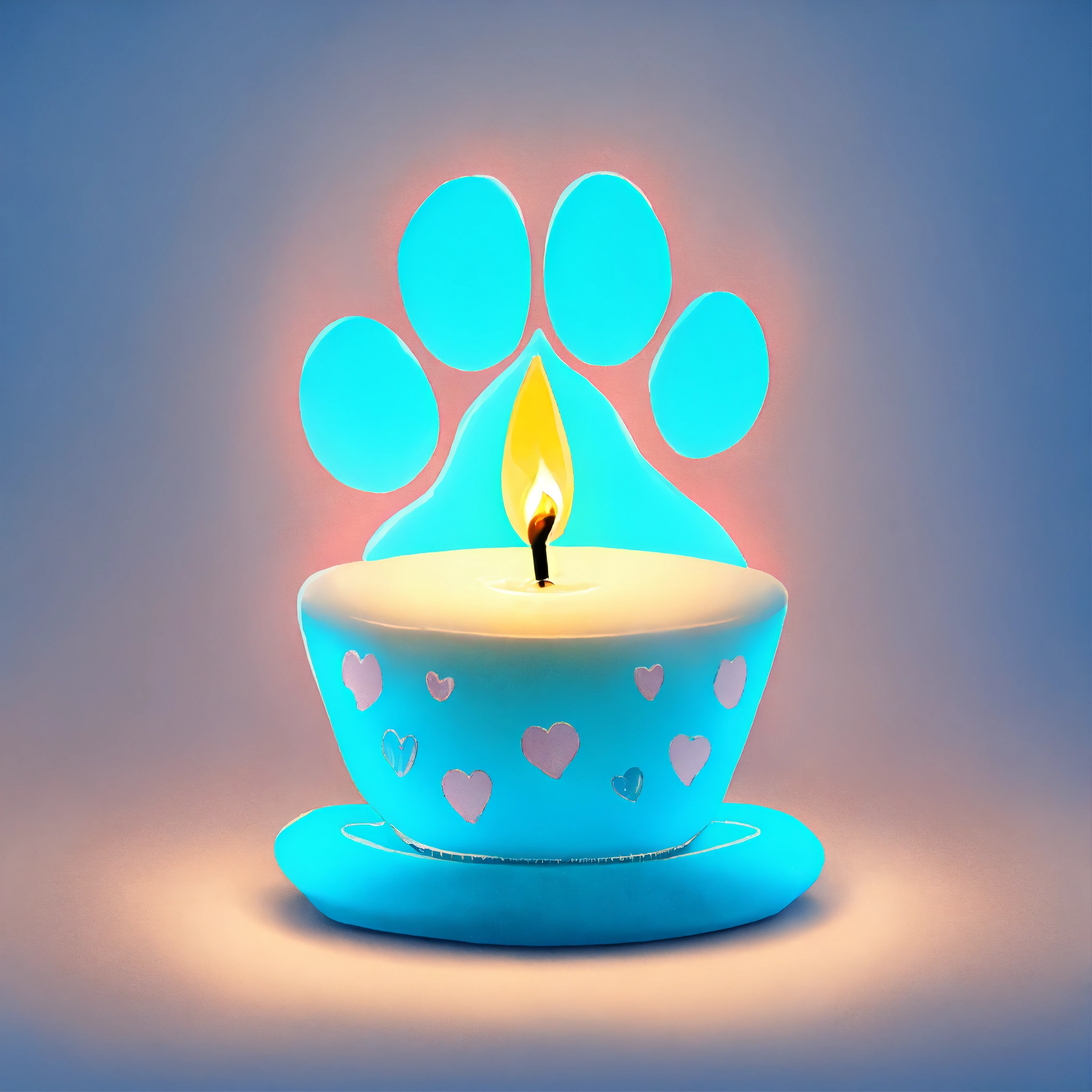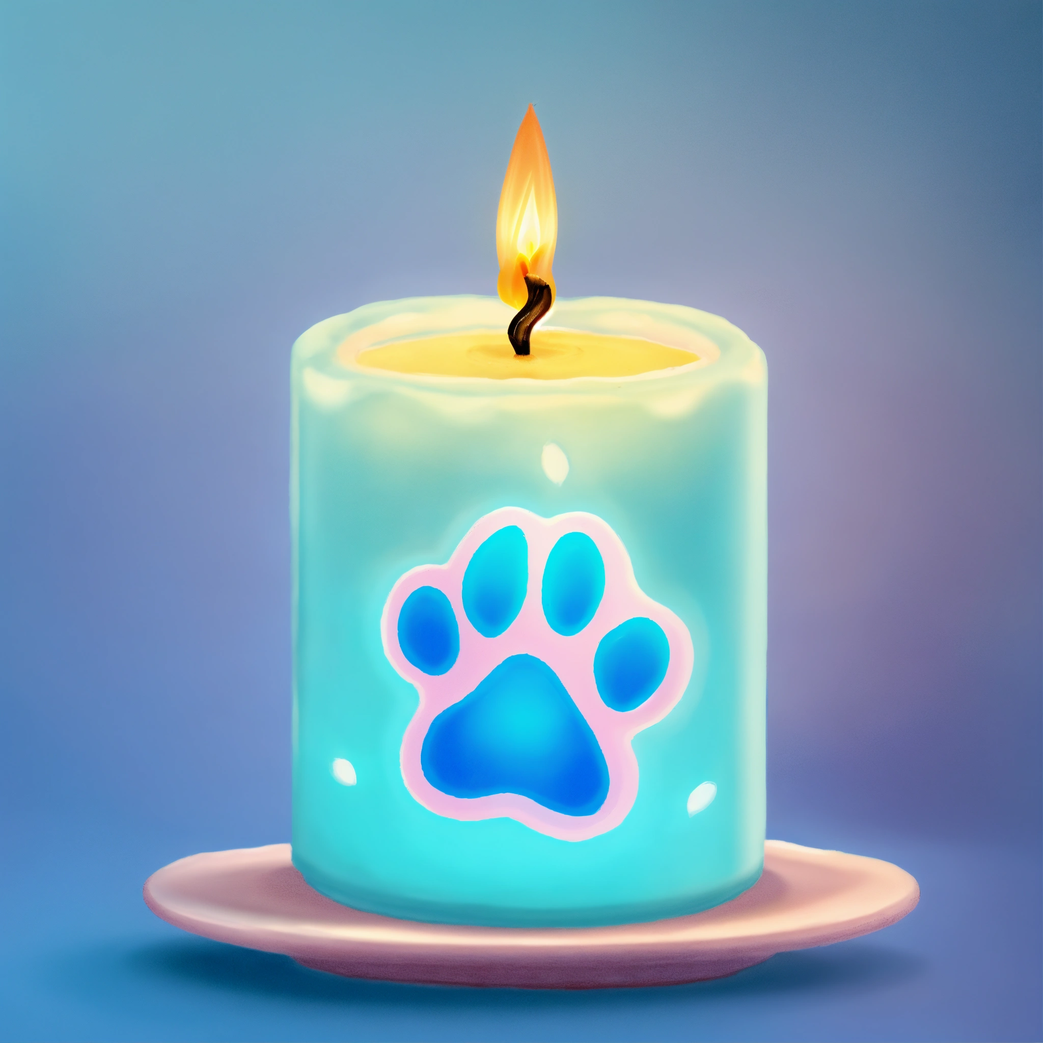 Cute dog paw shaped small lighted candle light blue pastel drawing