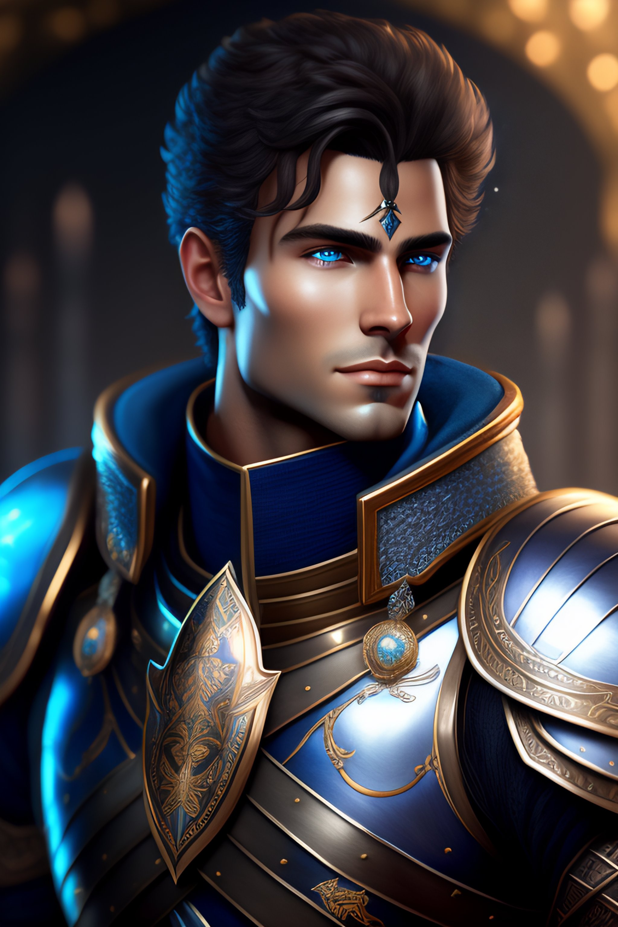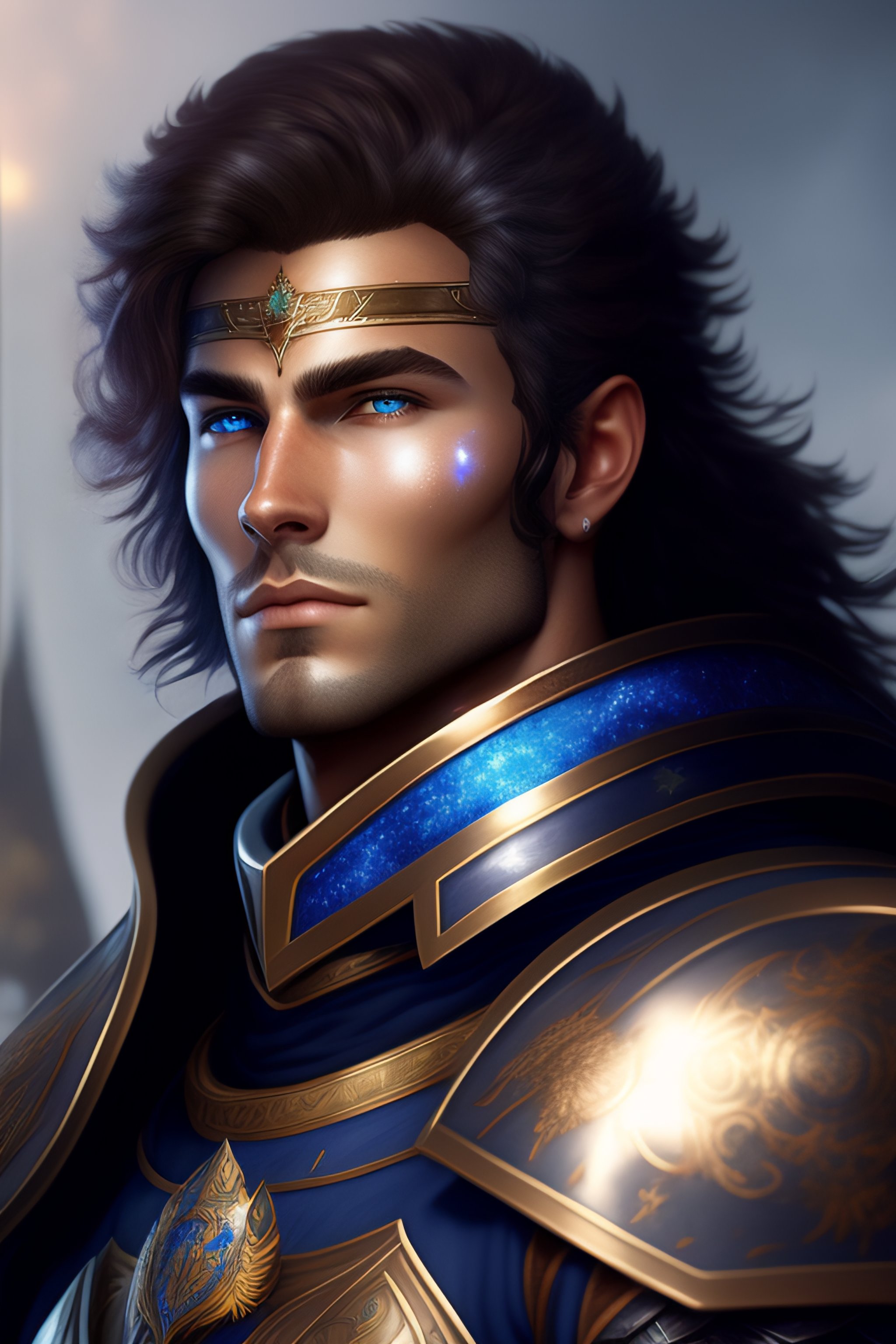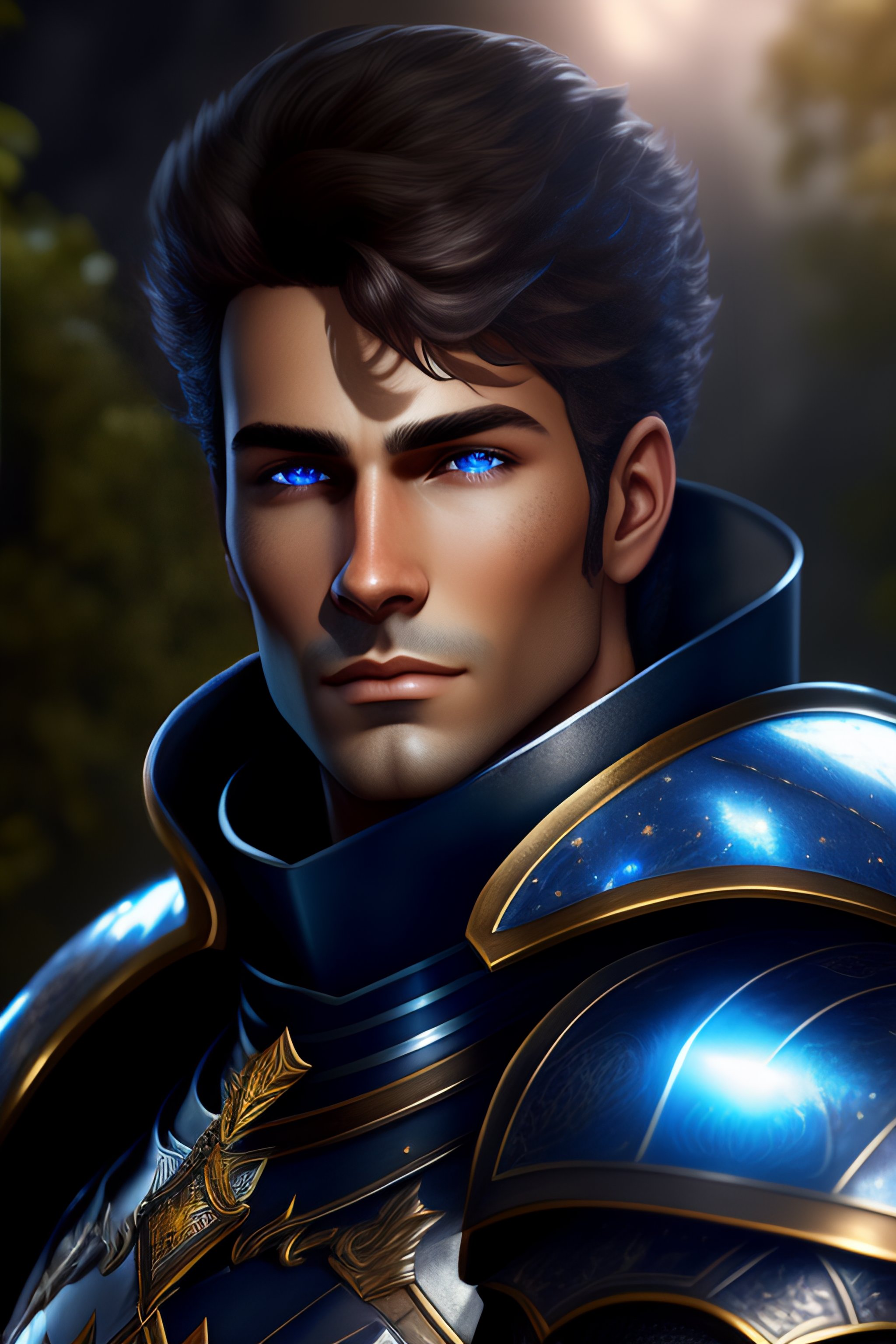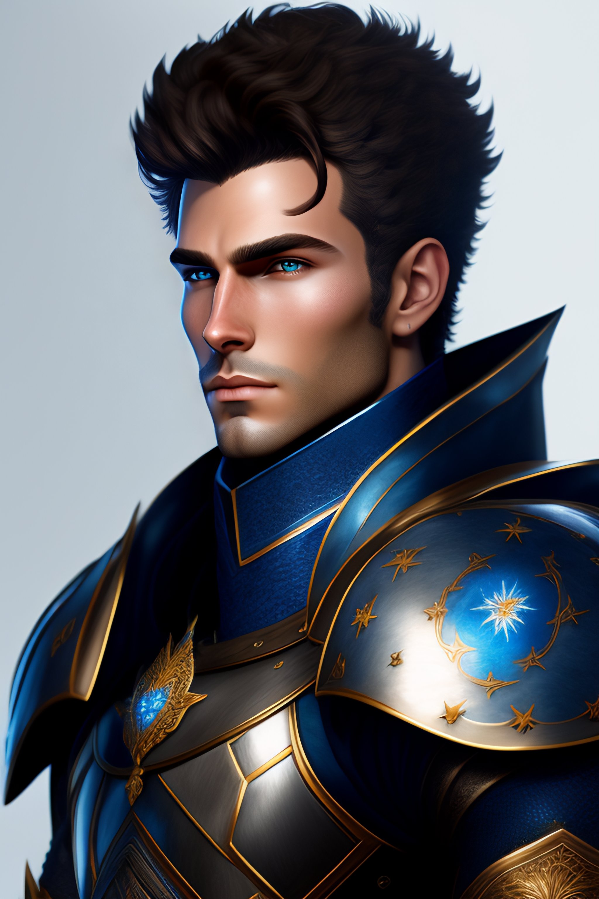 A portrait of a young human male paladin with scruffy brown hair and blue eyes with wearing silver armor engraved with a holy symbol of a dark moon, masterpiece, best quality, ultra detailed, highly detailed, artstation, illustration, sylvari portrait, 8 k quality, art