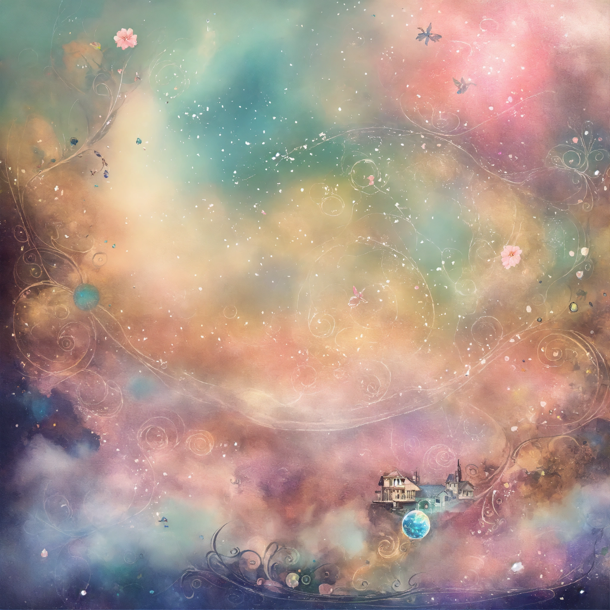 Shabby chic dreamy mist pastel junk journals can you draw make me a map over the galaxy swirling magical fairytale abstract art style
