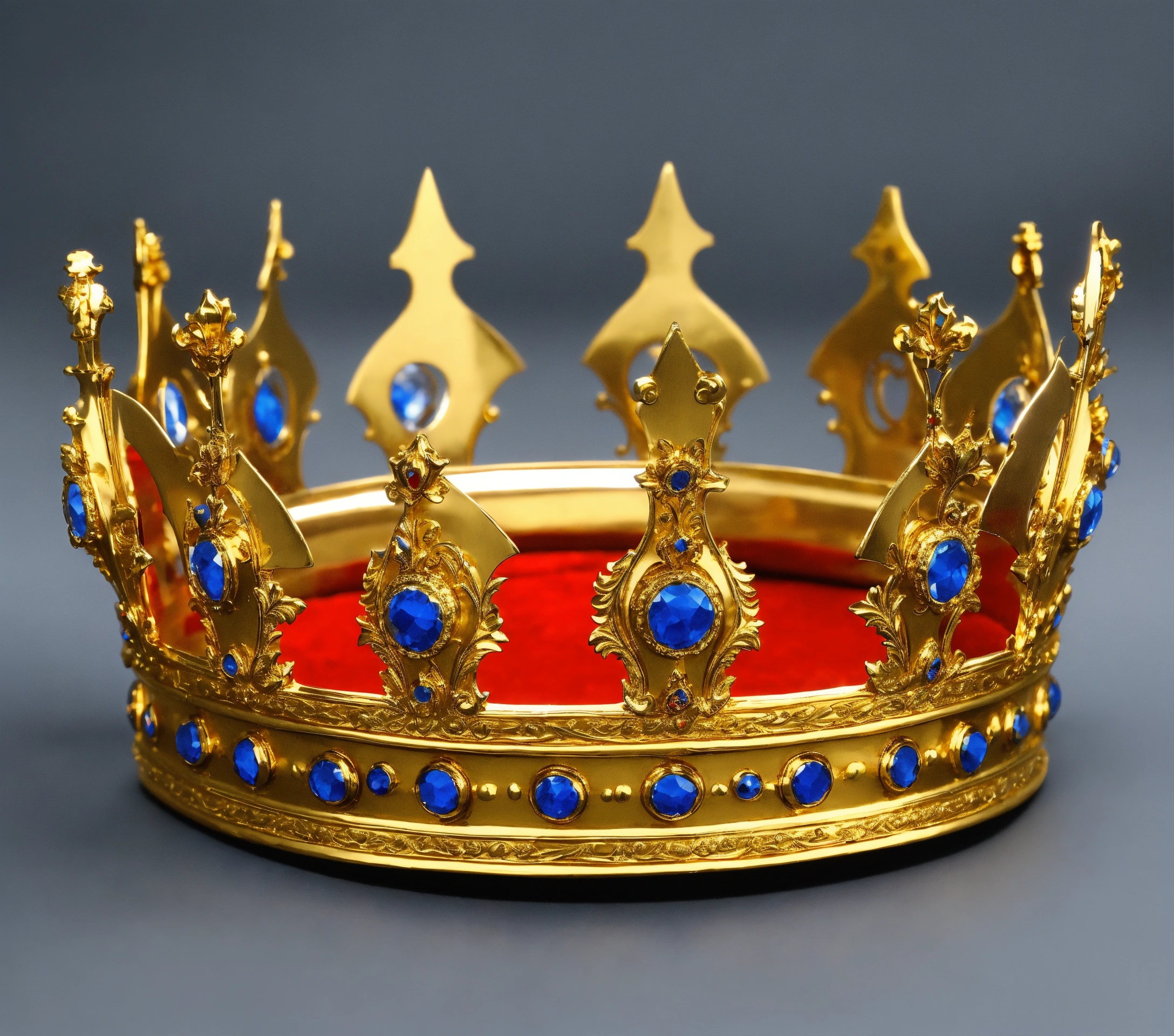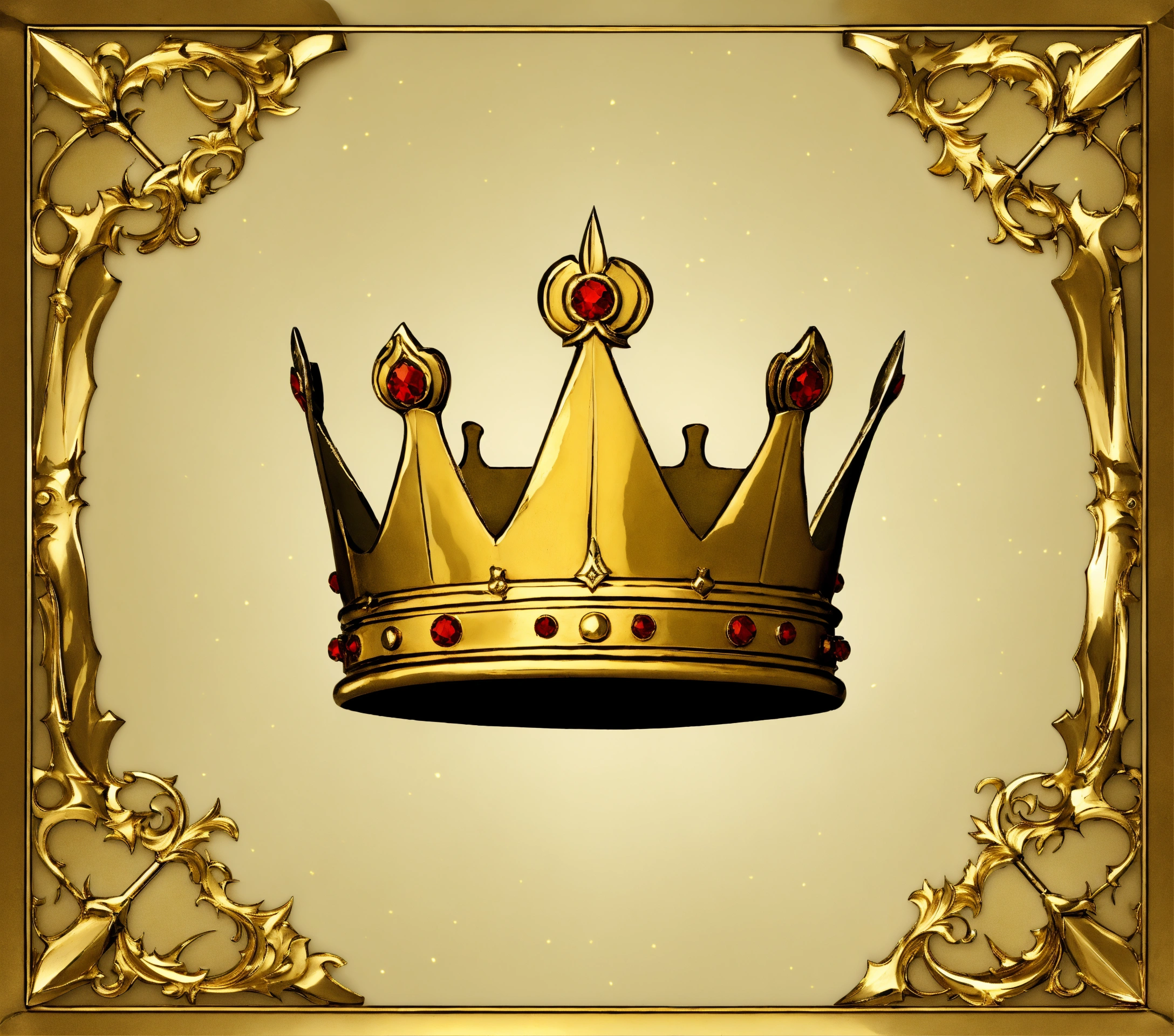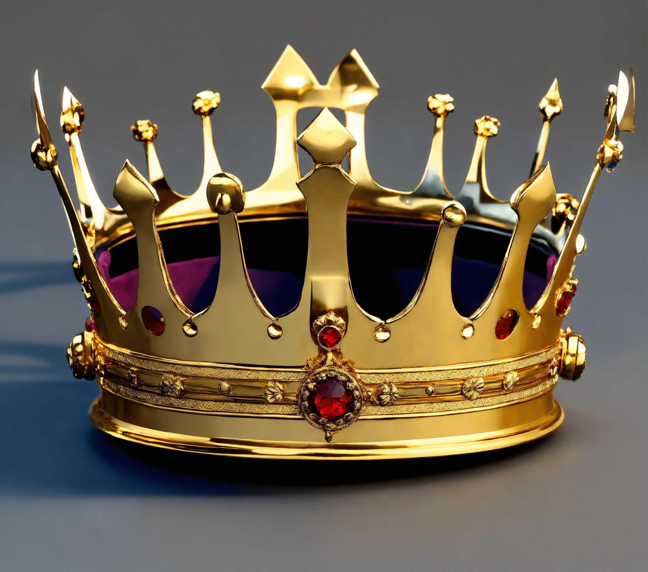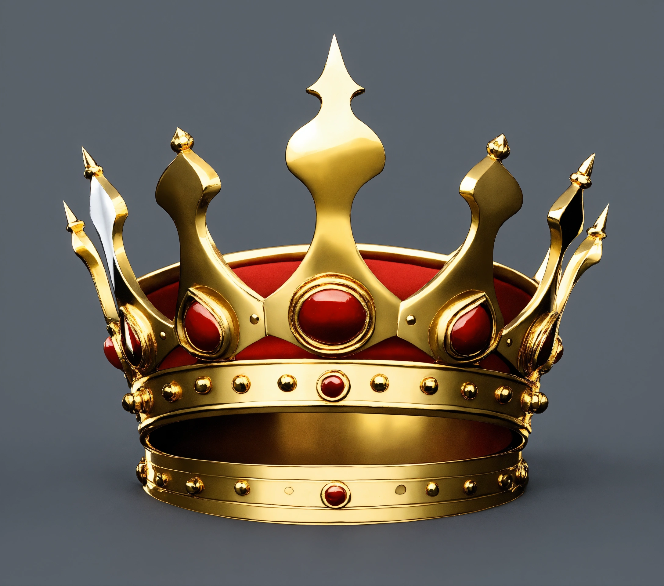 Create a medieval king crown plain gold, white background, plain gold crown, with 5 sword tips, shape like sword the tips of it, plain crown with 5 sword shape tips