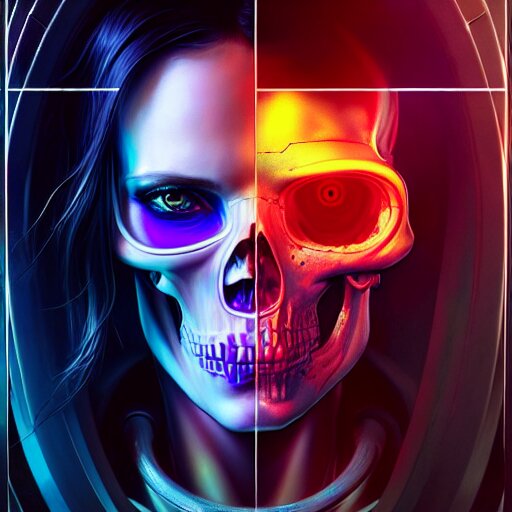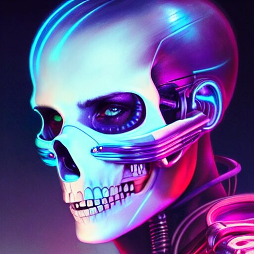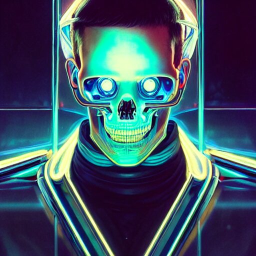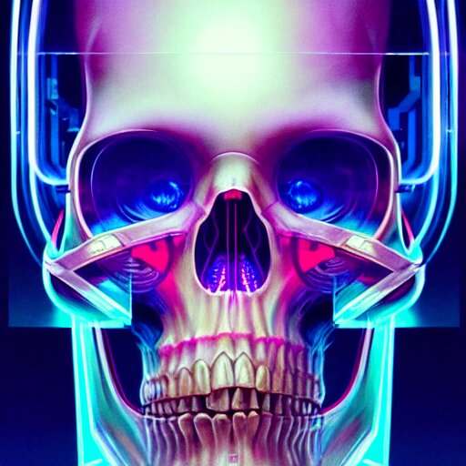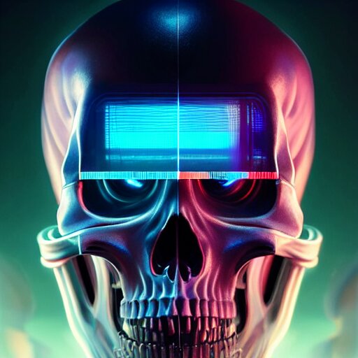Portrait painting of a cyberpunk synthwave skull wrapped in glass frosted perspex, ultra realistic, concept art, intricate details, eerie, highly detailed, photorealistic, octane render, 8 k, unreal engine. art by artgerm and greg rutkowski and charlie bowater and magali villeneuve and alphonse mucha