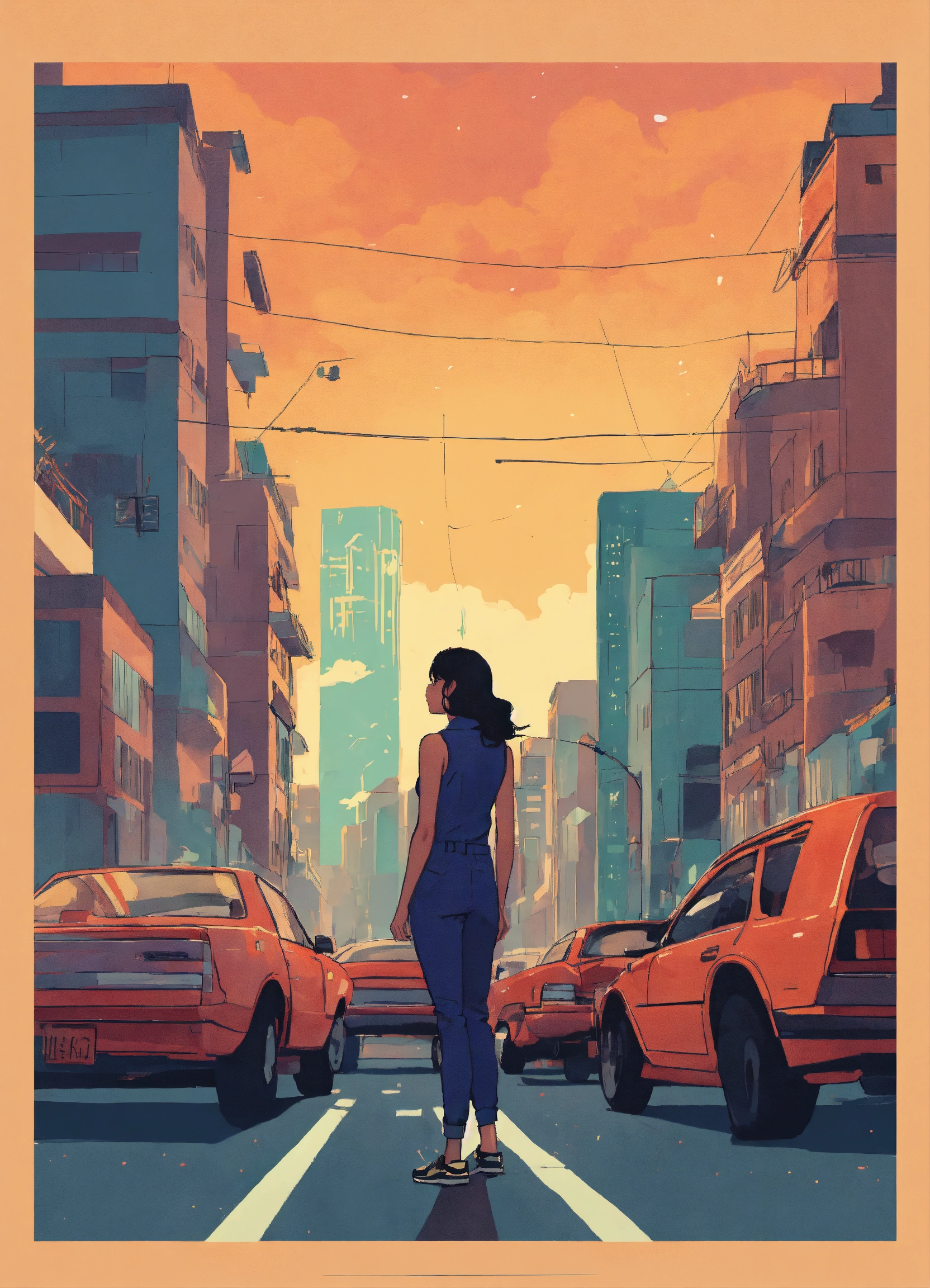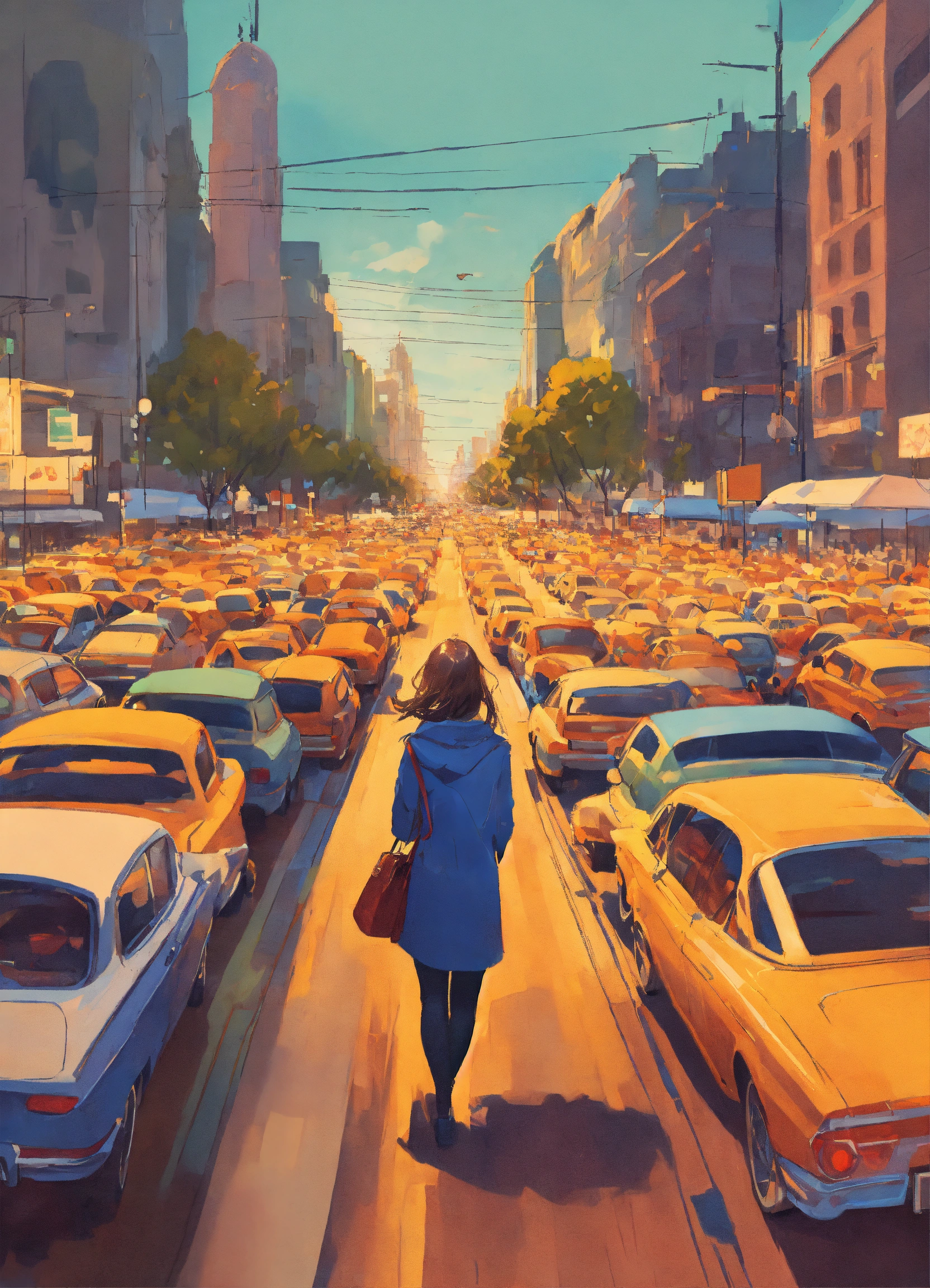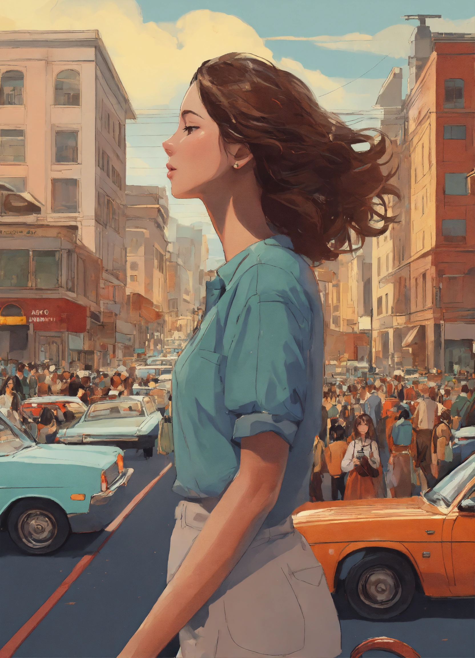 in the middle of a city with lot of people and cars