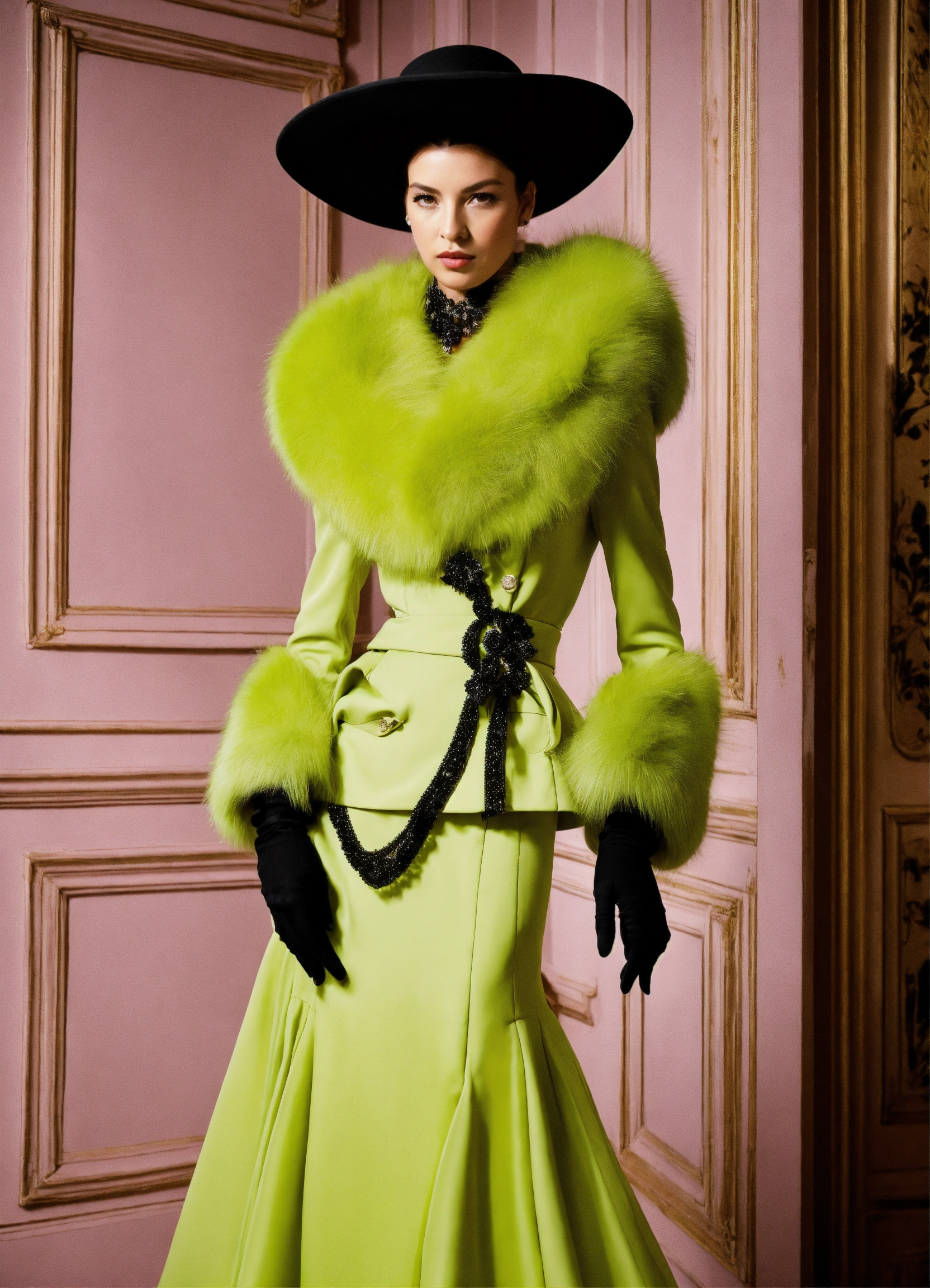 Christian dior, galliano john, haute couture fall 2009, basques, girdles, lace-edged slips, petticoats, black pearl, black gloves, touch of leoperd, curly hair chignon, tule vail, high heels, parisian salon, boutique, montaigne avenue, bright space well lit suit, bar suit, le new look, white walls, fluorescent green fur, leopard, isabella blow