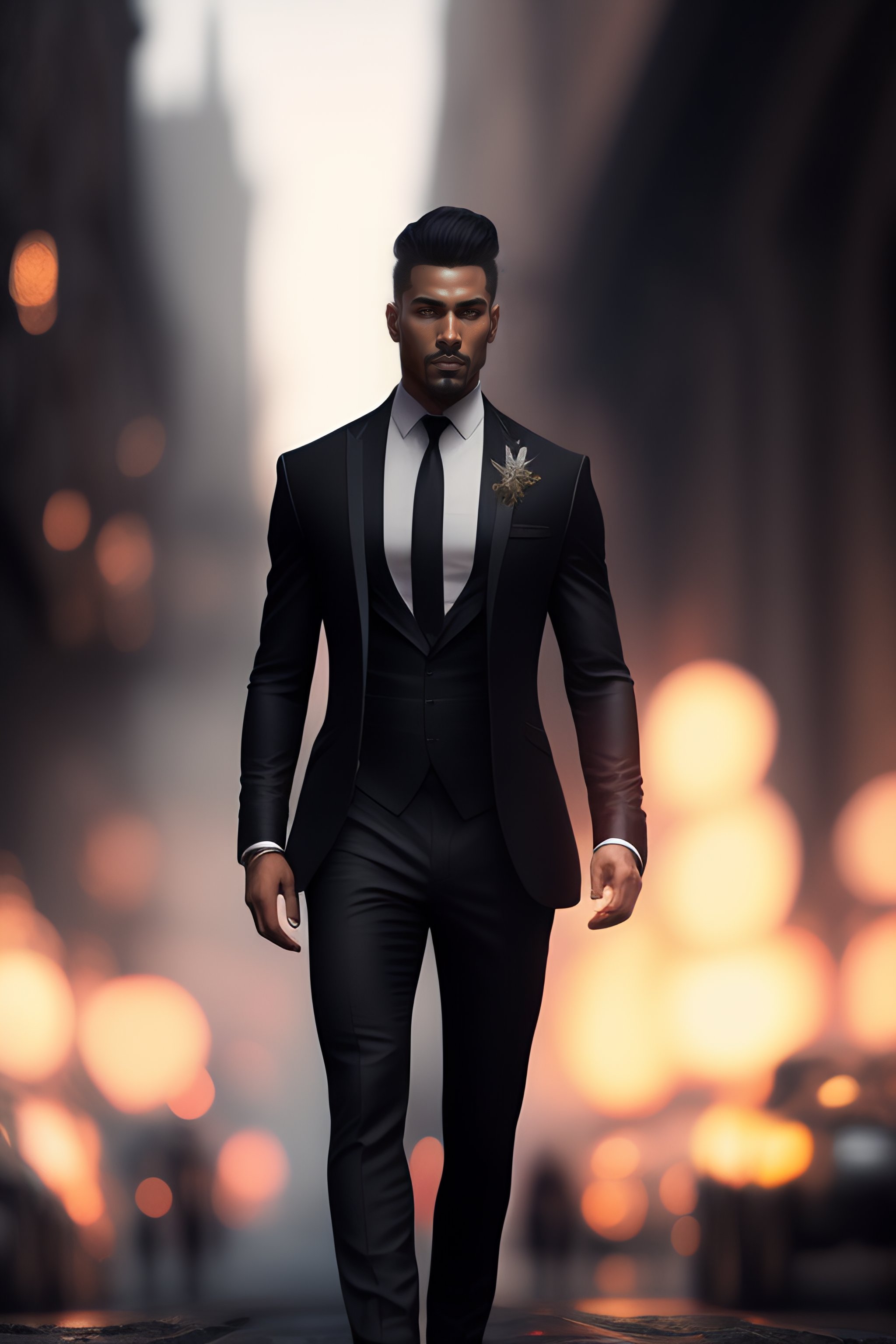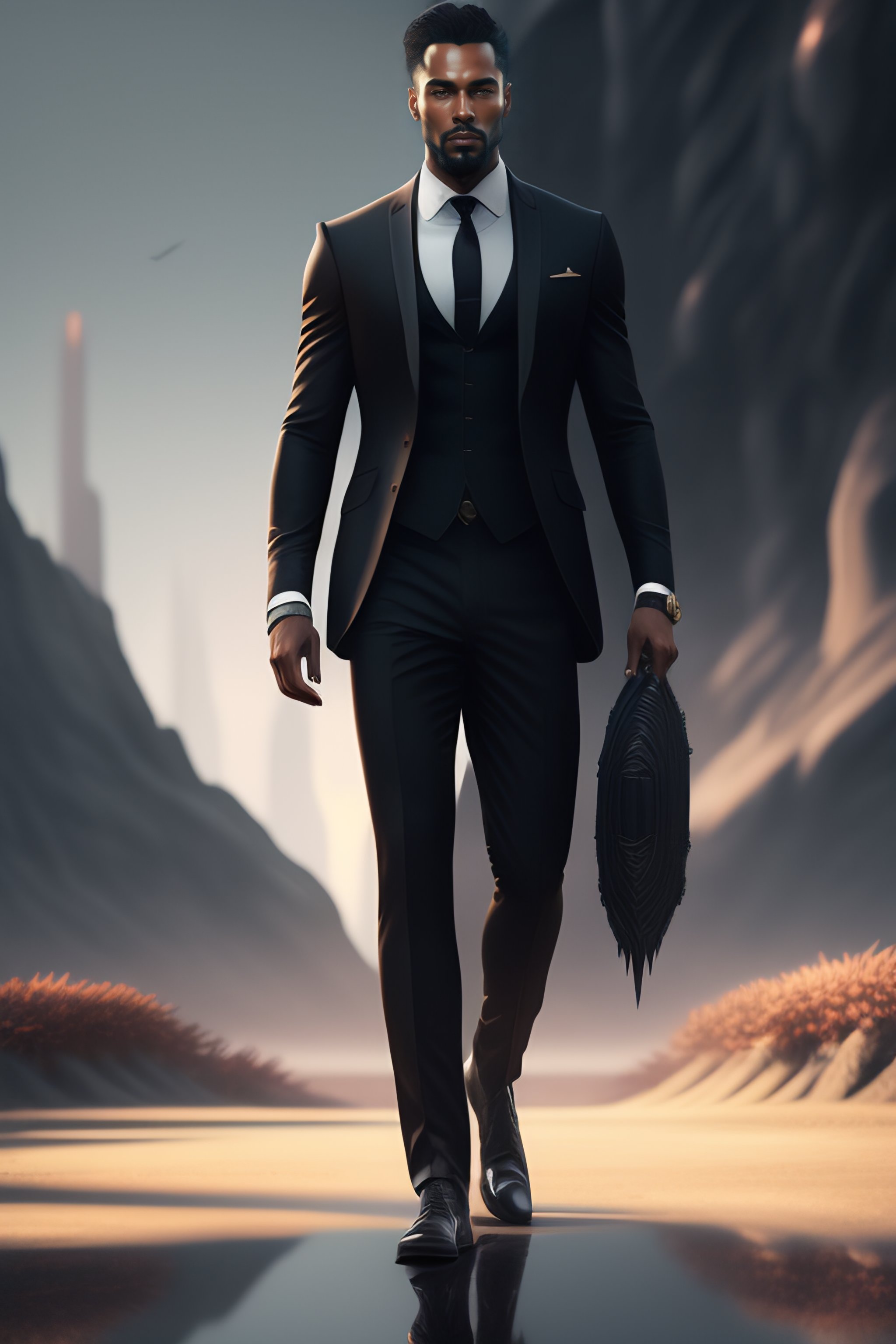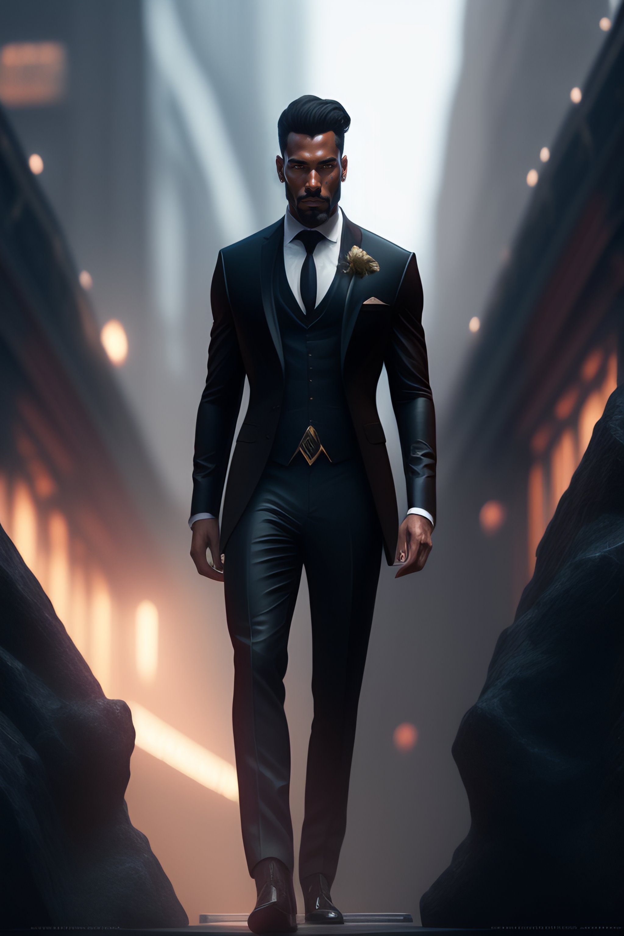 Man with a black suit highly detailed, illustration, fantasy art, in the style of greg rutkowski, cinematic shot, epic, fantasy, complex, hyperdetailed, art station, concept art, smooth, sharp focus, ray tracing