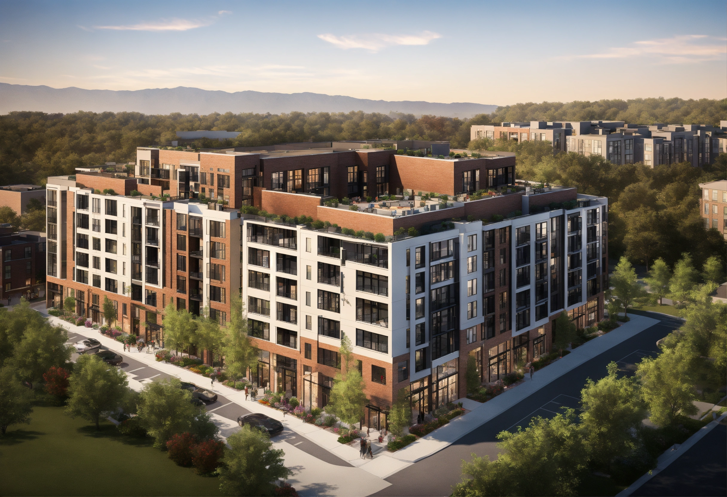 This 10-story mid-rise building is a mixed-use development with multi-family residential units, ground-floor retail/restaurant, townhomes, and a community center. the residential units are a mix of condominiums and rental apartments, and the ground-floor retail/restaurant space offers a variety of amenities to the residents and the surrounding community. the townhomes provide a more spacious and private living option, and the community center is a valuable resource for residents of all ages. the top floor consists of an open-space penthouse unit with an adjoining terrace. the building is located in a convenient and desirable neighborhood, close to public transportation, schools, and parks.