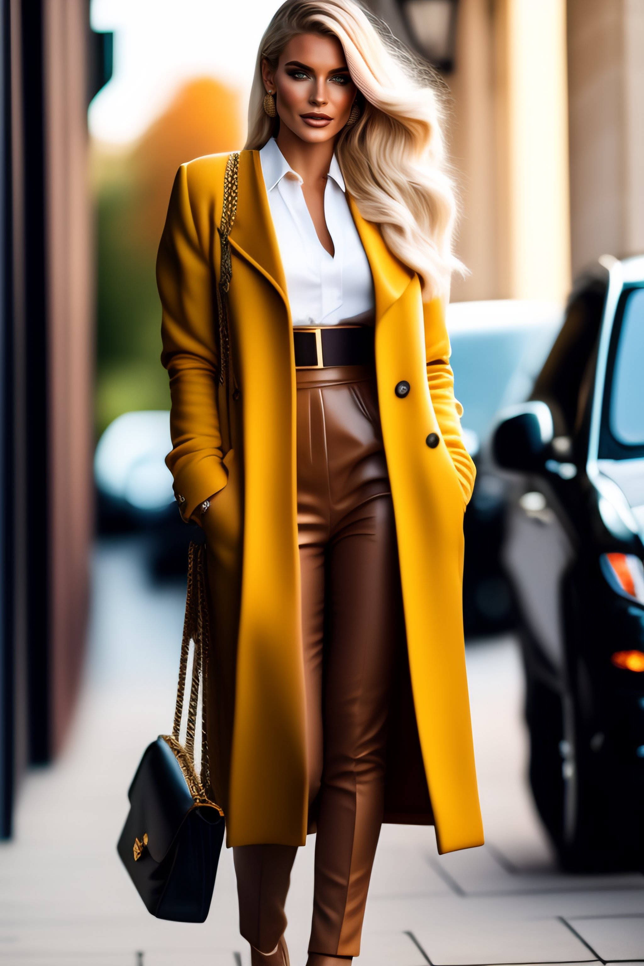 Professional photo of fall outfits collection, blonde model, full body, elle style, london, natural light, vogue, realistic, fashion catalogue