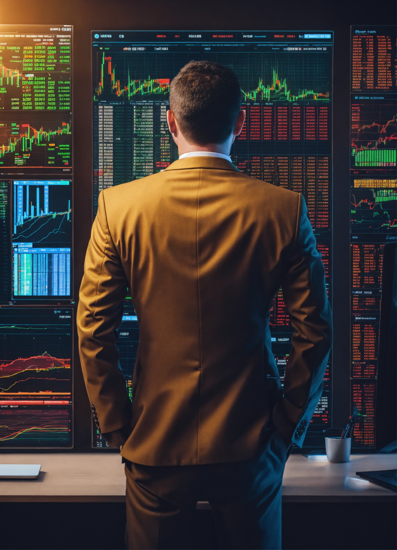 Businessman standing and watching the crypto market