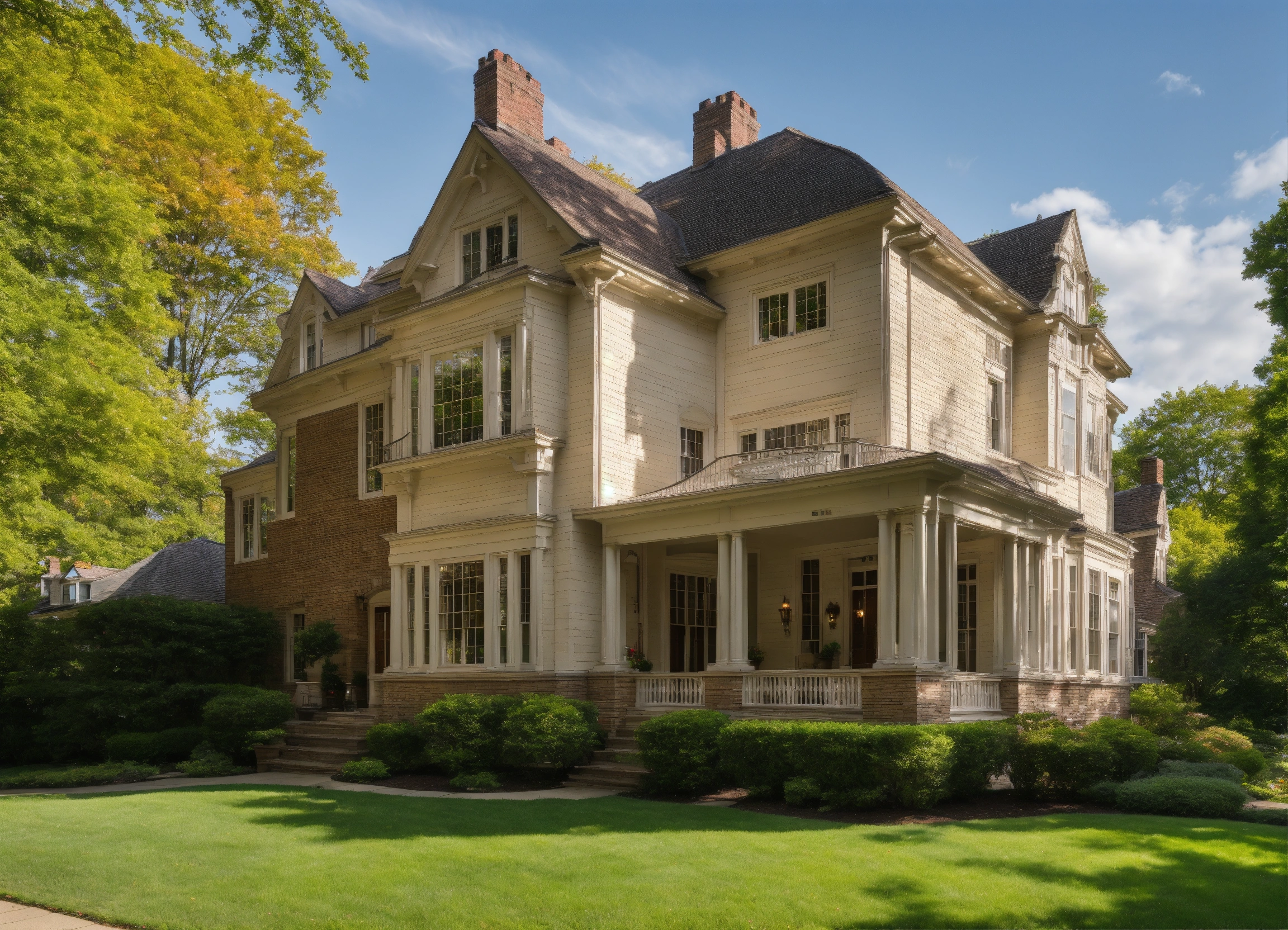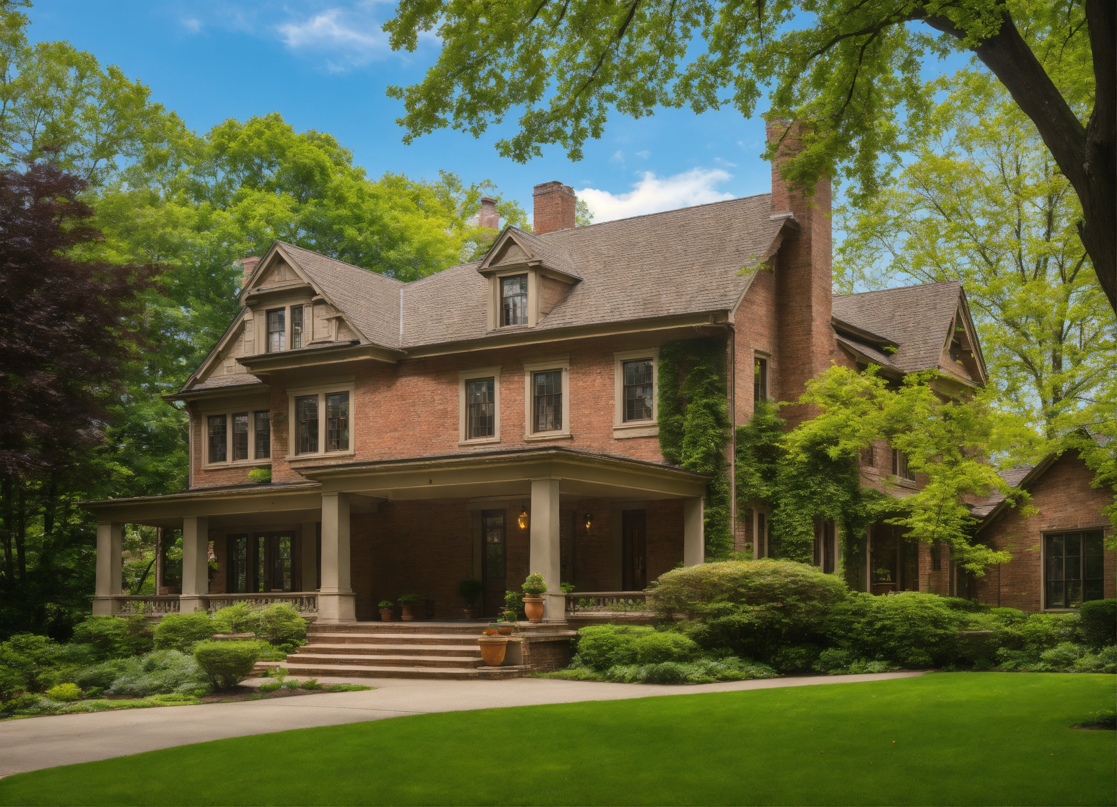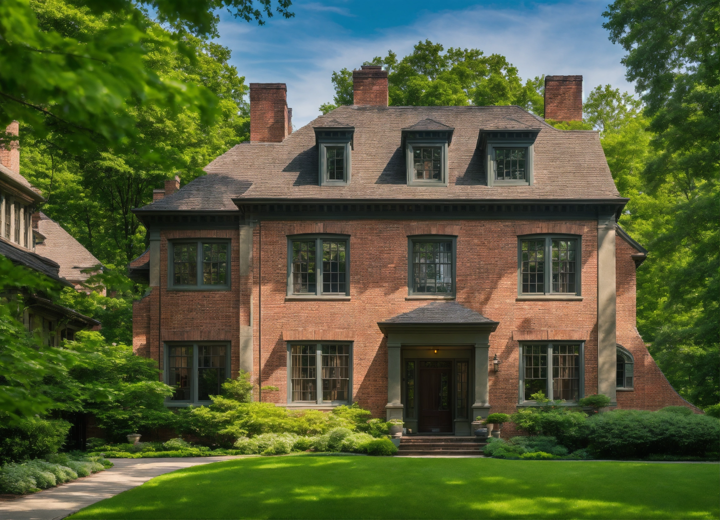 Early 20th century colonial mansion with dormers exterior in shaker heights