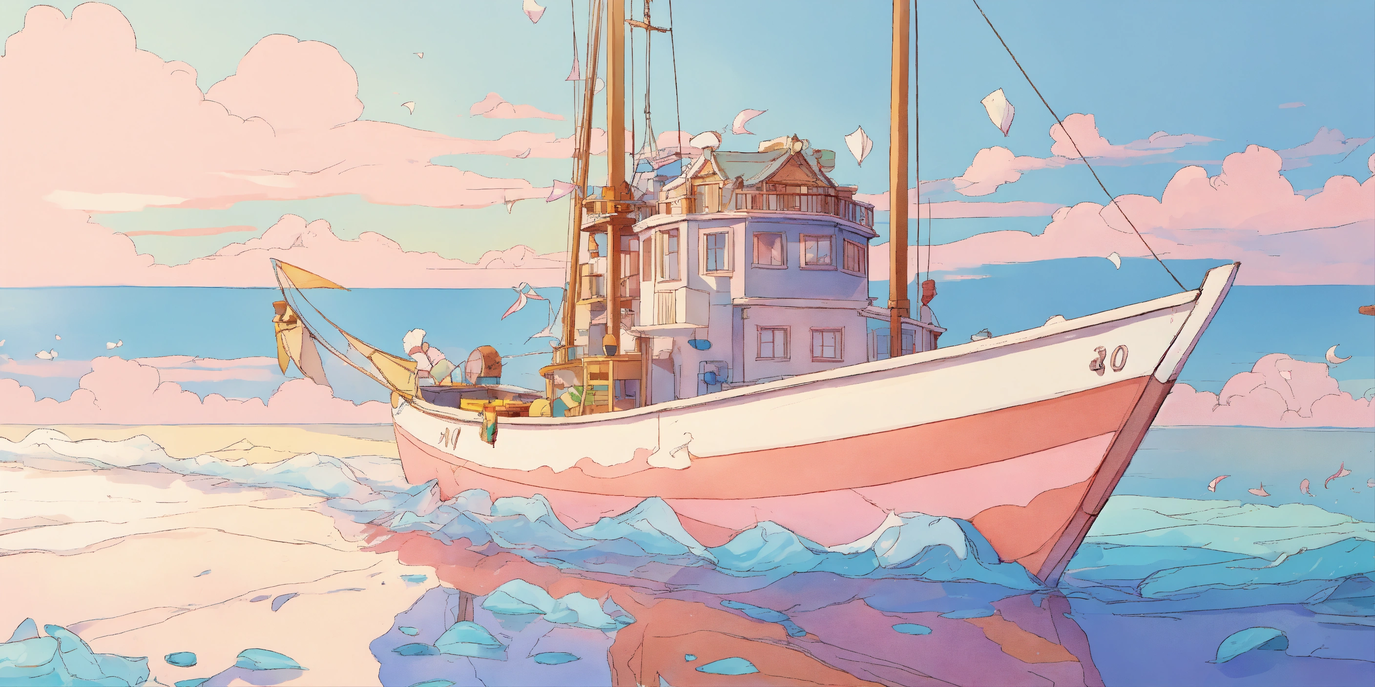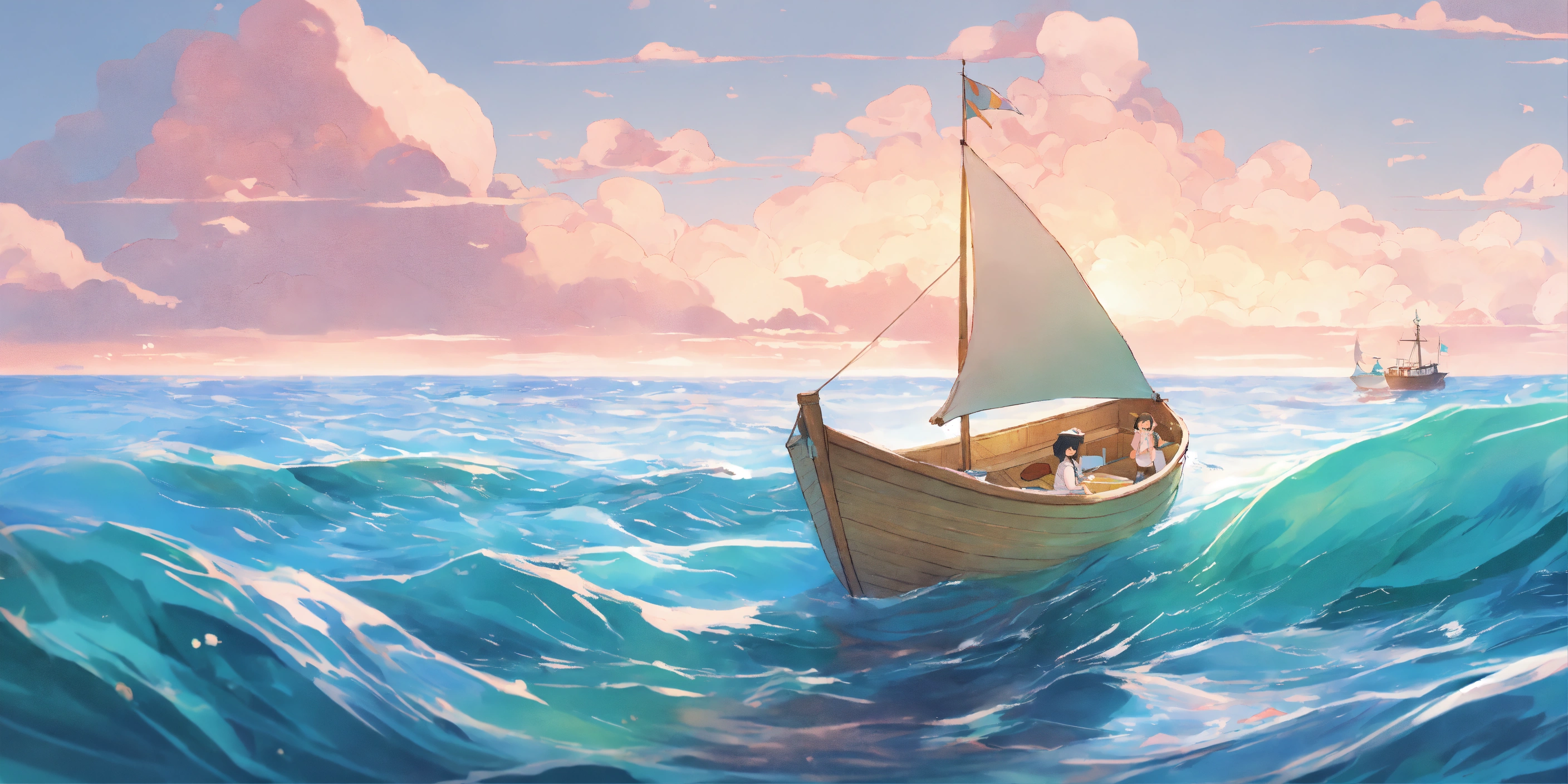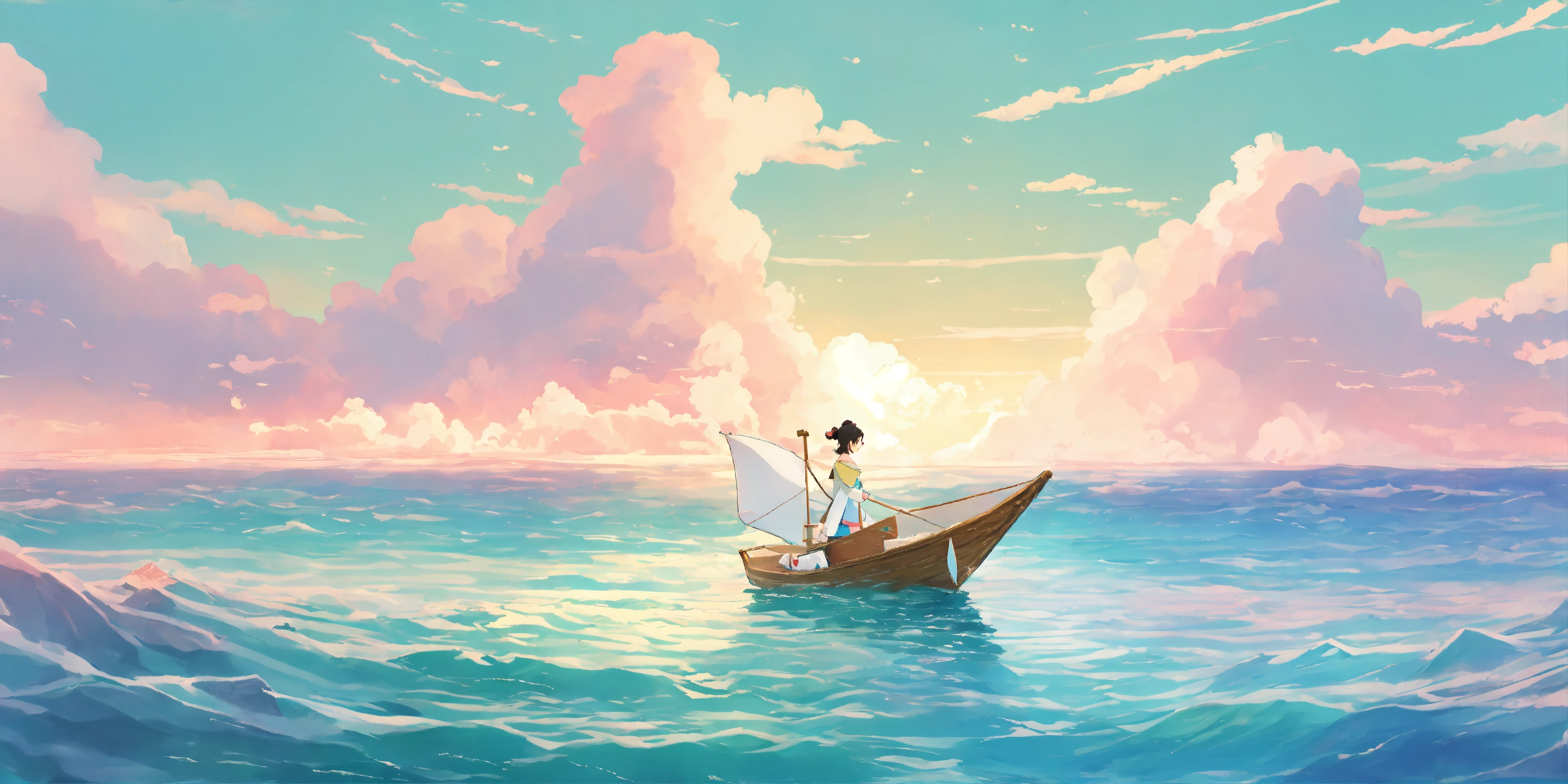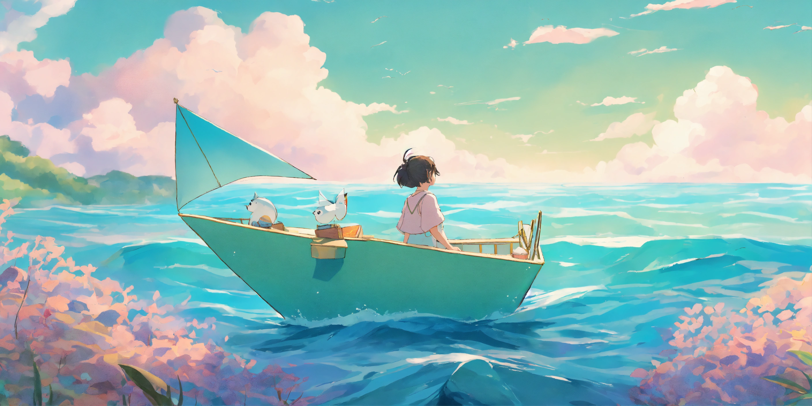 A sea with a paper boat, a pastel aesthetic, studio ghibli, white background, character design, fantasy, 8 k resolution