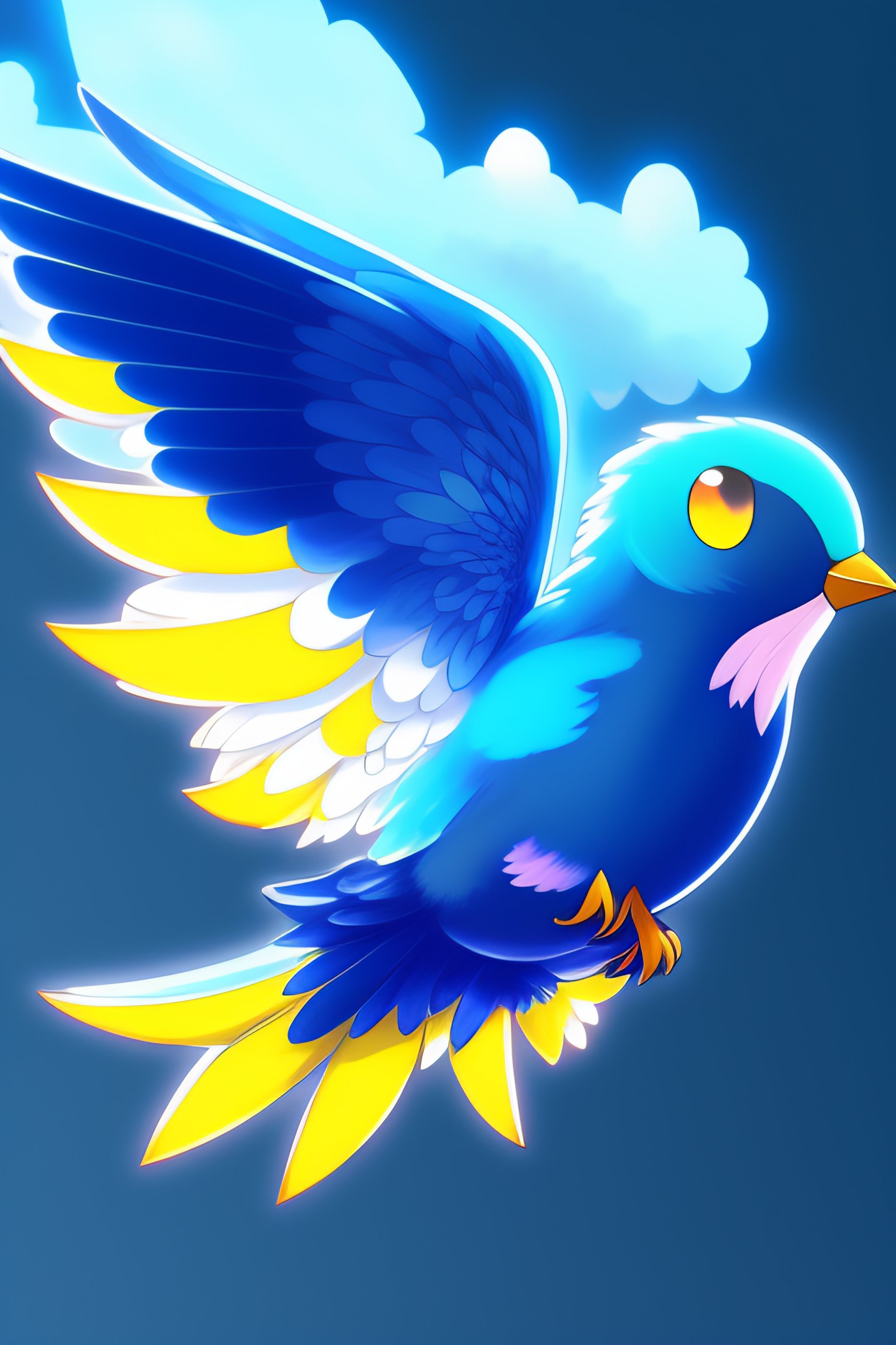 Anime illustration of a cute blue bird pokemon with four wings