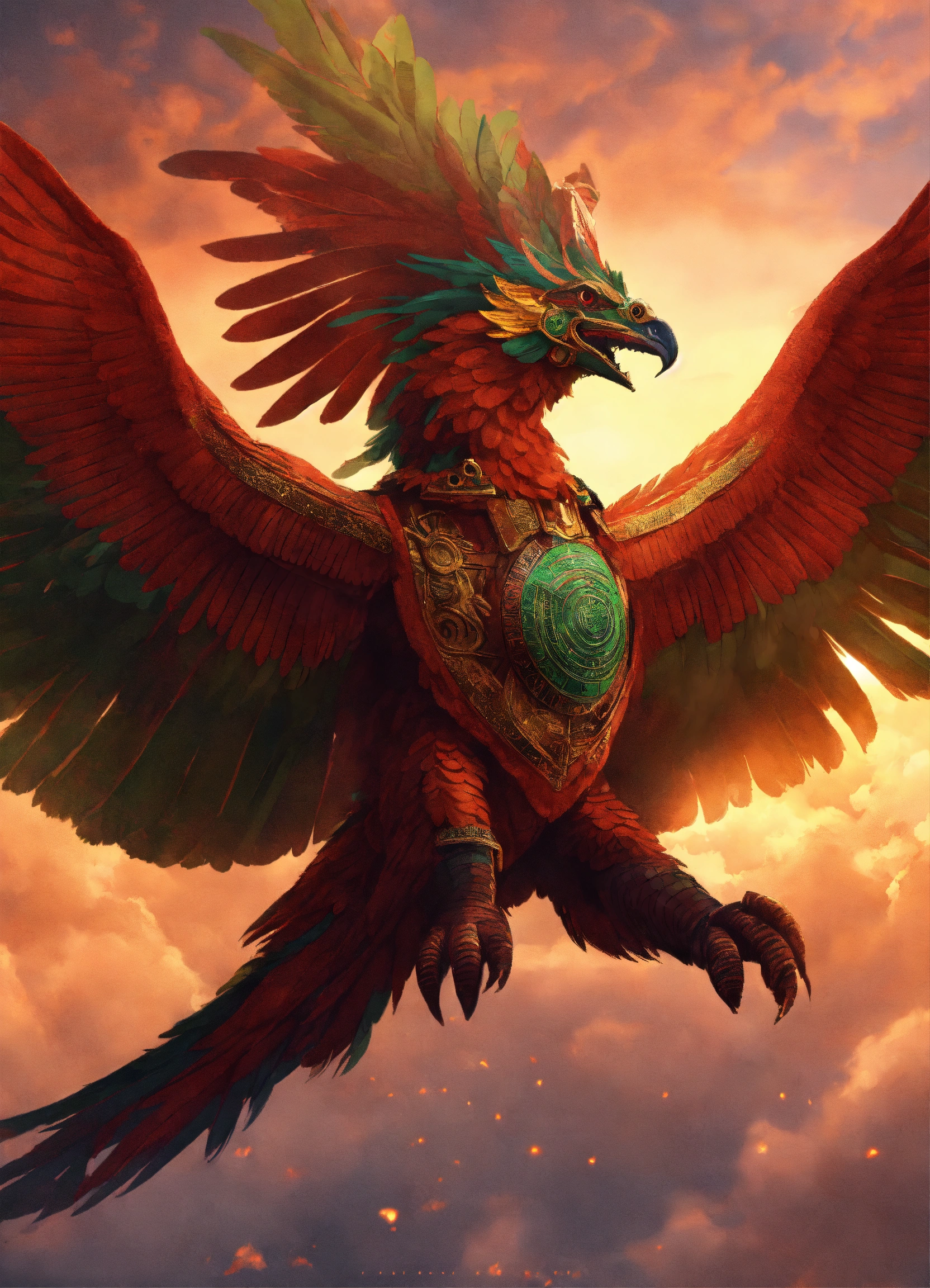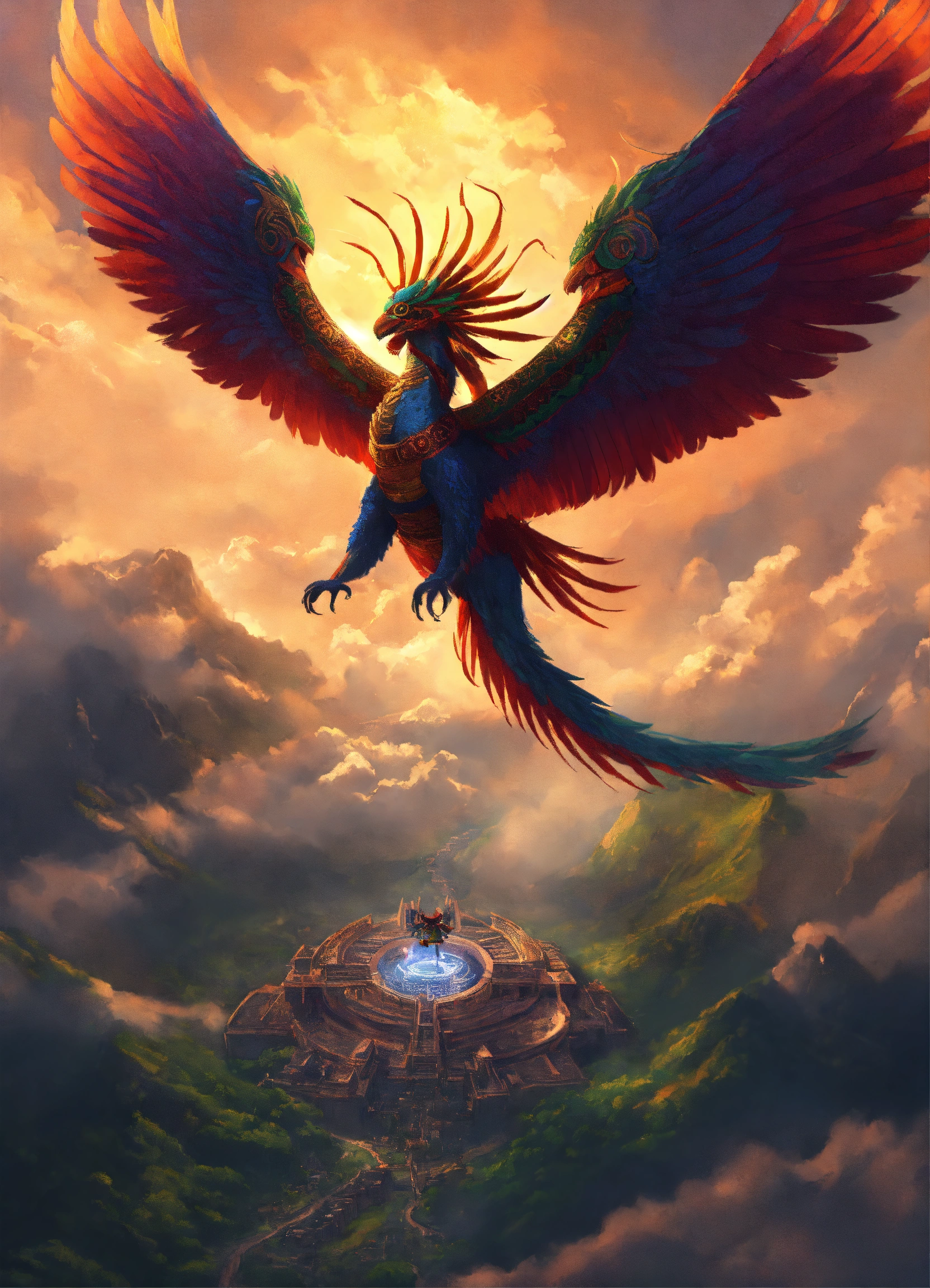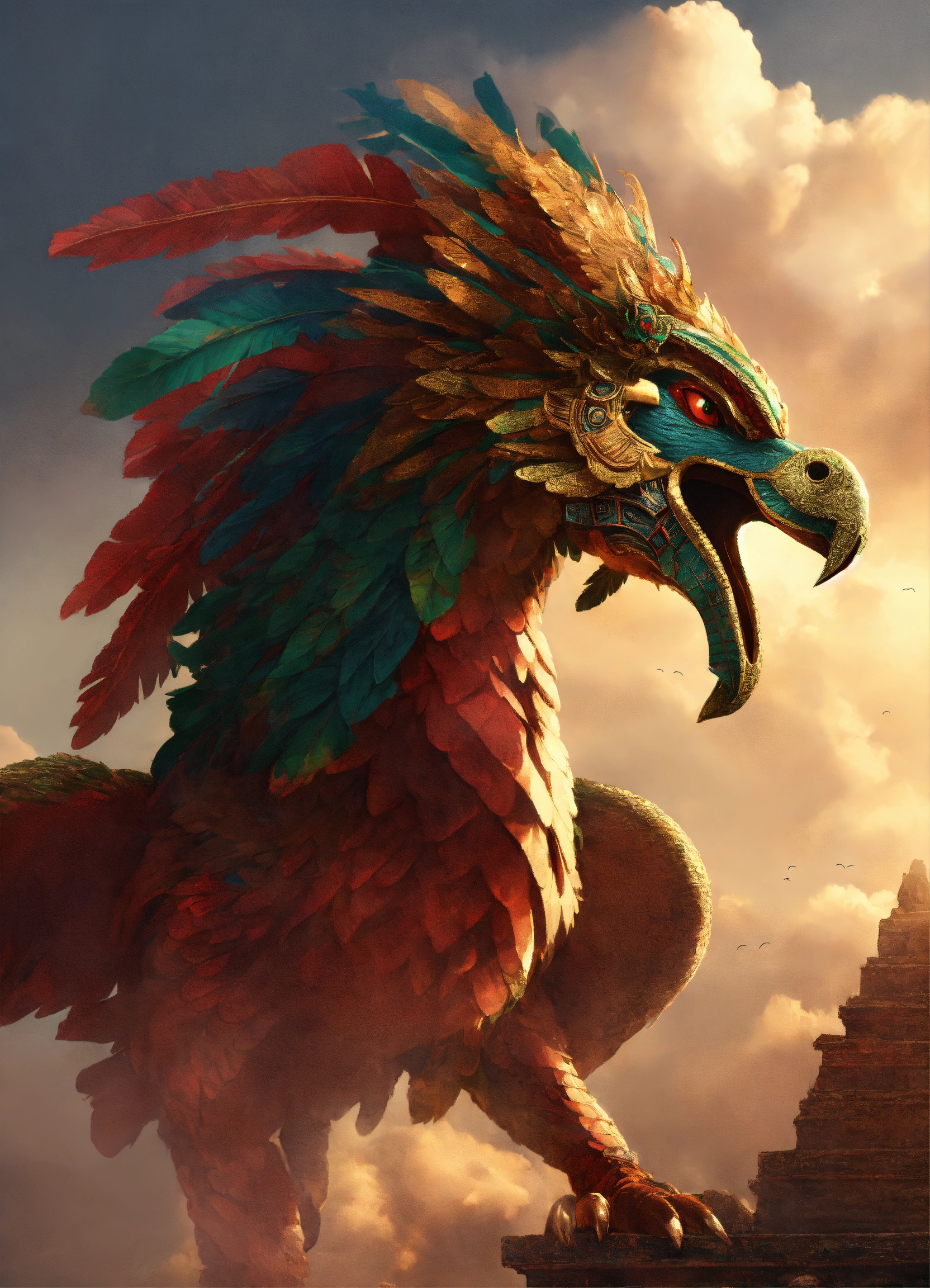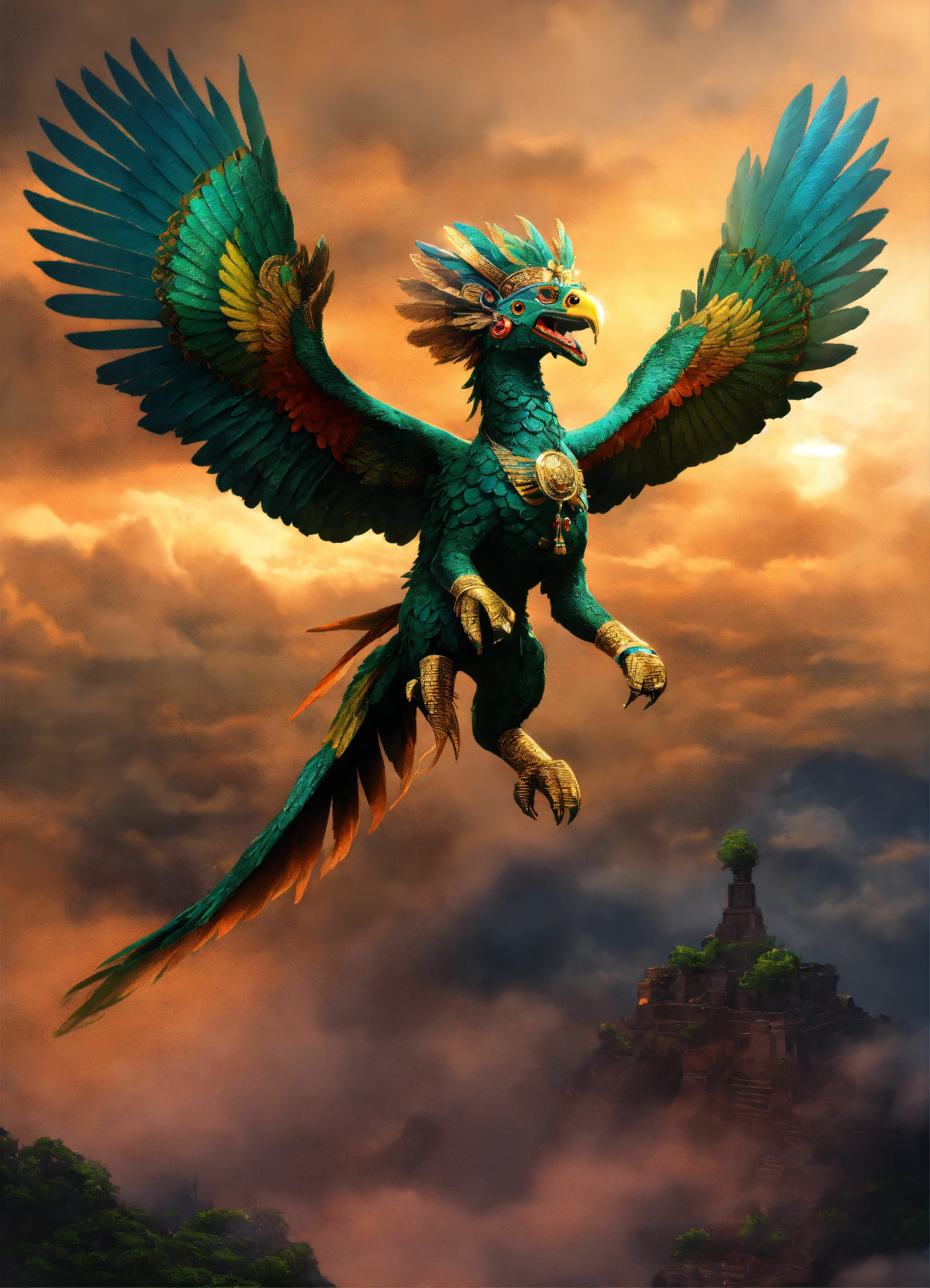 Aztec god quetzalcoatl flying in the sky
