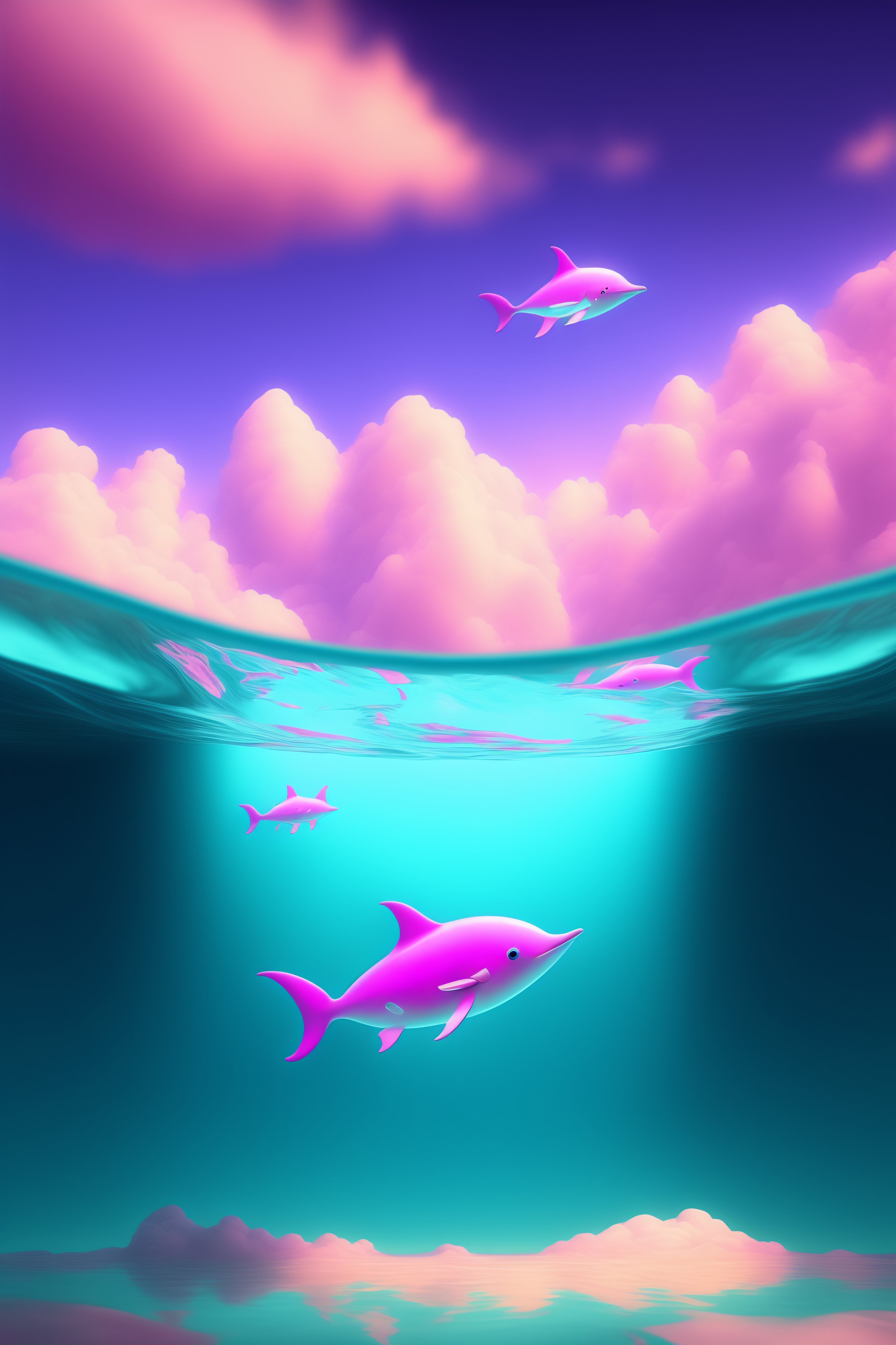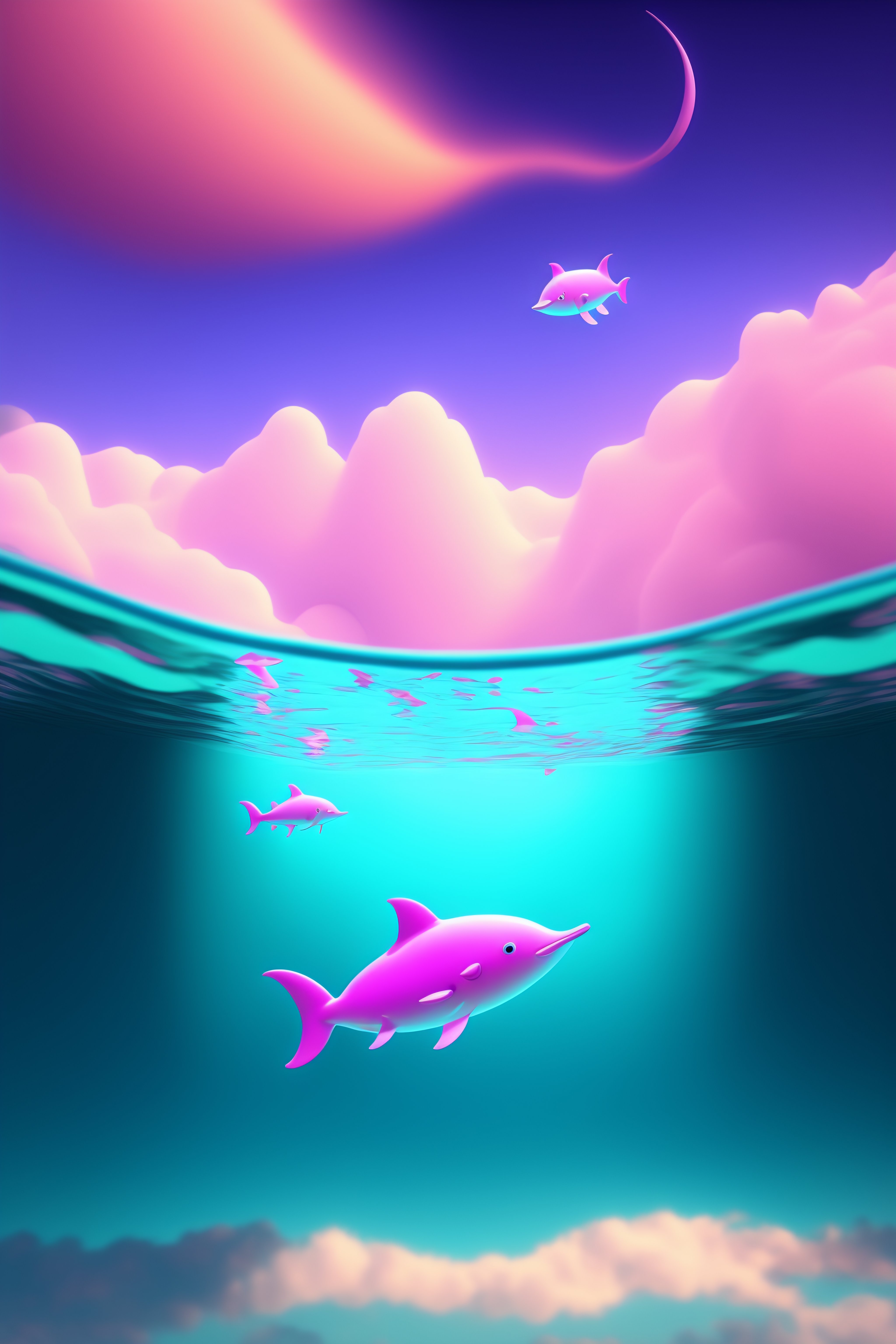 Cute and adorable pink dolphin cartoon at amazon river, fantasy, dreamlike, surrealism, super cute by pixar