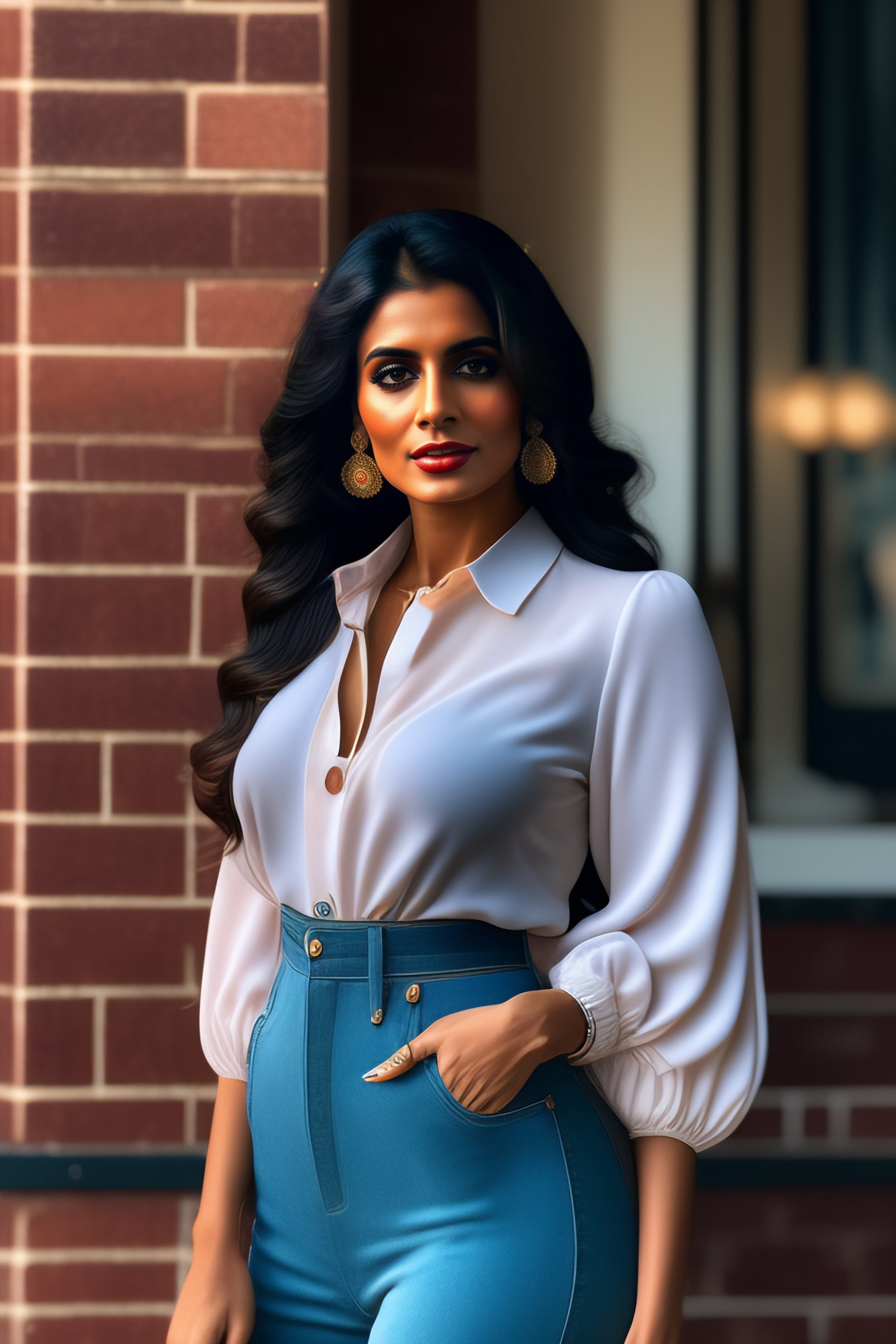 Anglo indian girl in her 30s wearing jeans and exquisite blouse looking like taylor swift