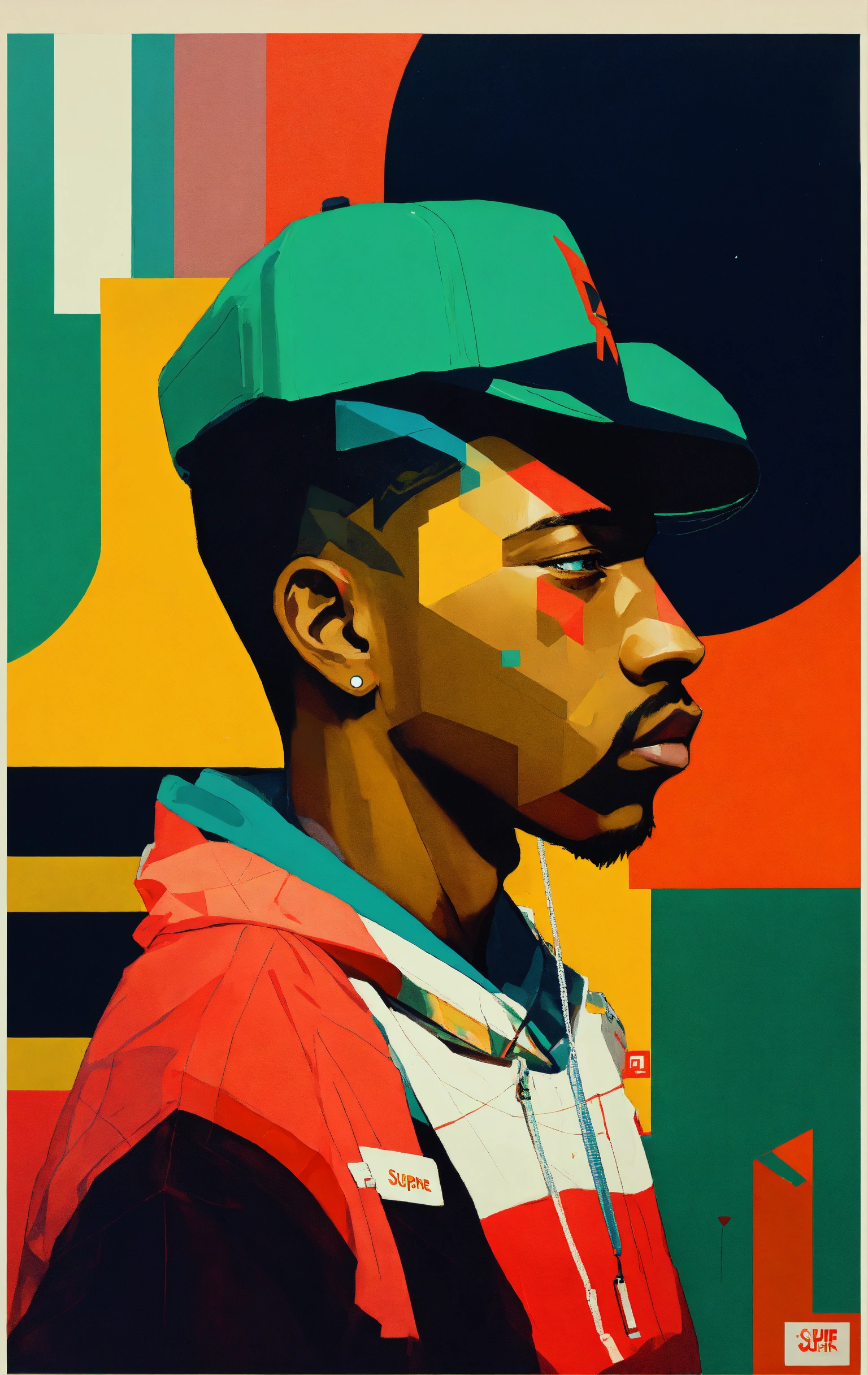 1998 european man hip hop man by sachin teng x supreme, attractive, stylish, designer, coral, asymmetrical, geometric shapes, graffiti, street art