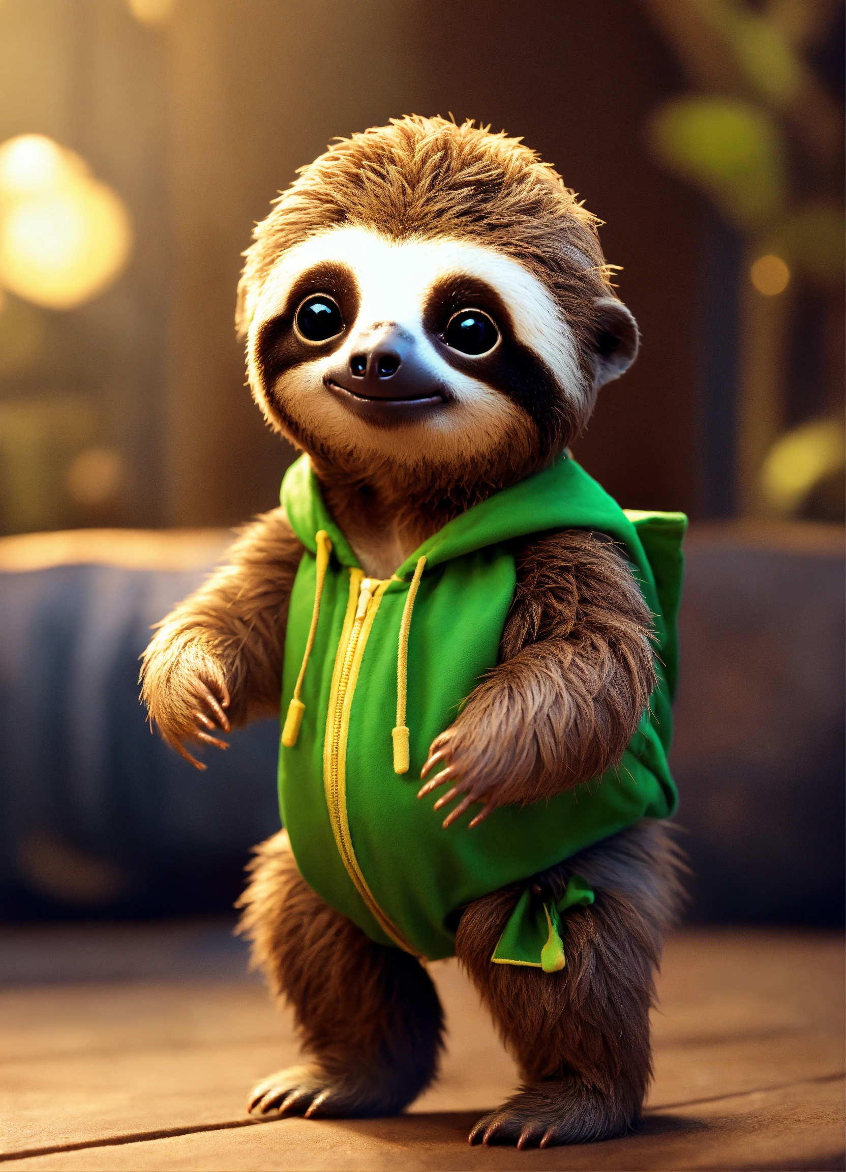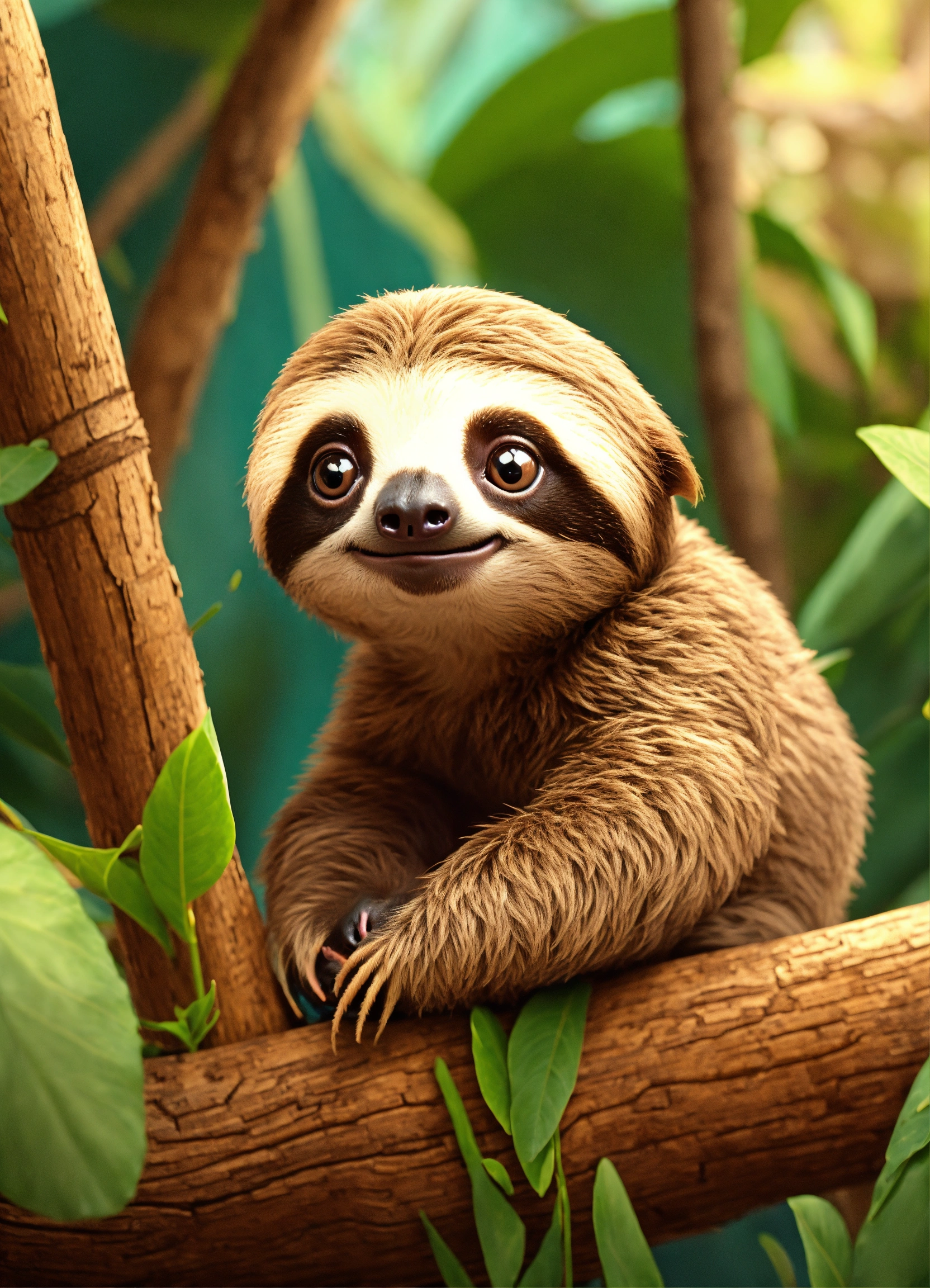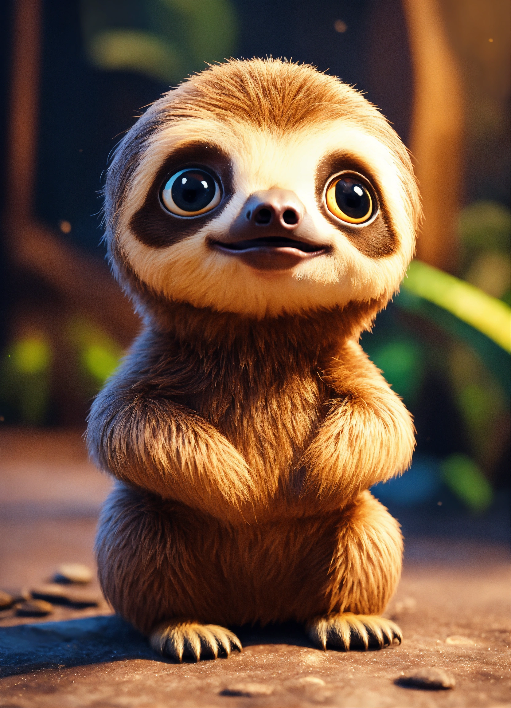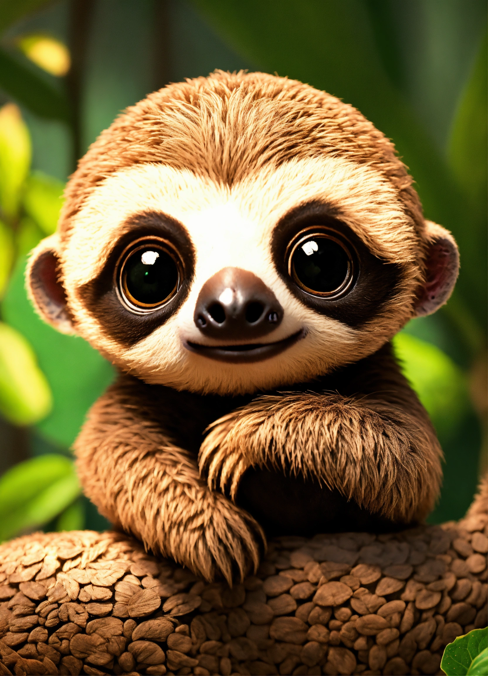 A cute baby sloth with big eyes