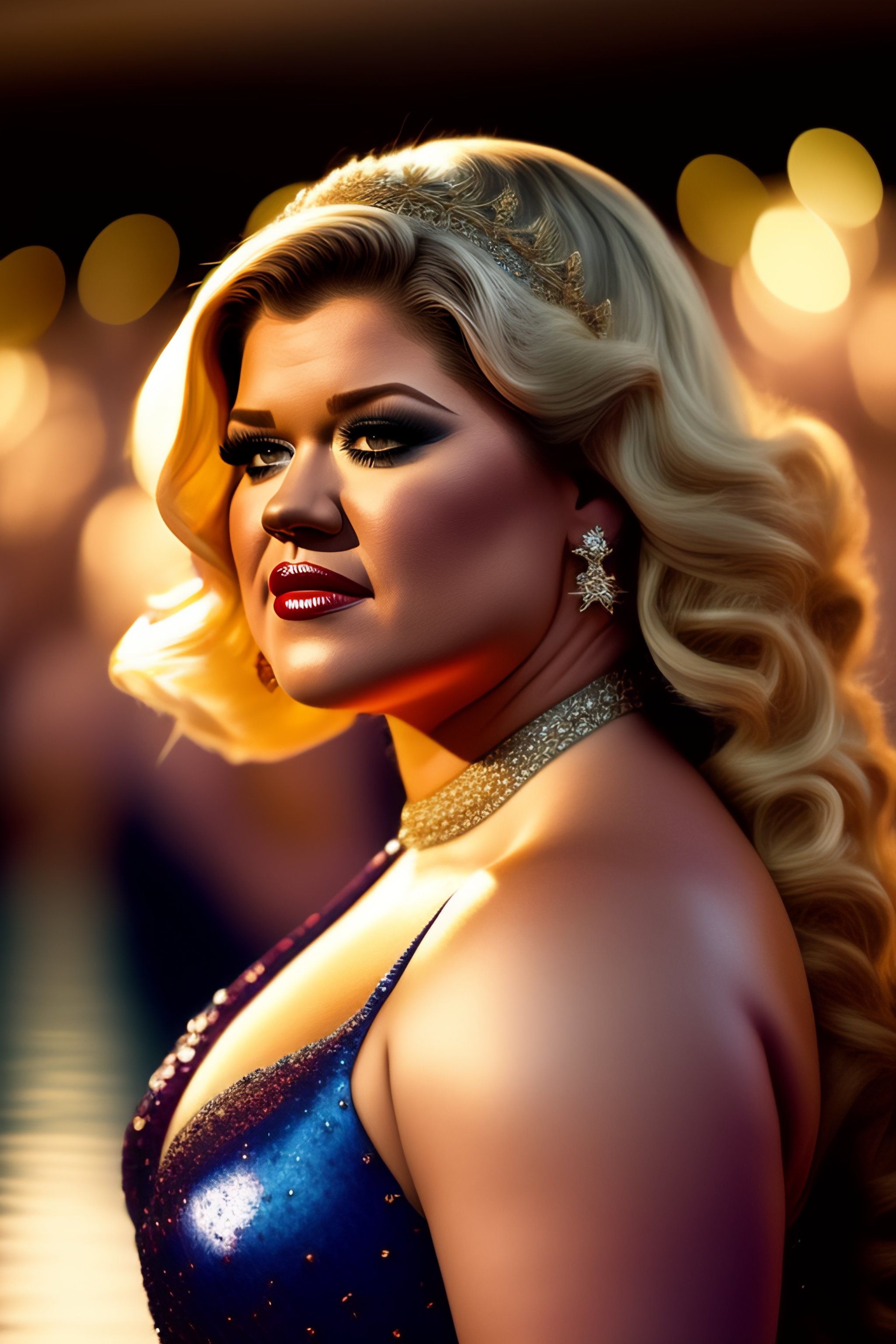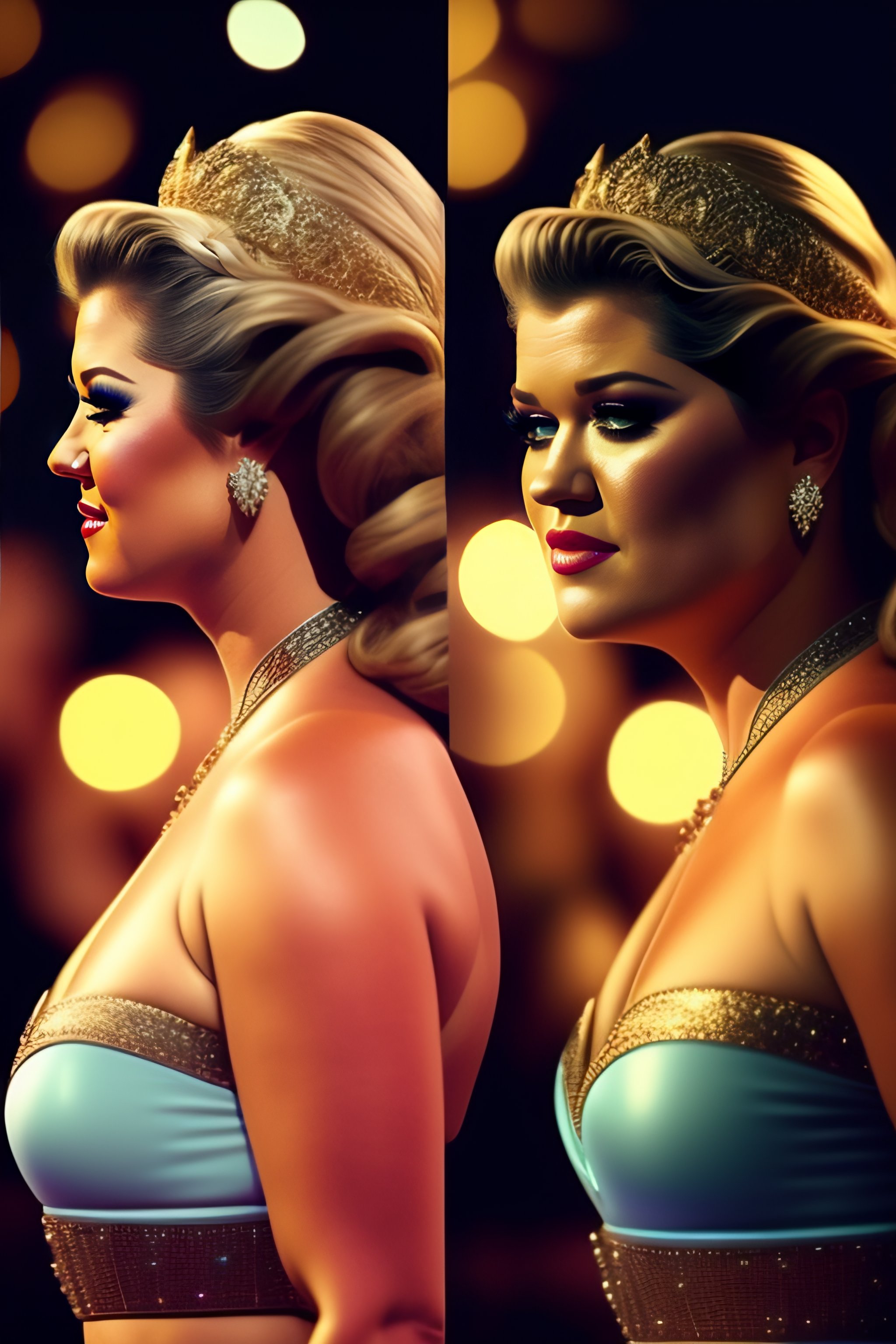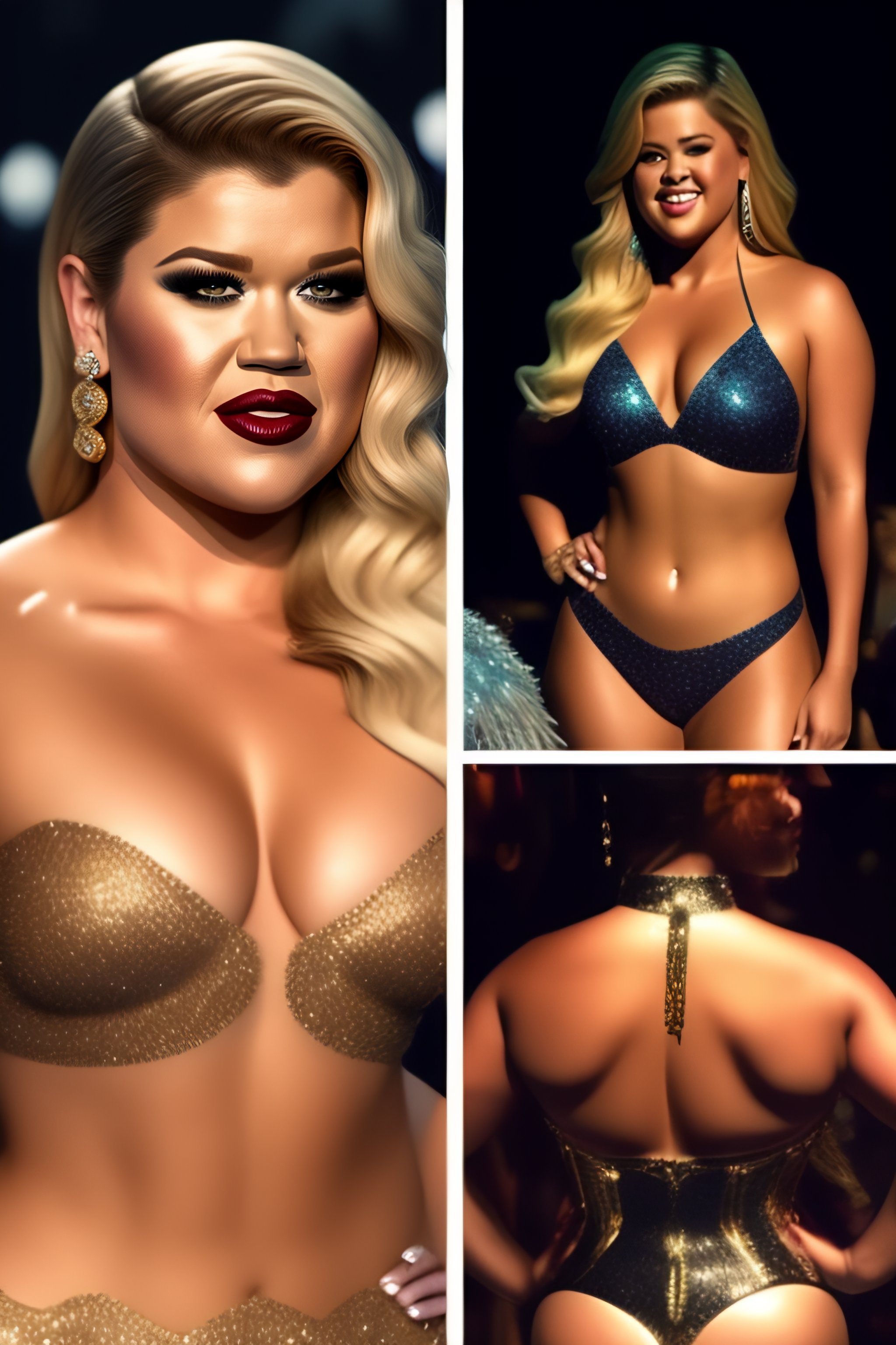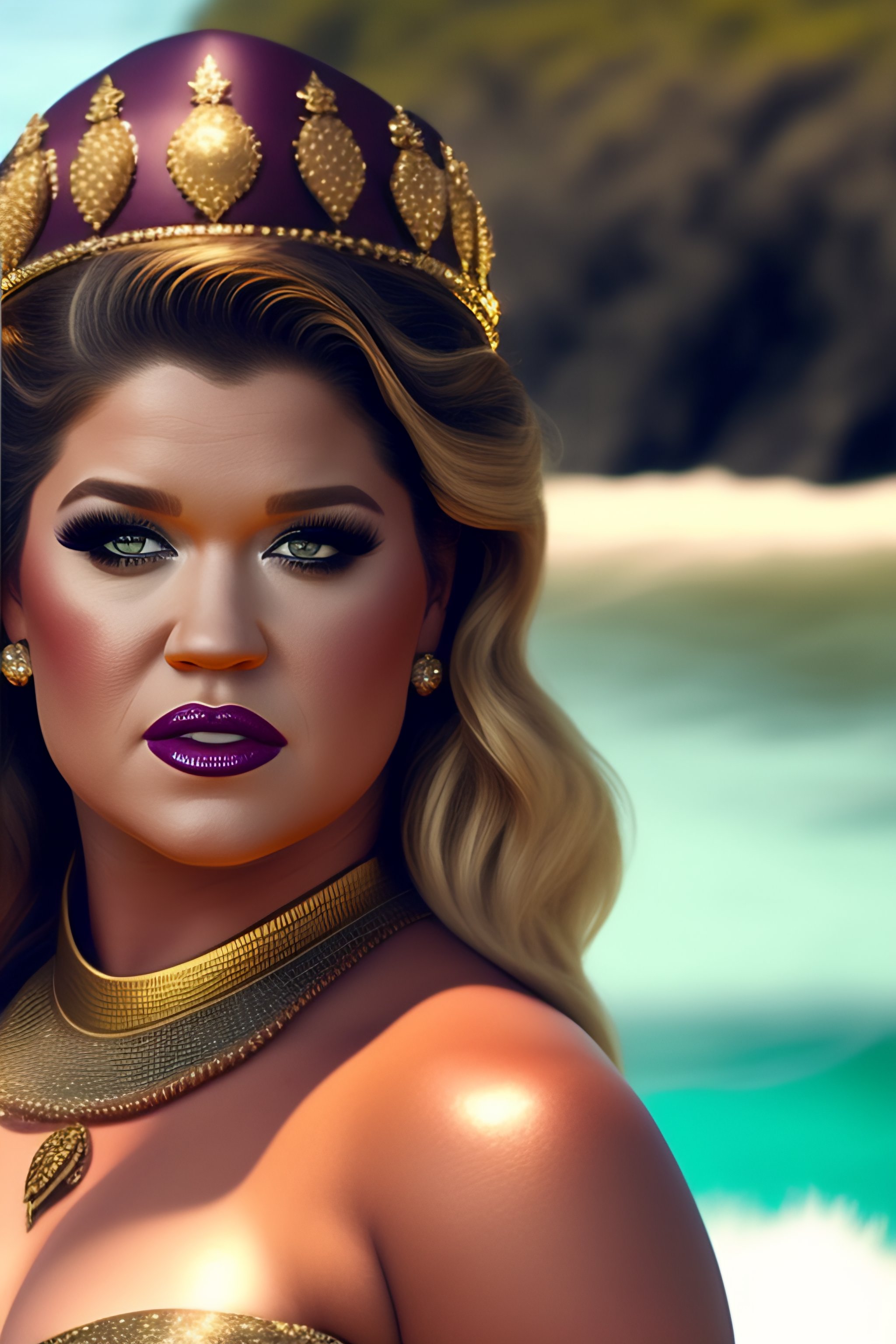 Kelly clarkson modeling as queen in a bikini from game of thrones, photograph from behind looking over shoulder