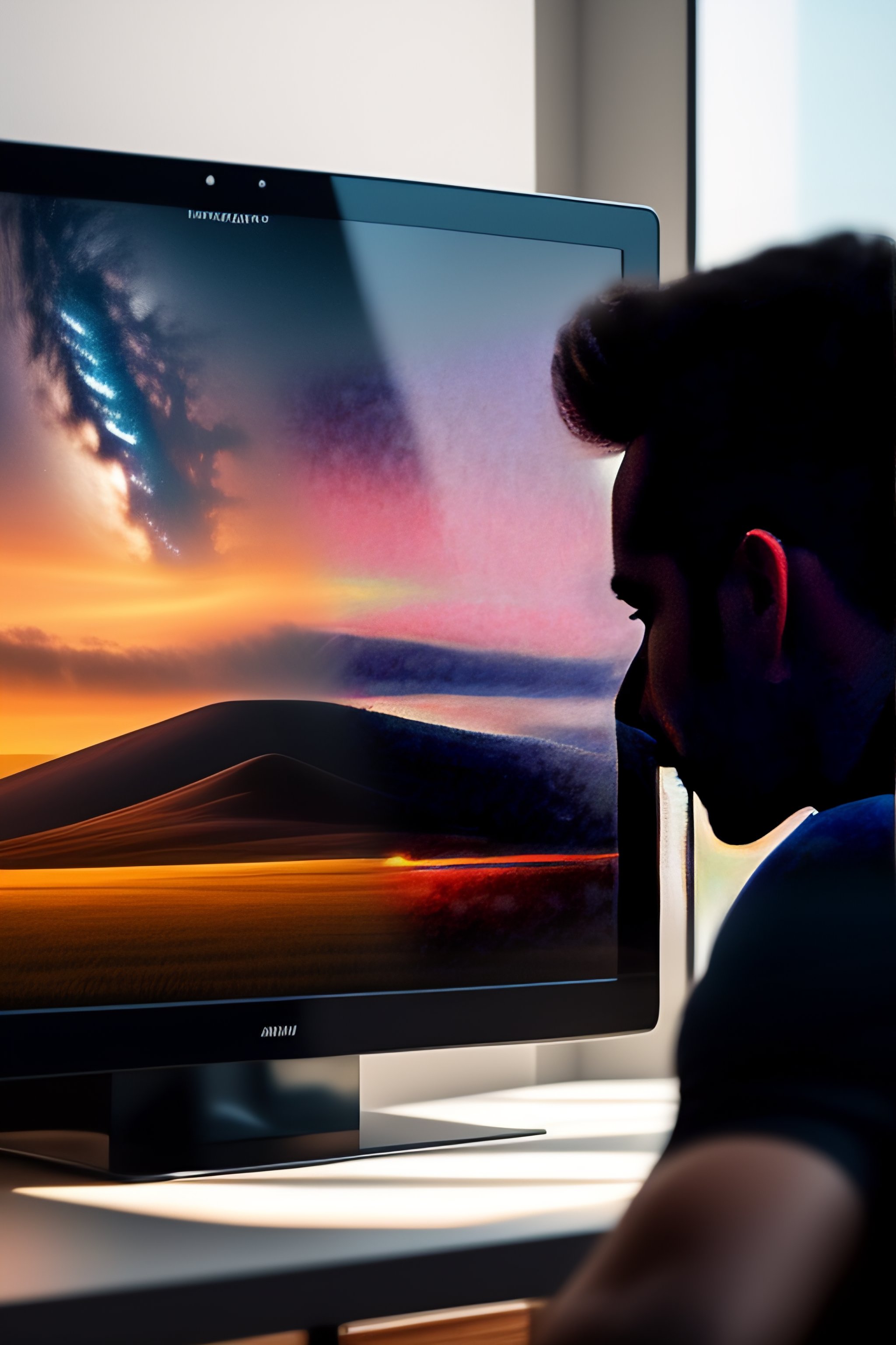 Una imagen de una persona sentada frente a una computadora, con una expresión concentrada y una pantalla llena de texto.