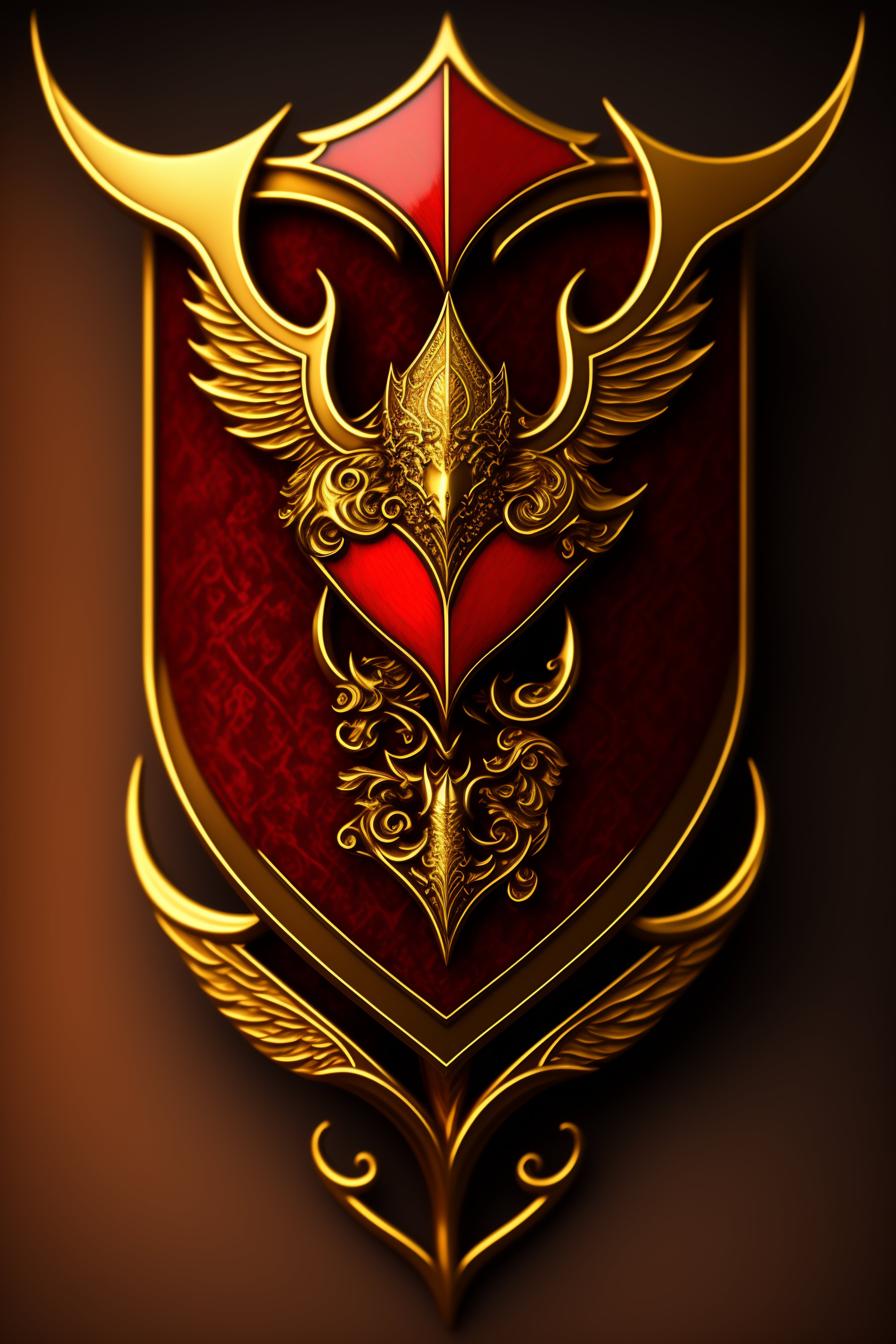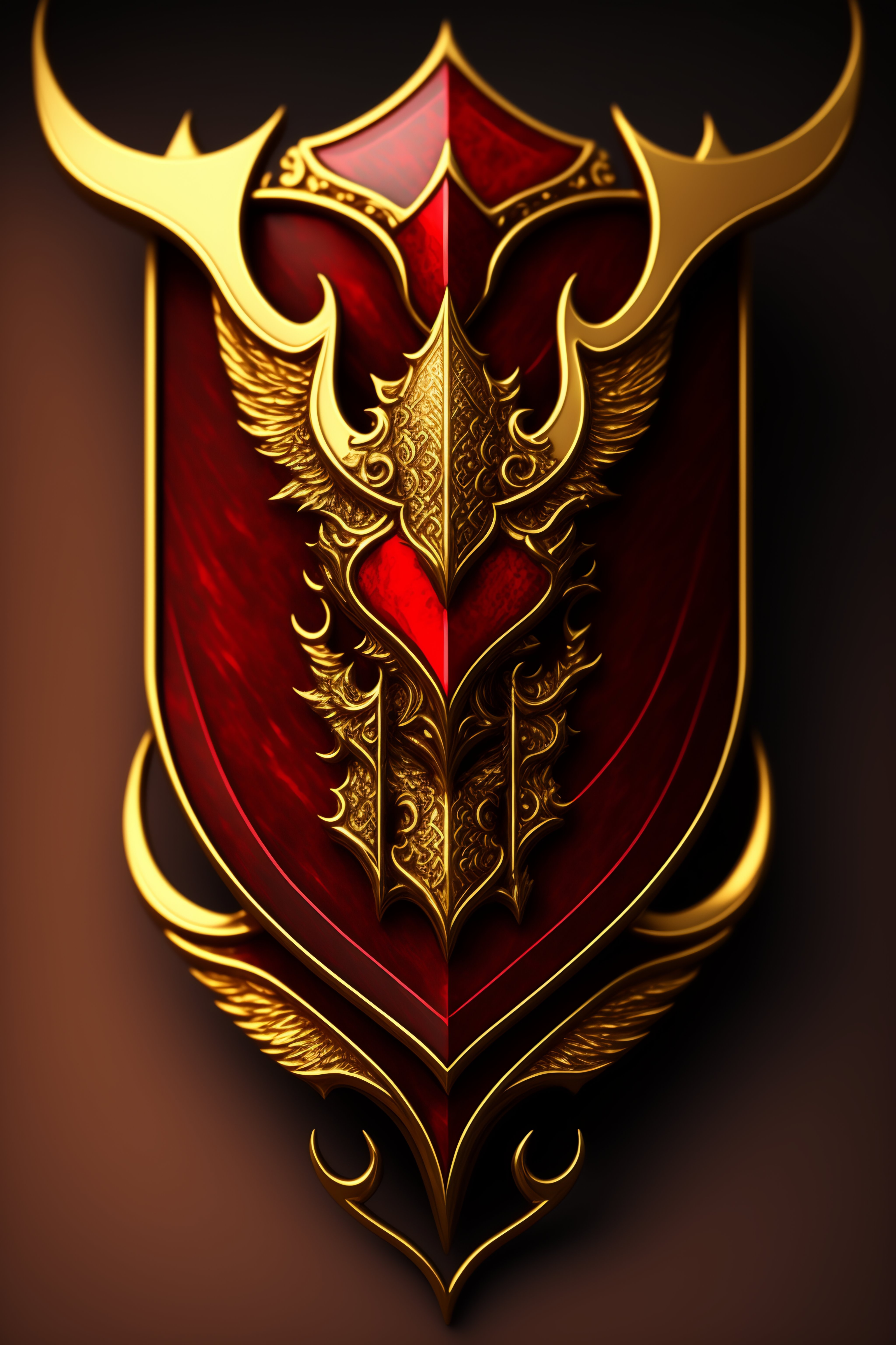 A gothic golden shield logo high fantasy in gold and red