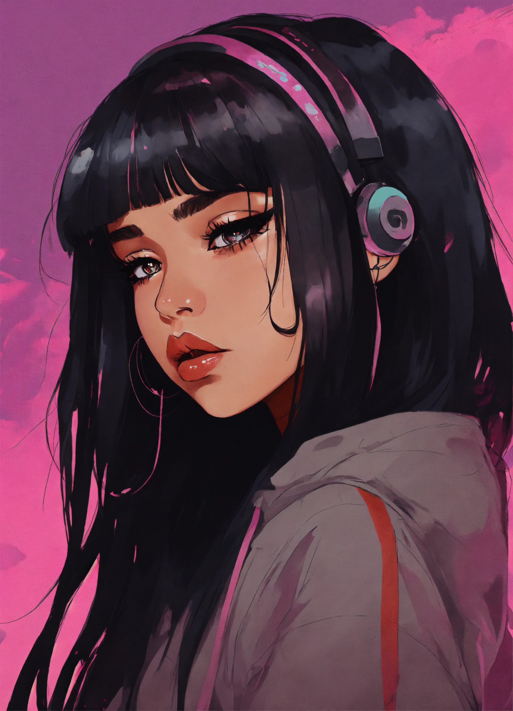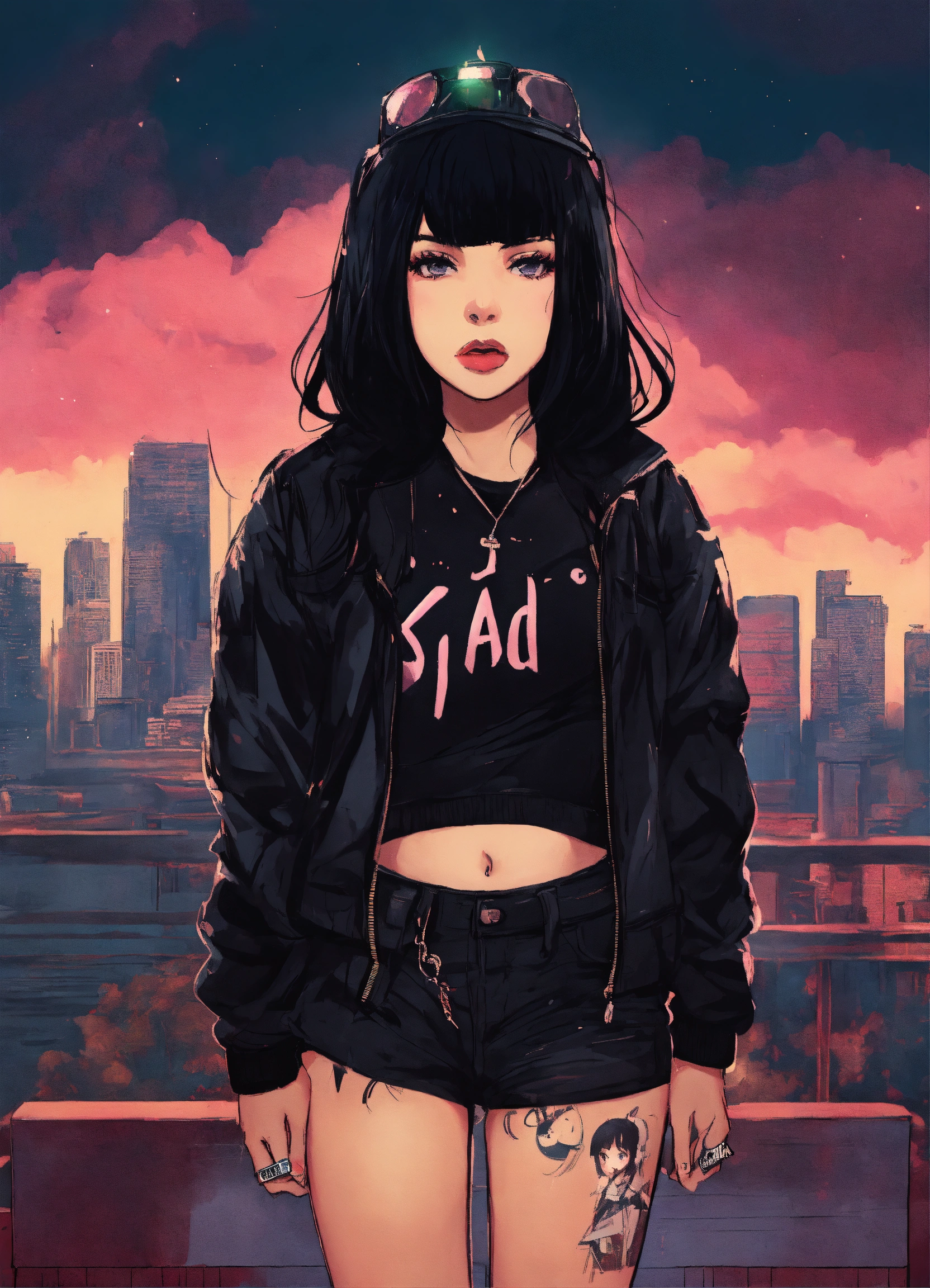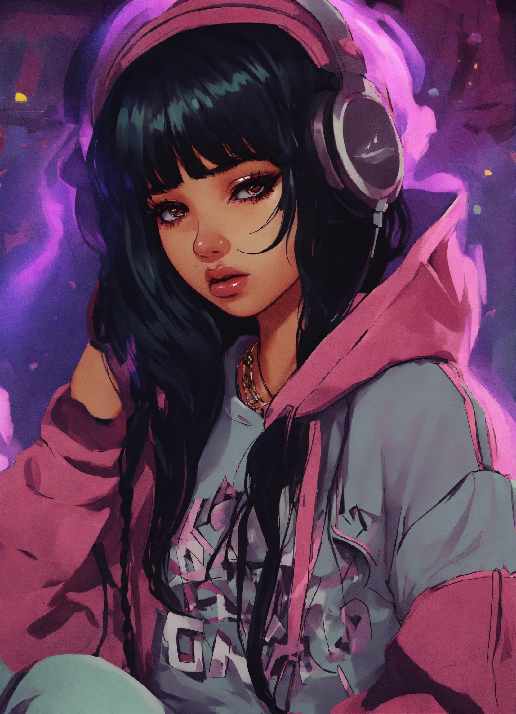A logo for a female grunge hip hop artist named sad girl lex black hair larger big anime girl heavy set very big girl