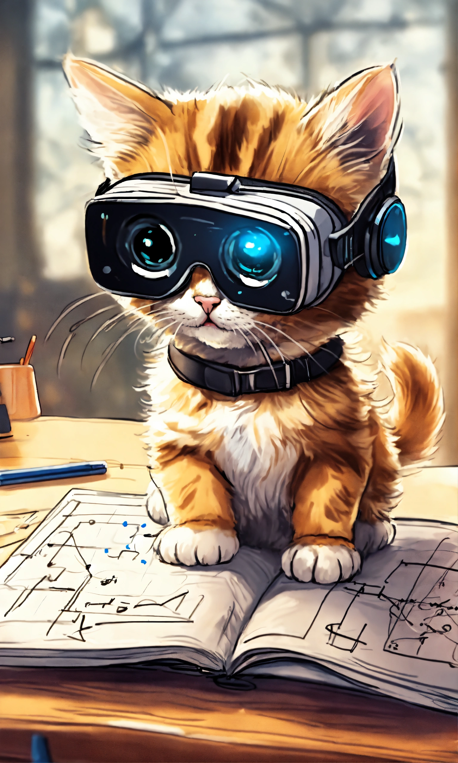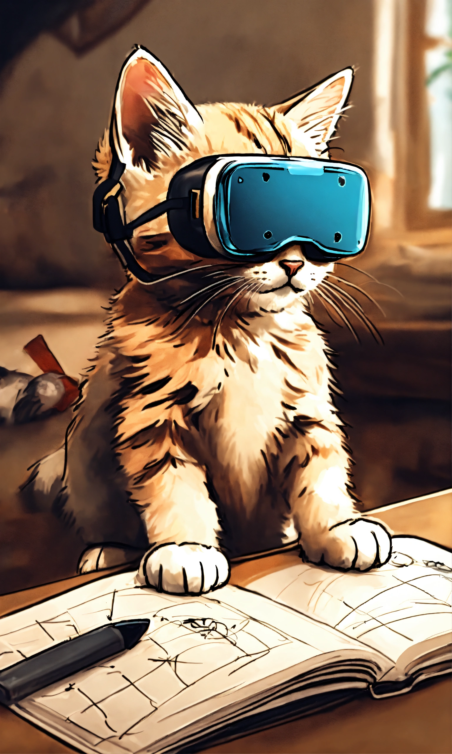 An adorable kitten using a virtual reality headset
