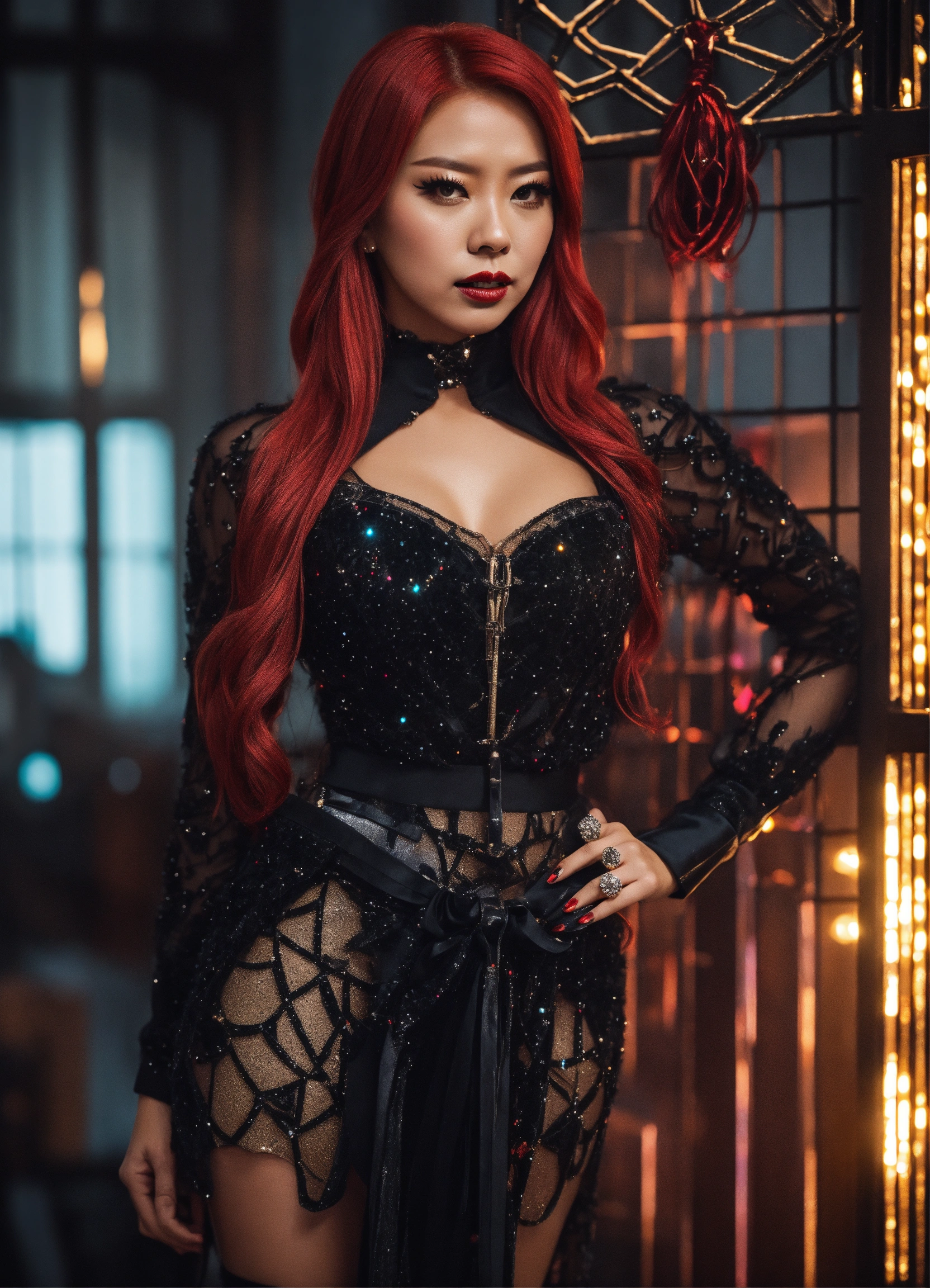 Dreamcatcher jiu glamorous sparkly black widow inspired outfit with high heels