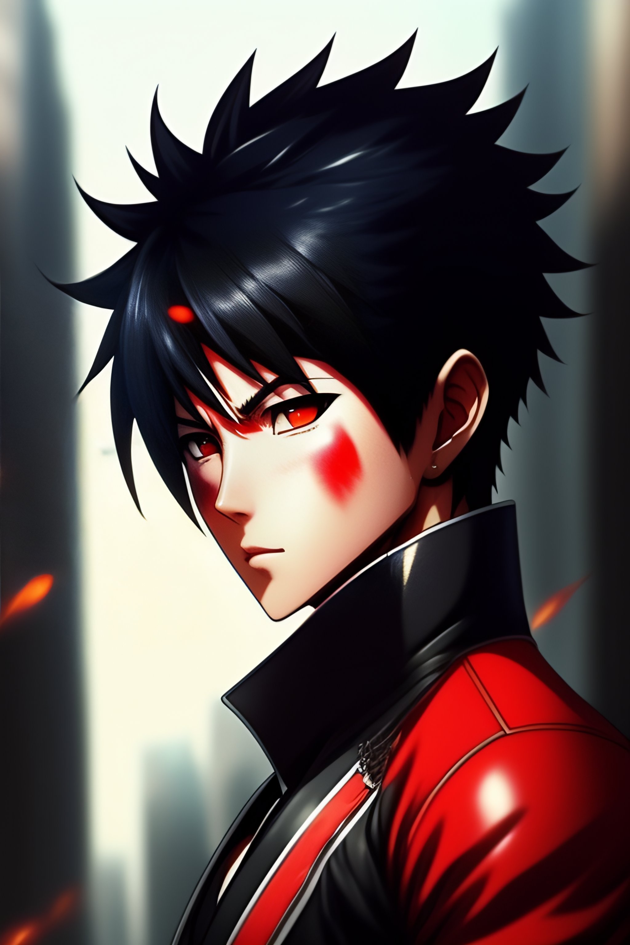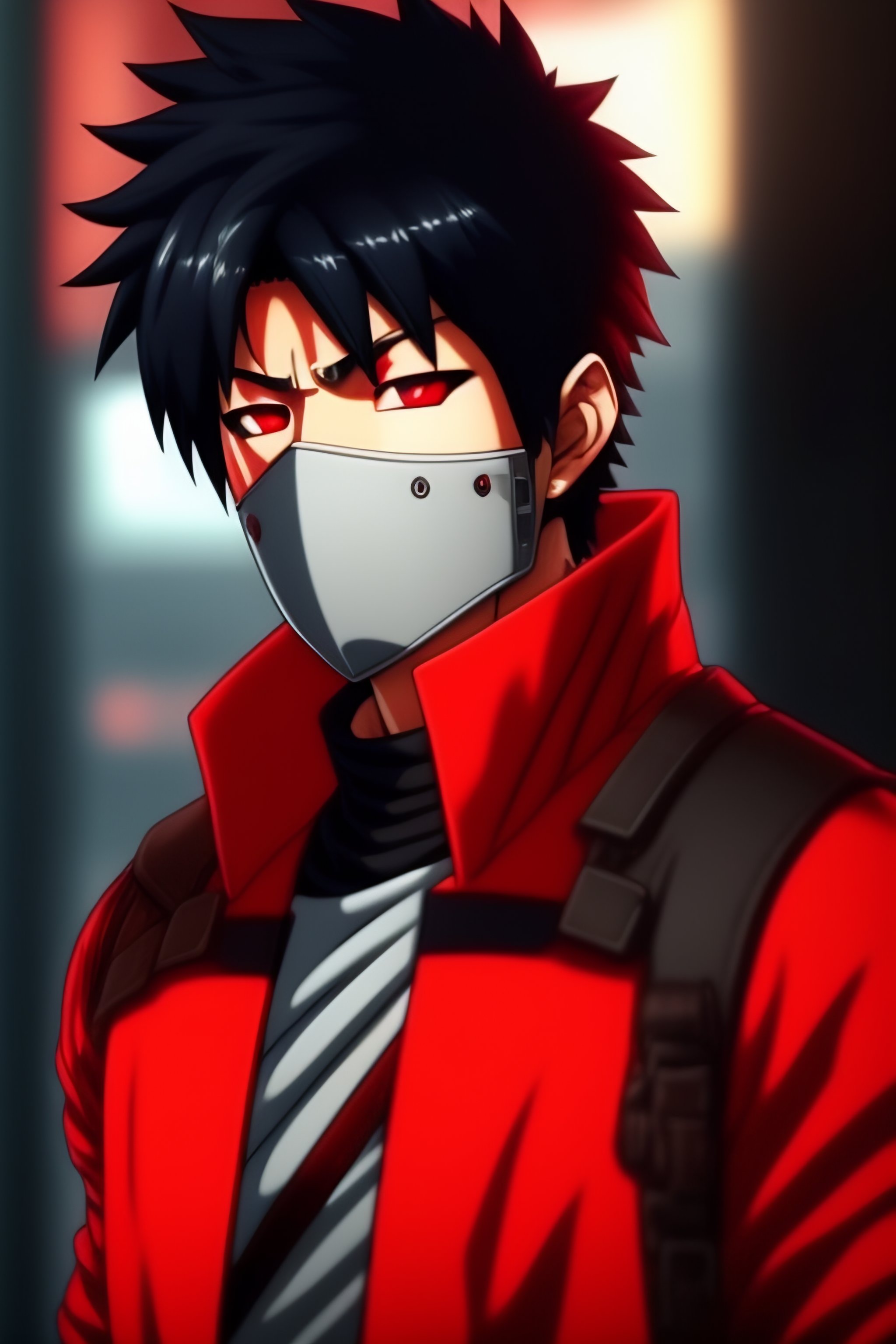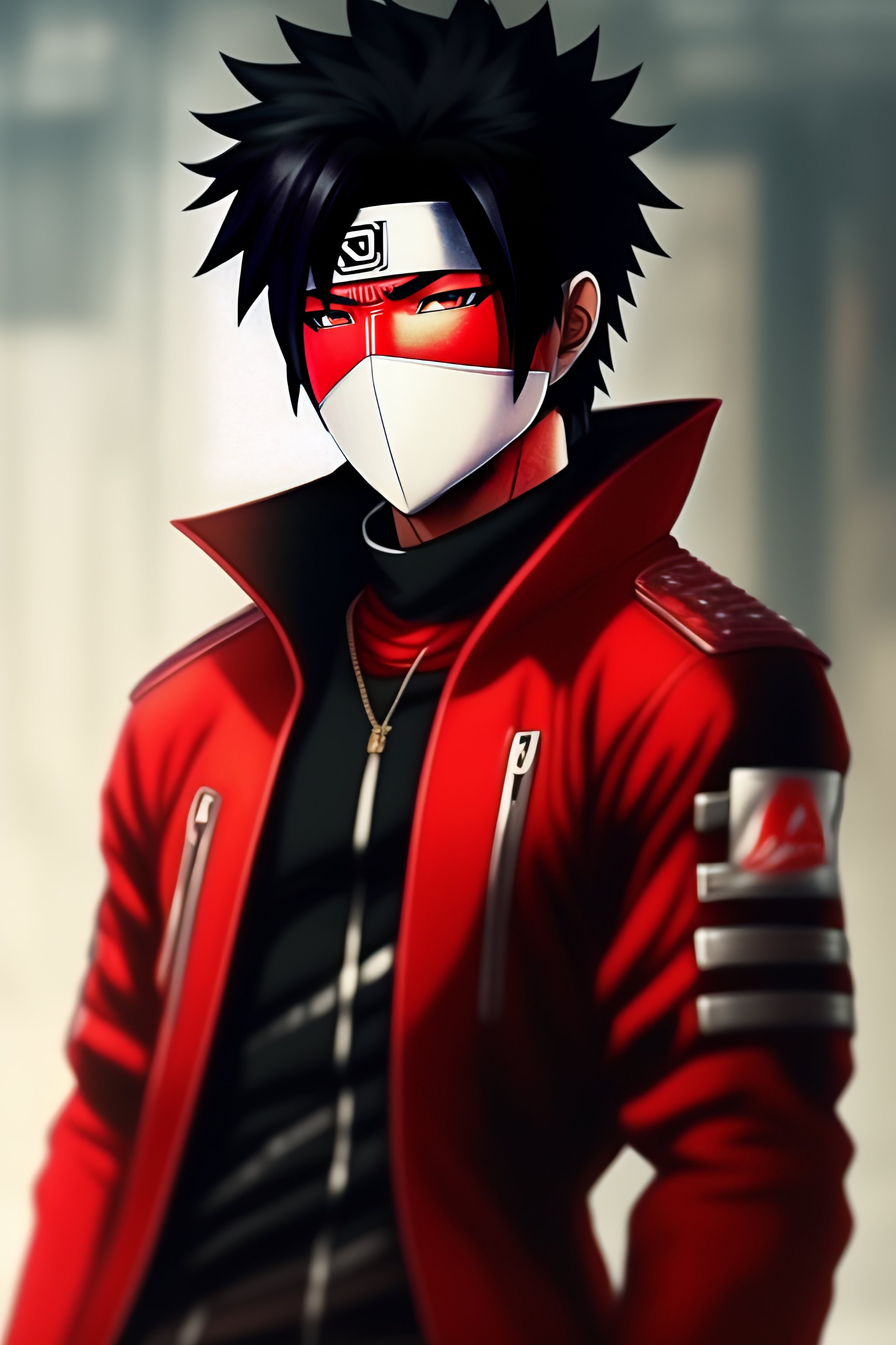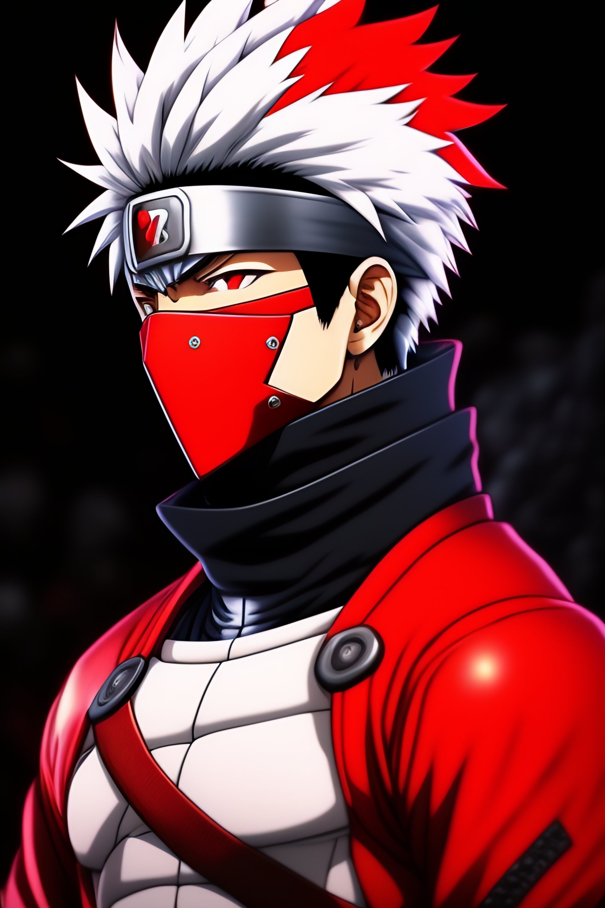 Kakashi hatake with black hair and red clothes