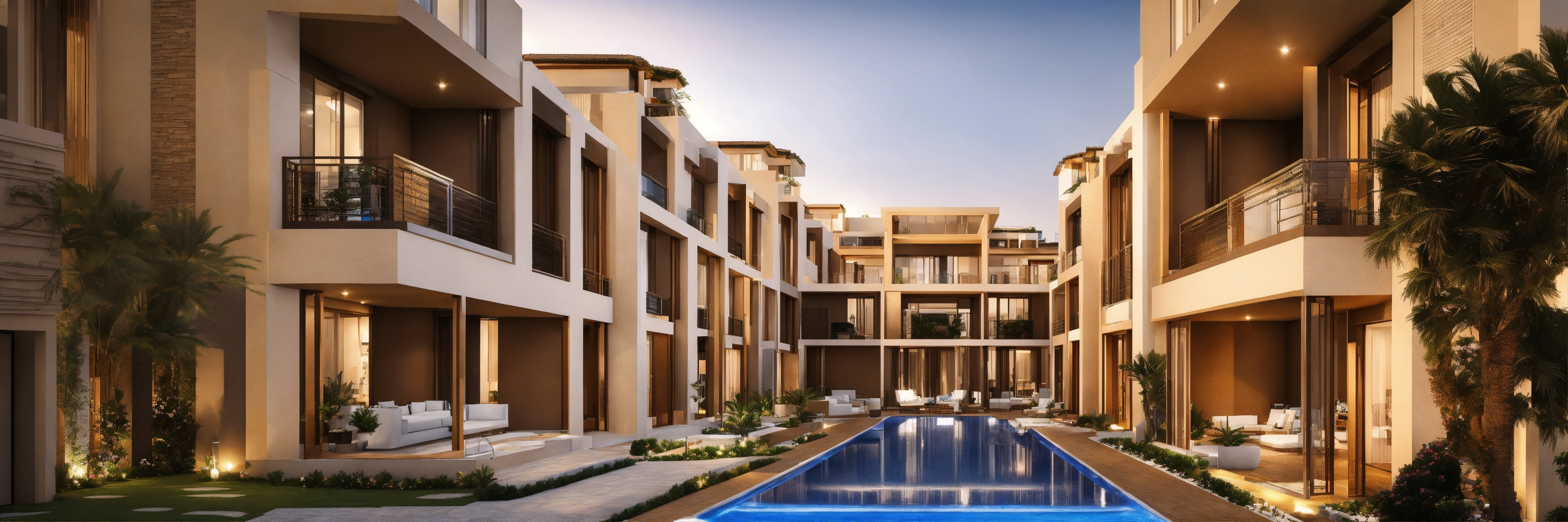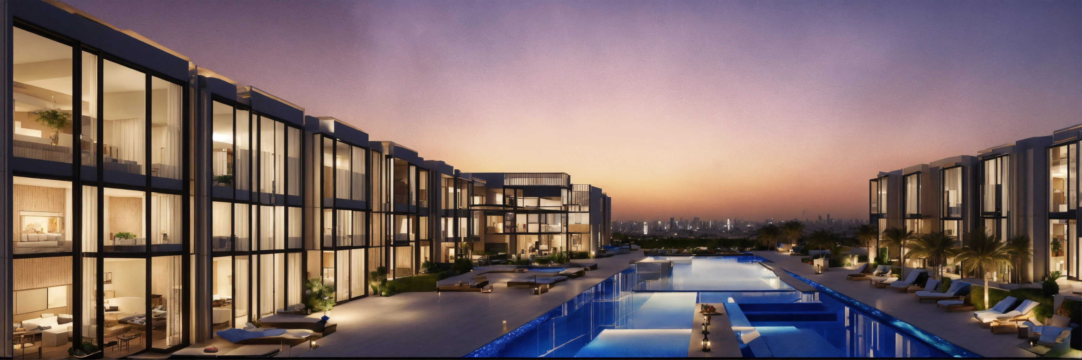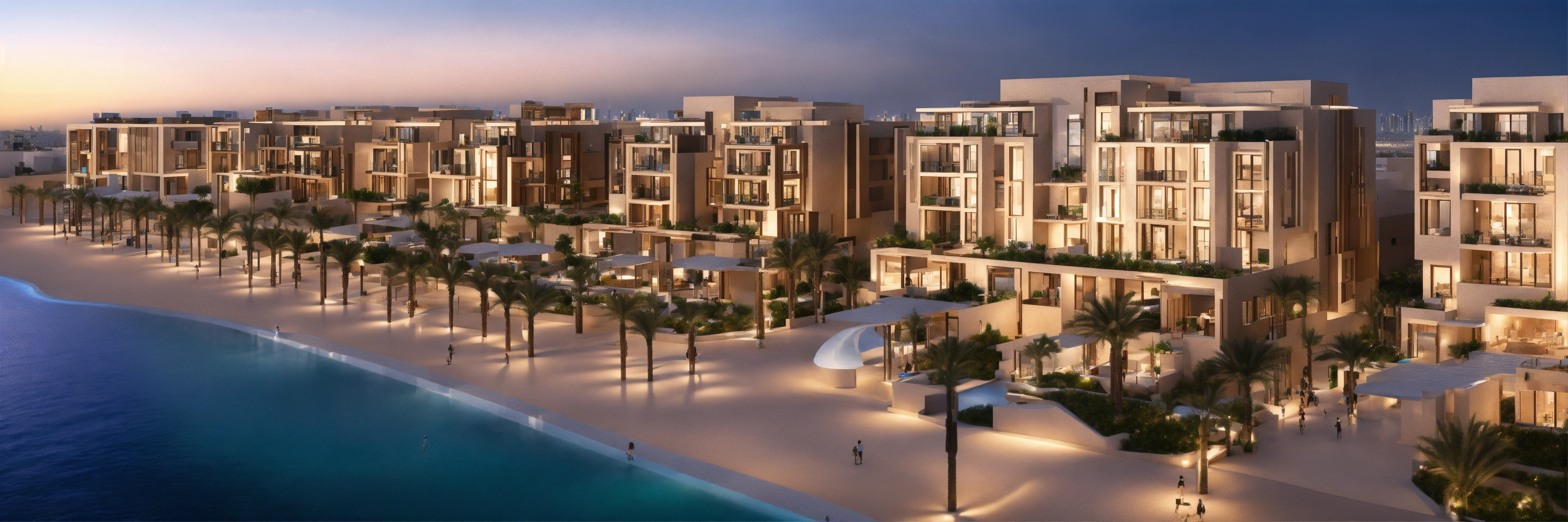 Desarrollo de viviendas unifamiliares, en dubai, con patios al centro, de tres niveles, construida hassan fayid, cerca del mar, y desde una vista aerea