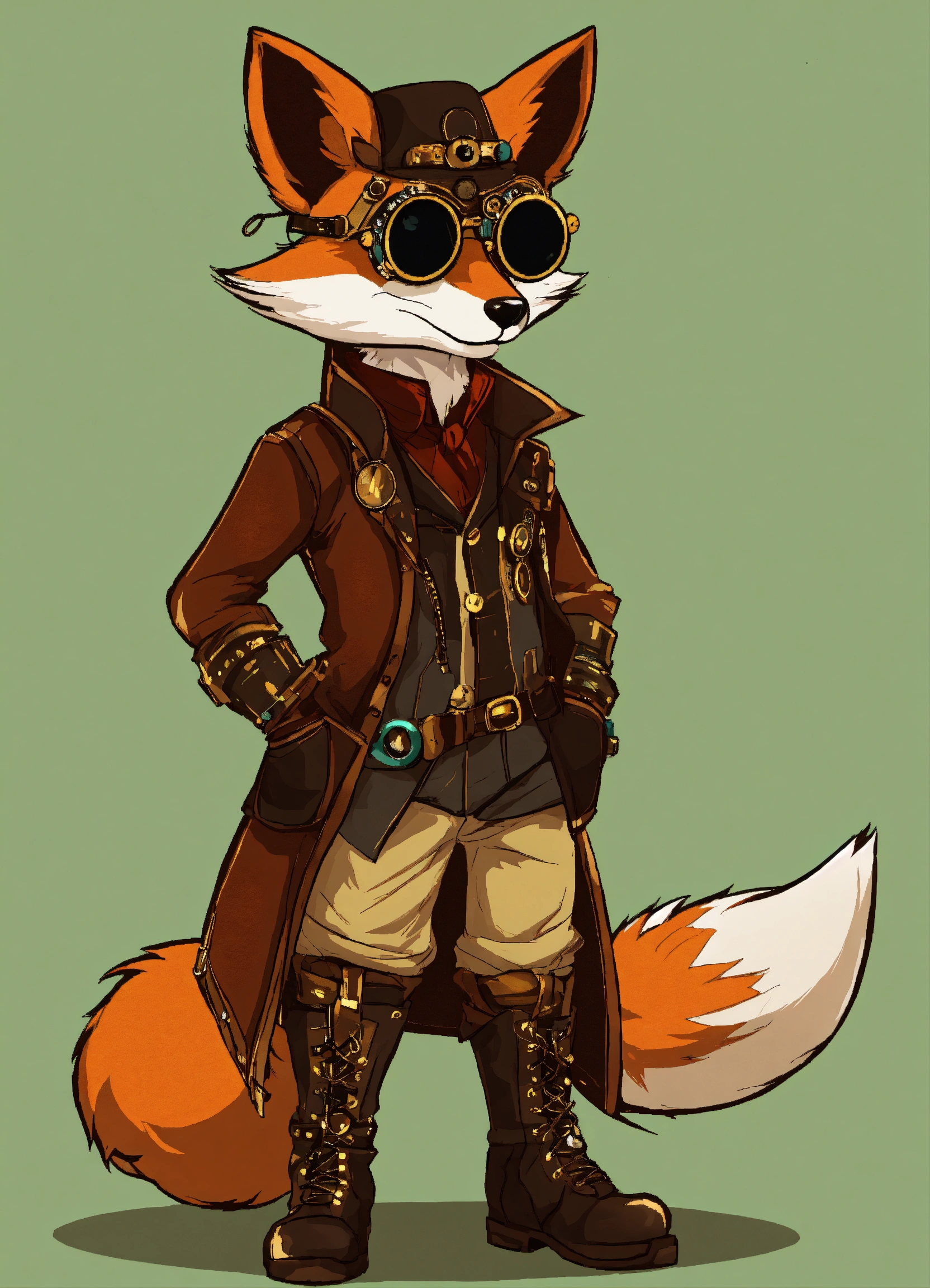 A steampunk fox fursona with boots with sunglasses vector,