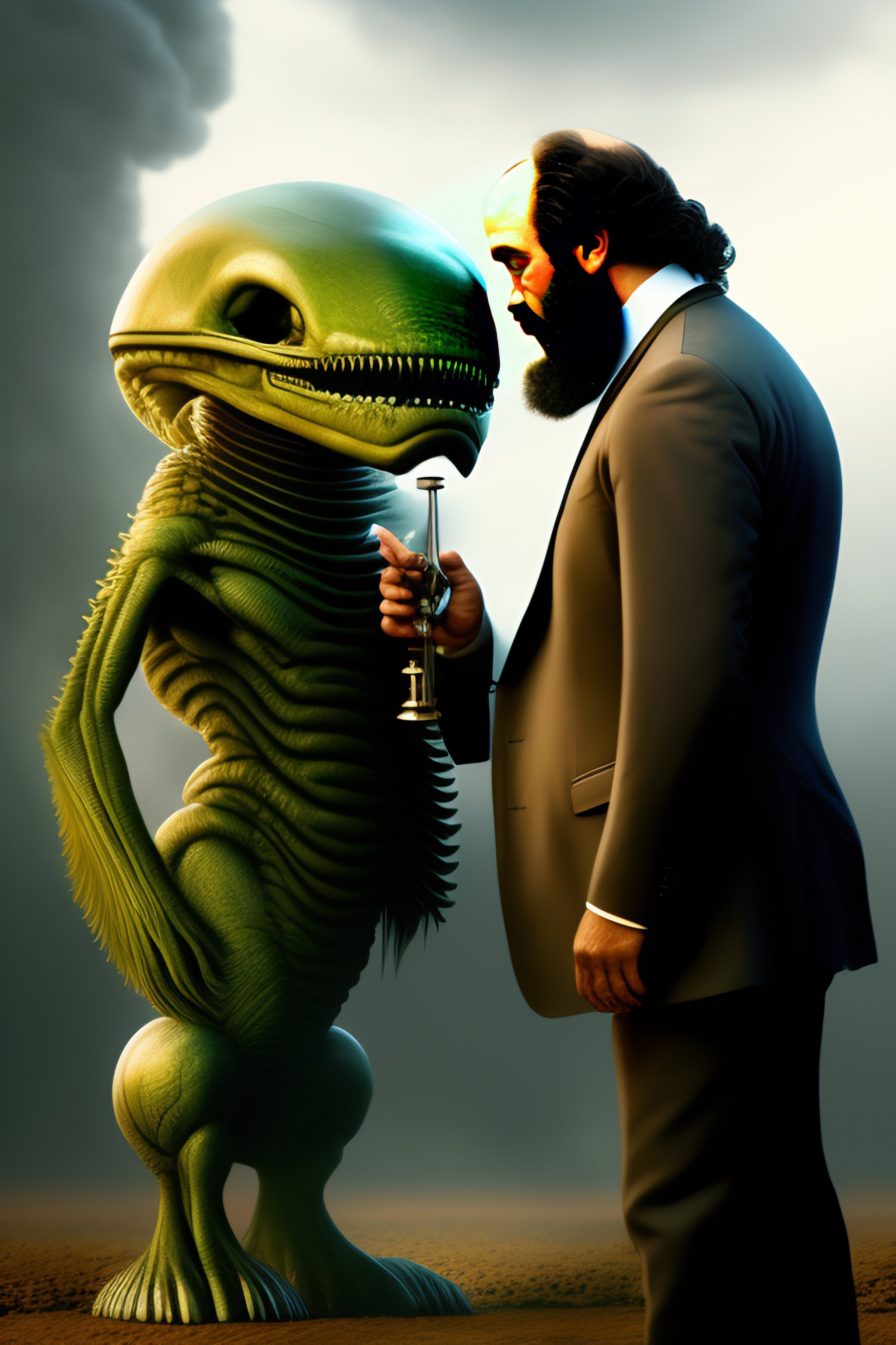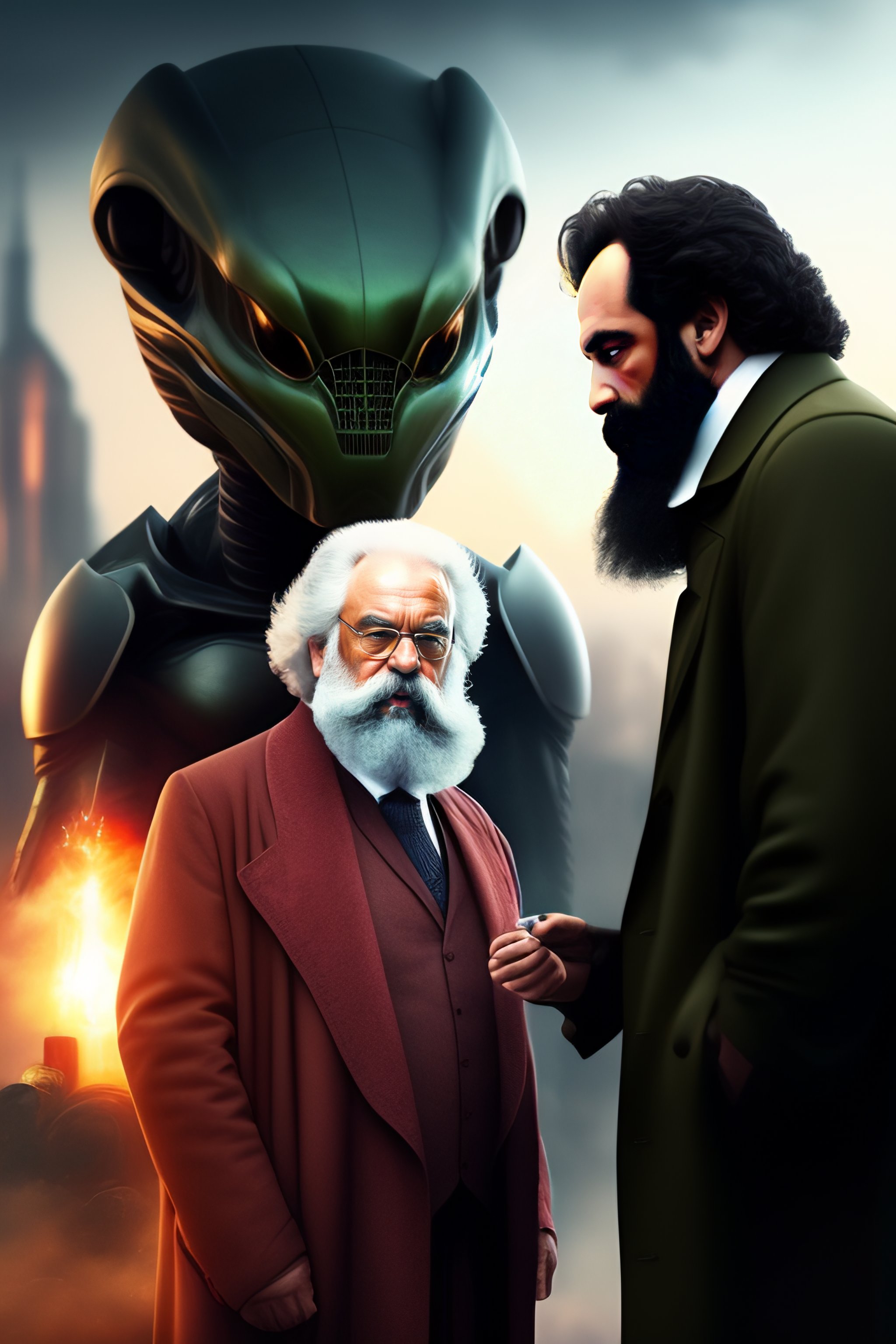 Karl marx fight with a alien