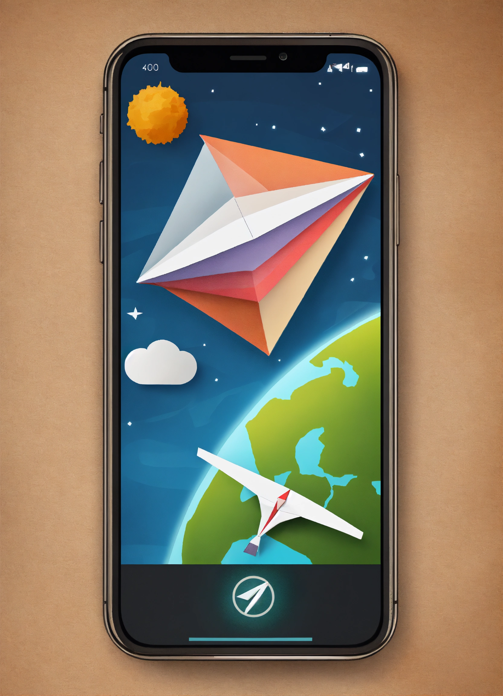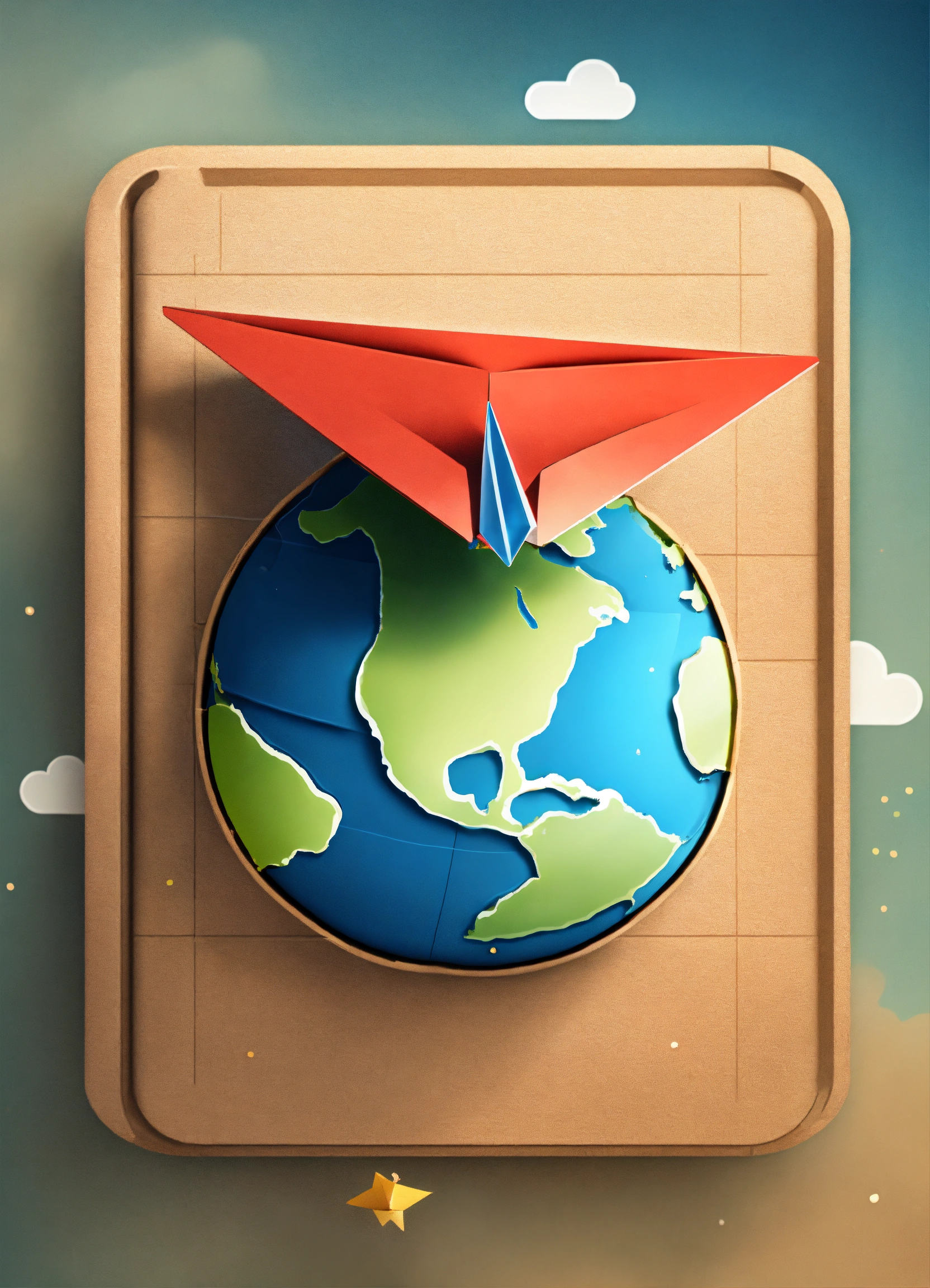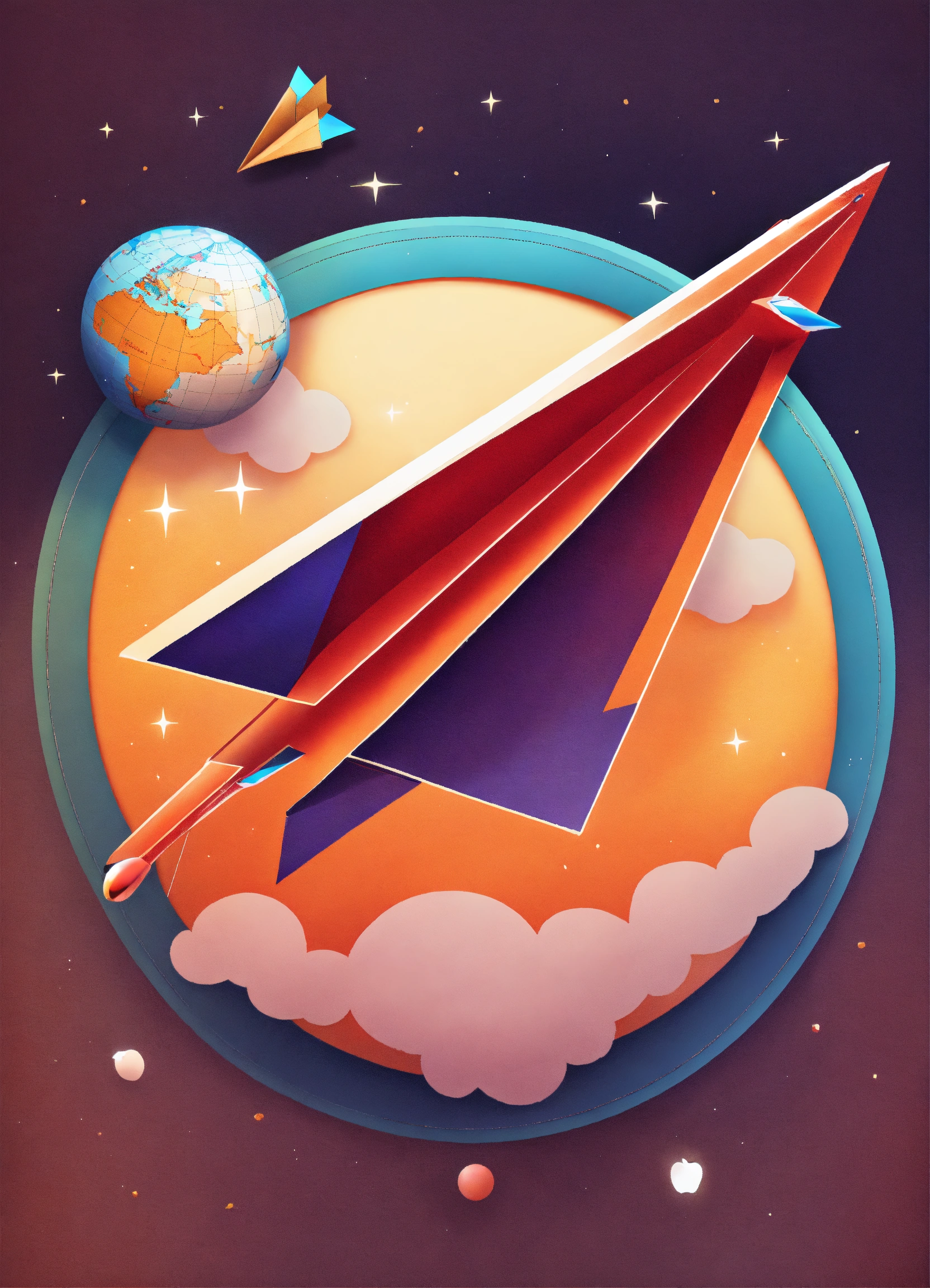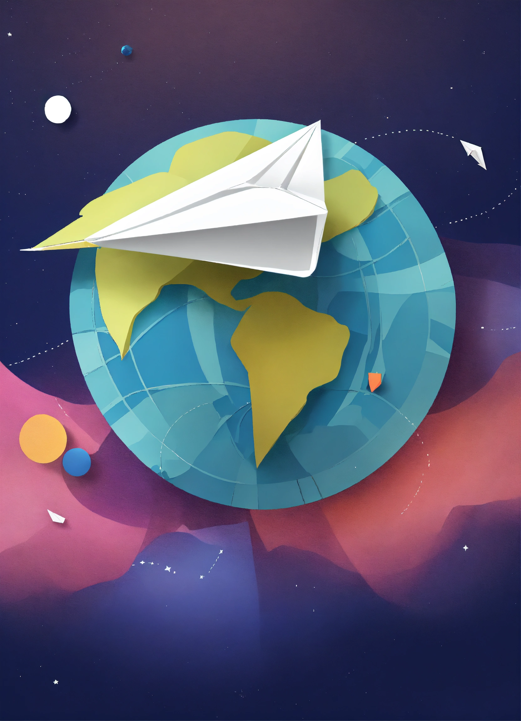 a paper airplane flying around earth