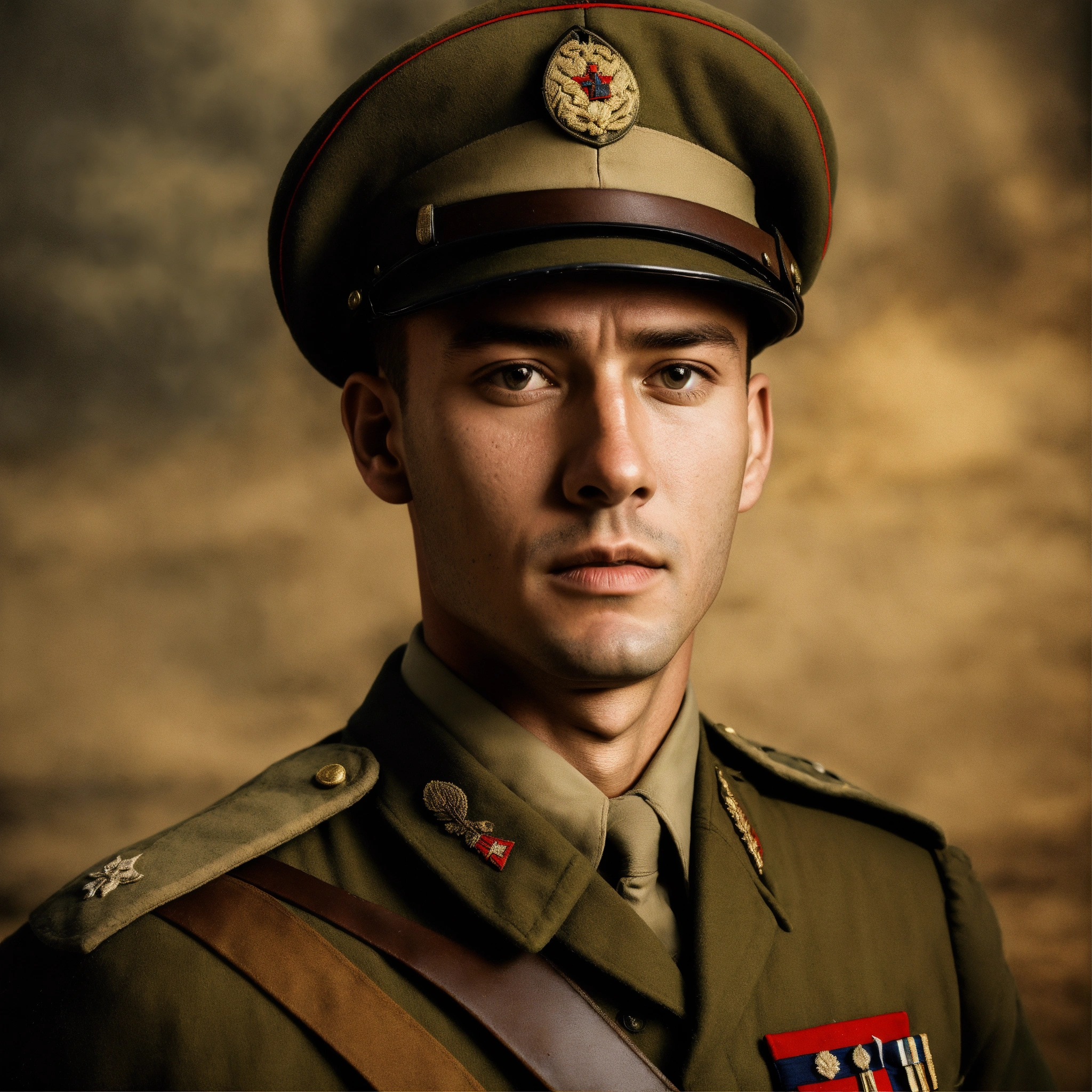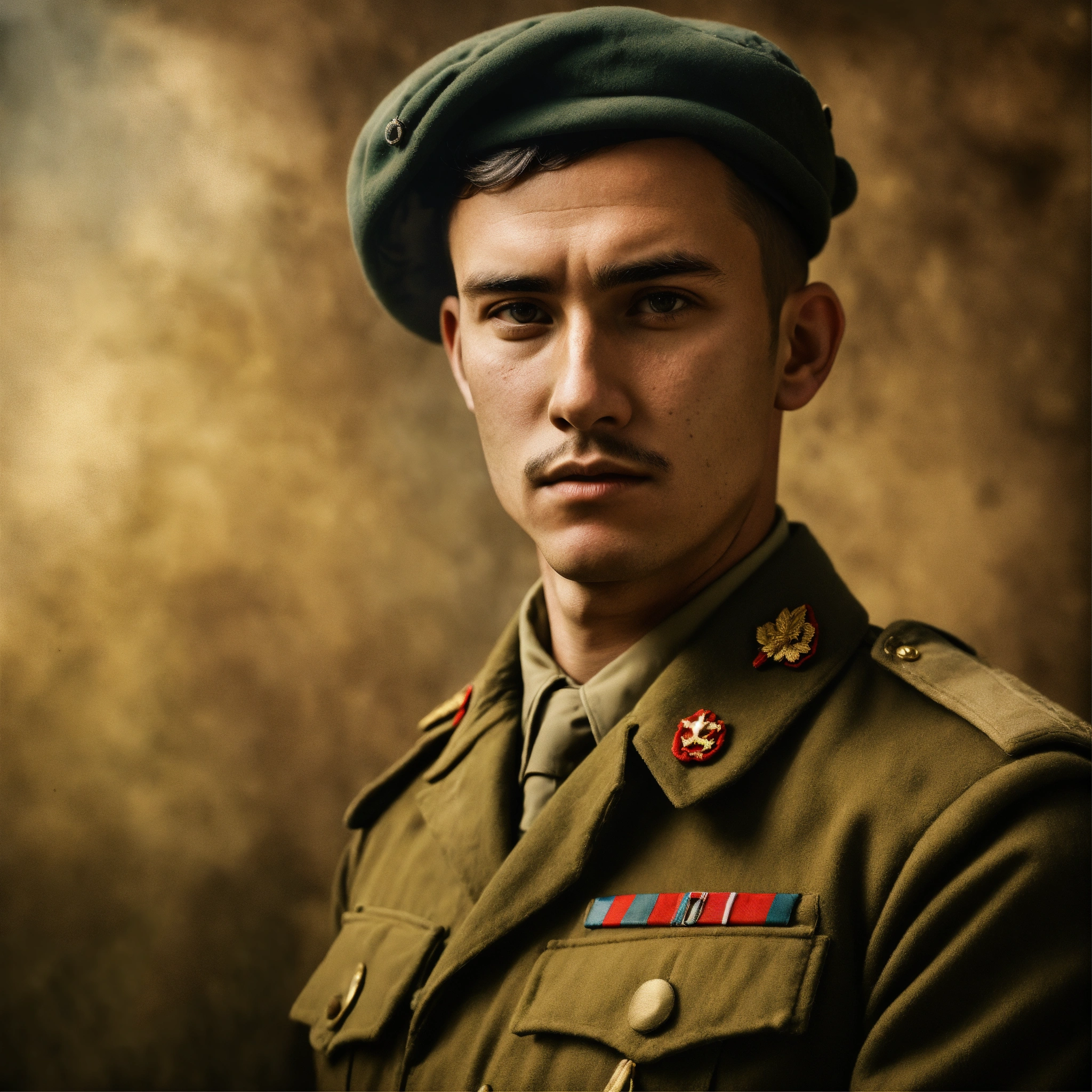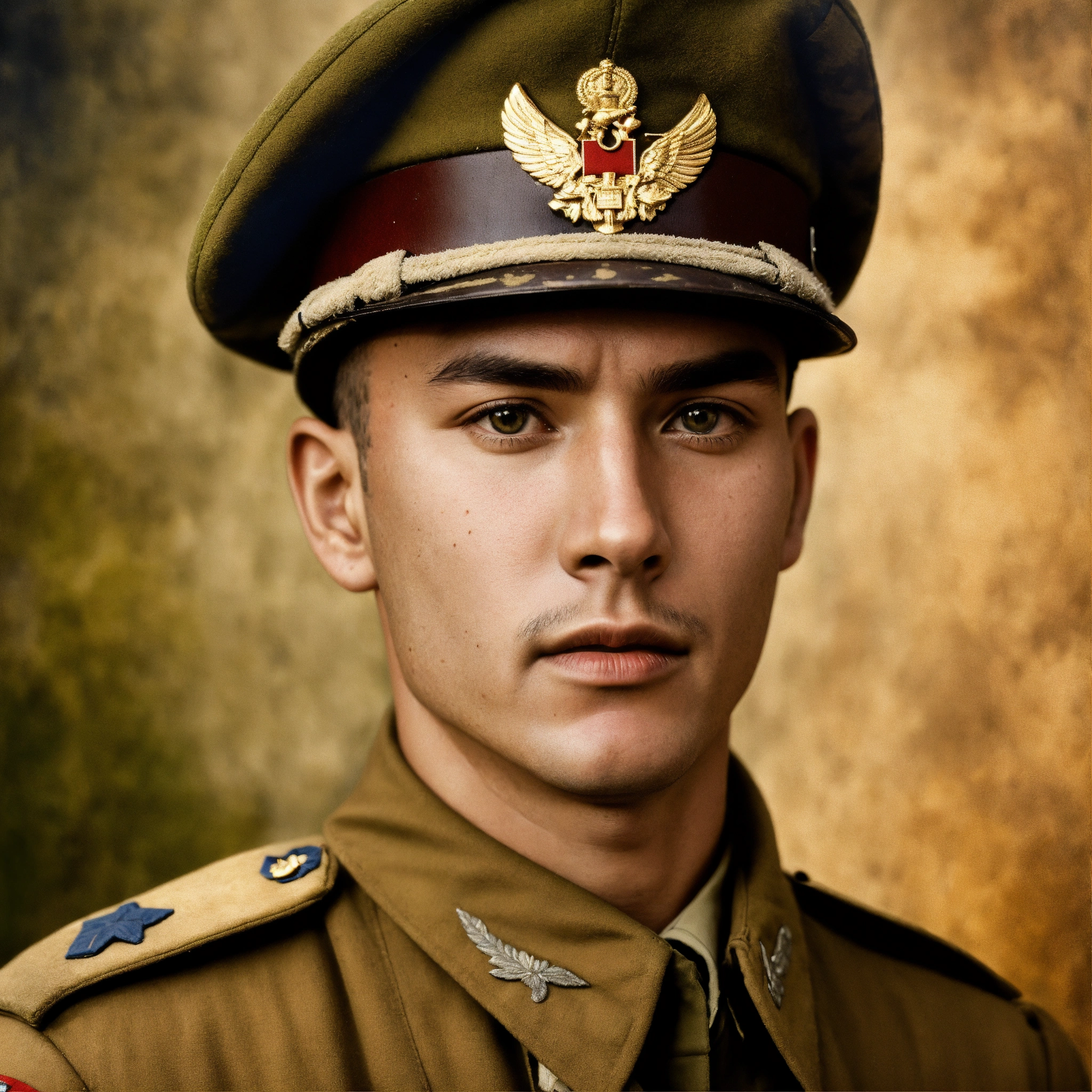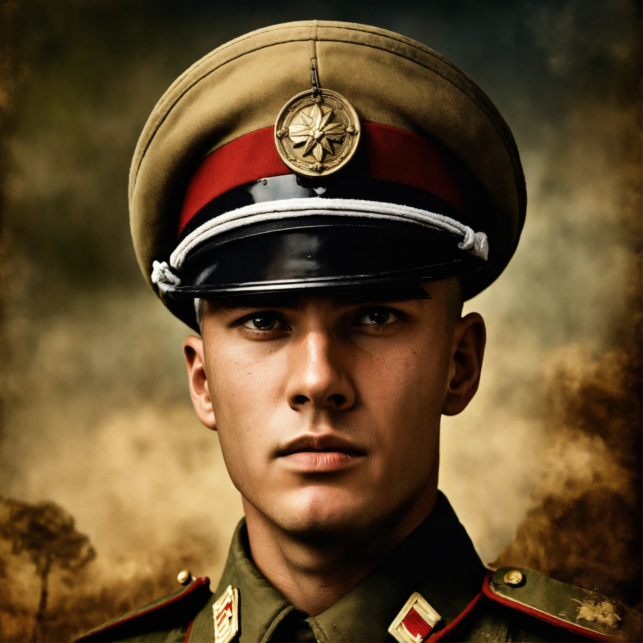An ancient style portrait of an unidentified soldier who is a world war 2 soldier