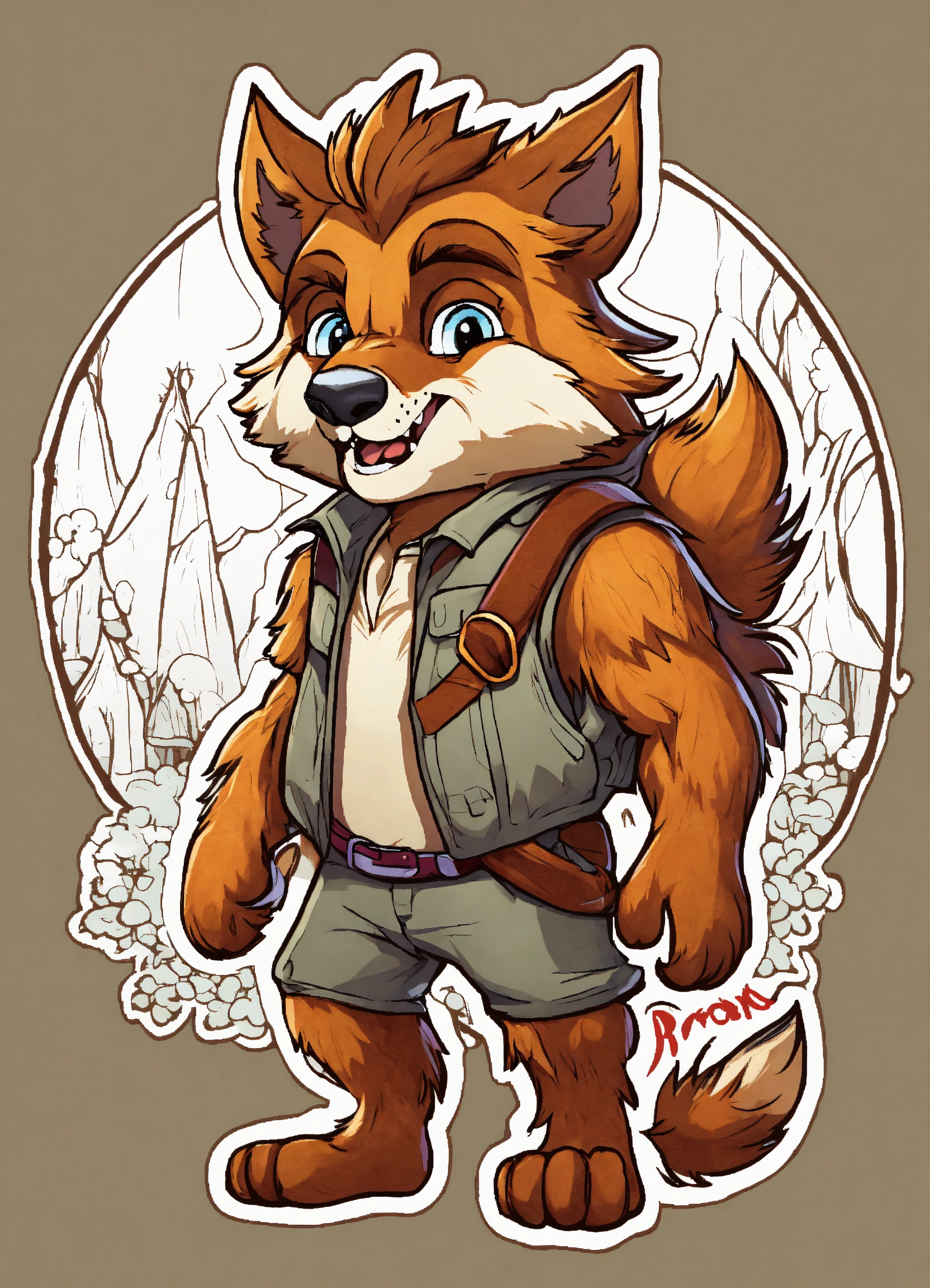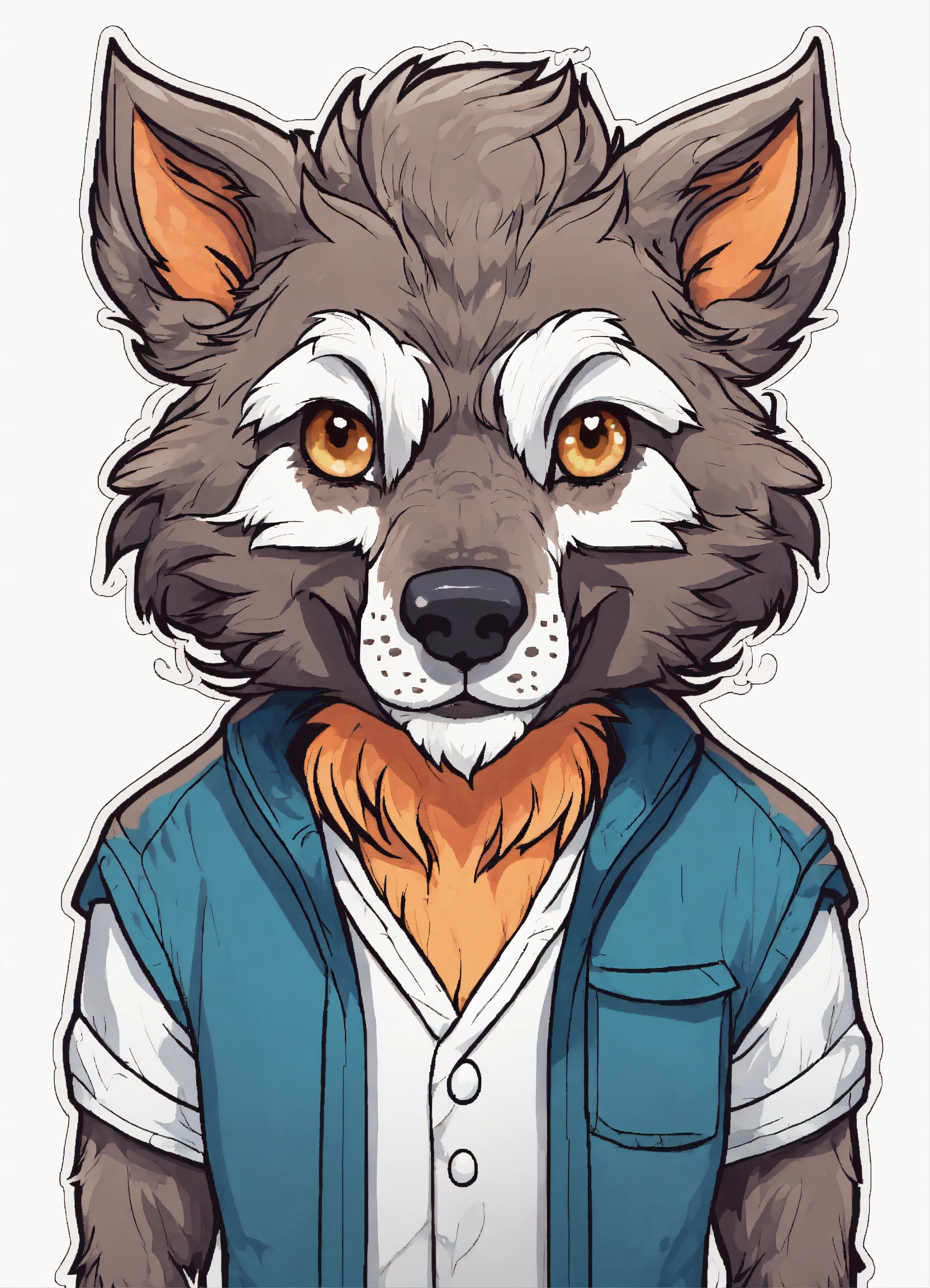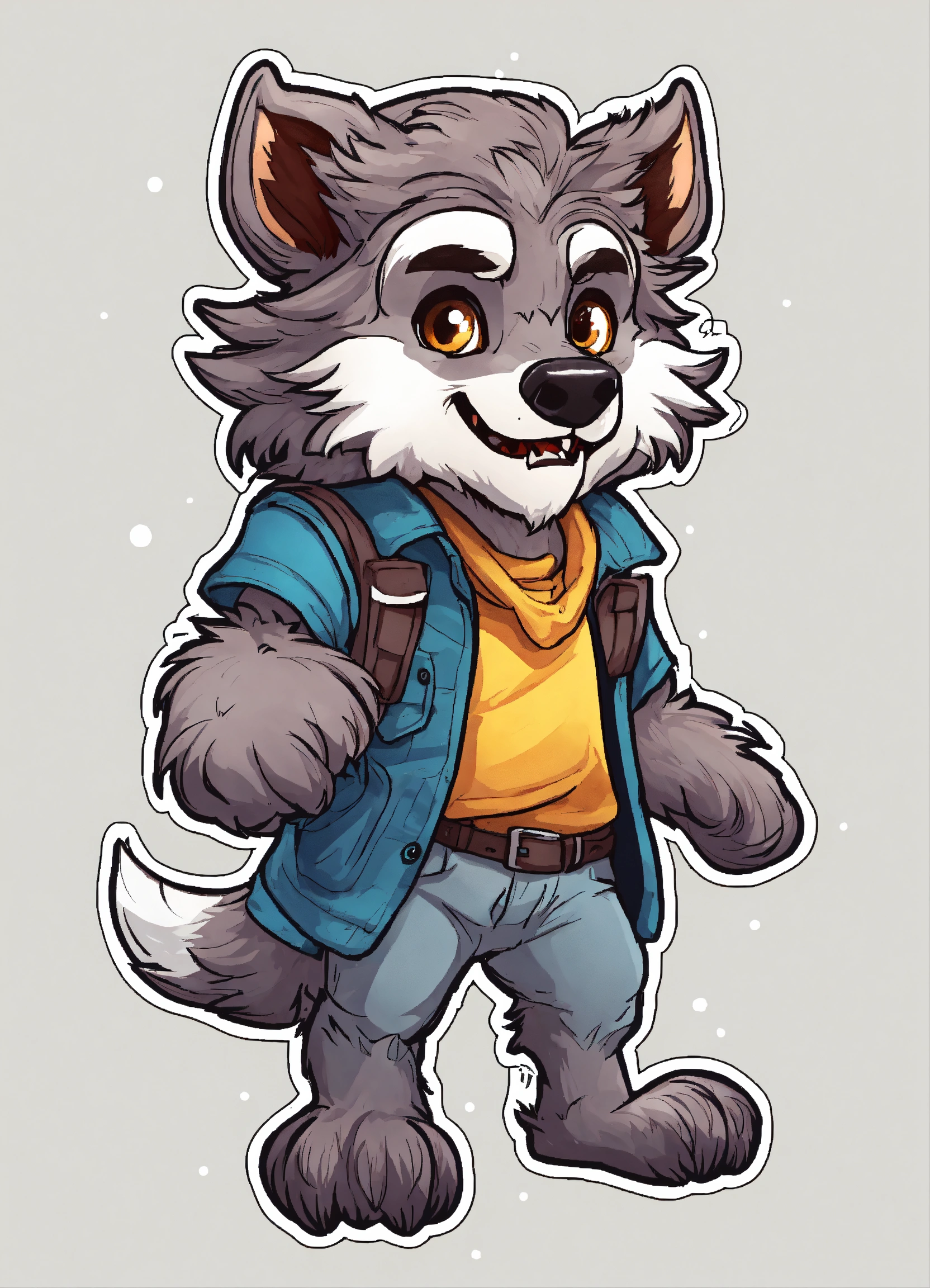 Generate a cute little werewolf illustration, 4k resolution, cartoon-sticker style with clear lines on a pure white background suitable for a children's coloring book.