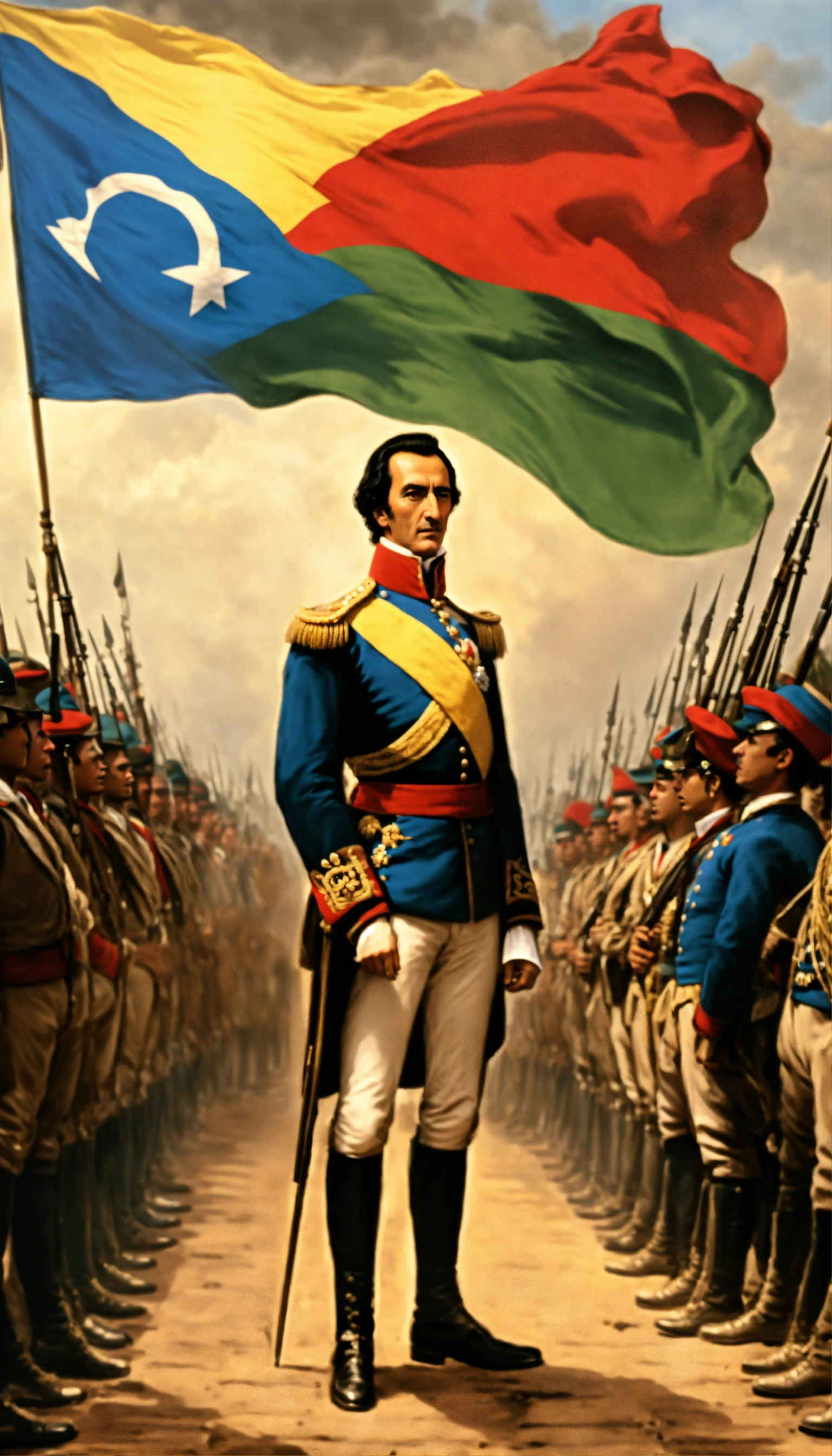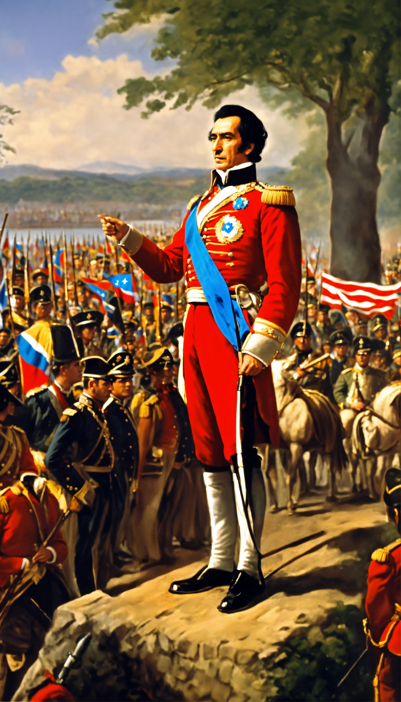 Simon bolivar is giving a speech to soldiers fighting for latin american independence