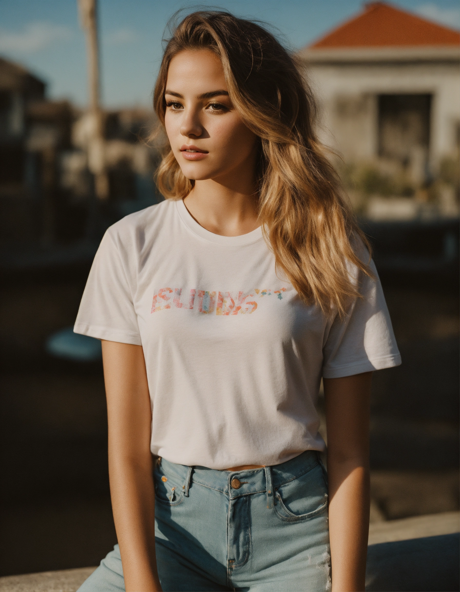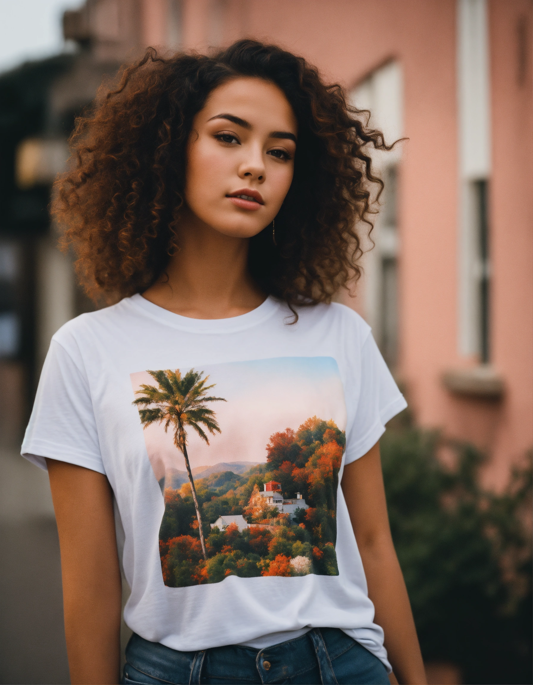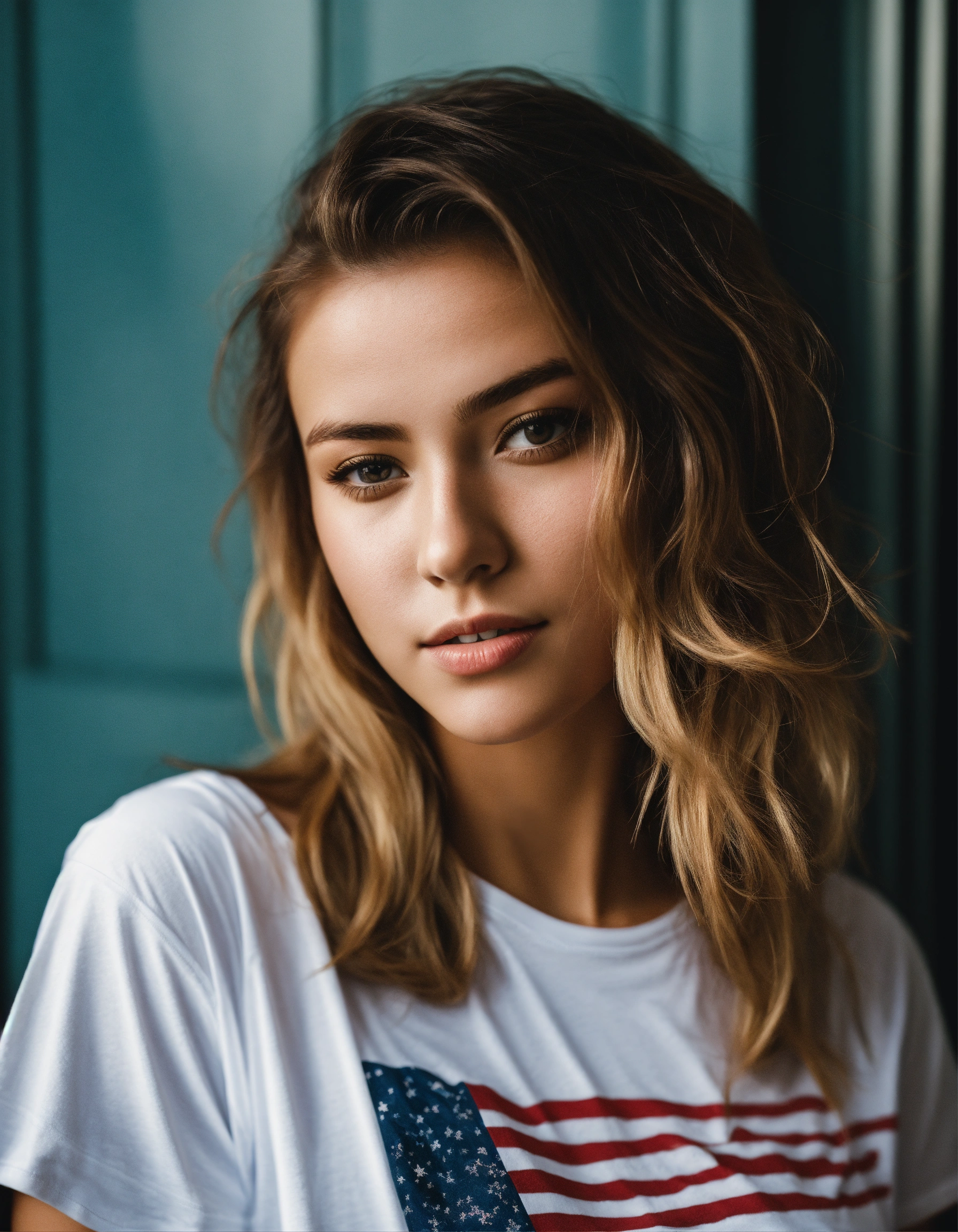 A photo of a beautiful girl wearing a t-shirt