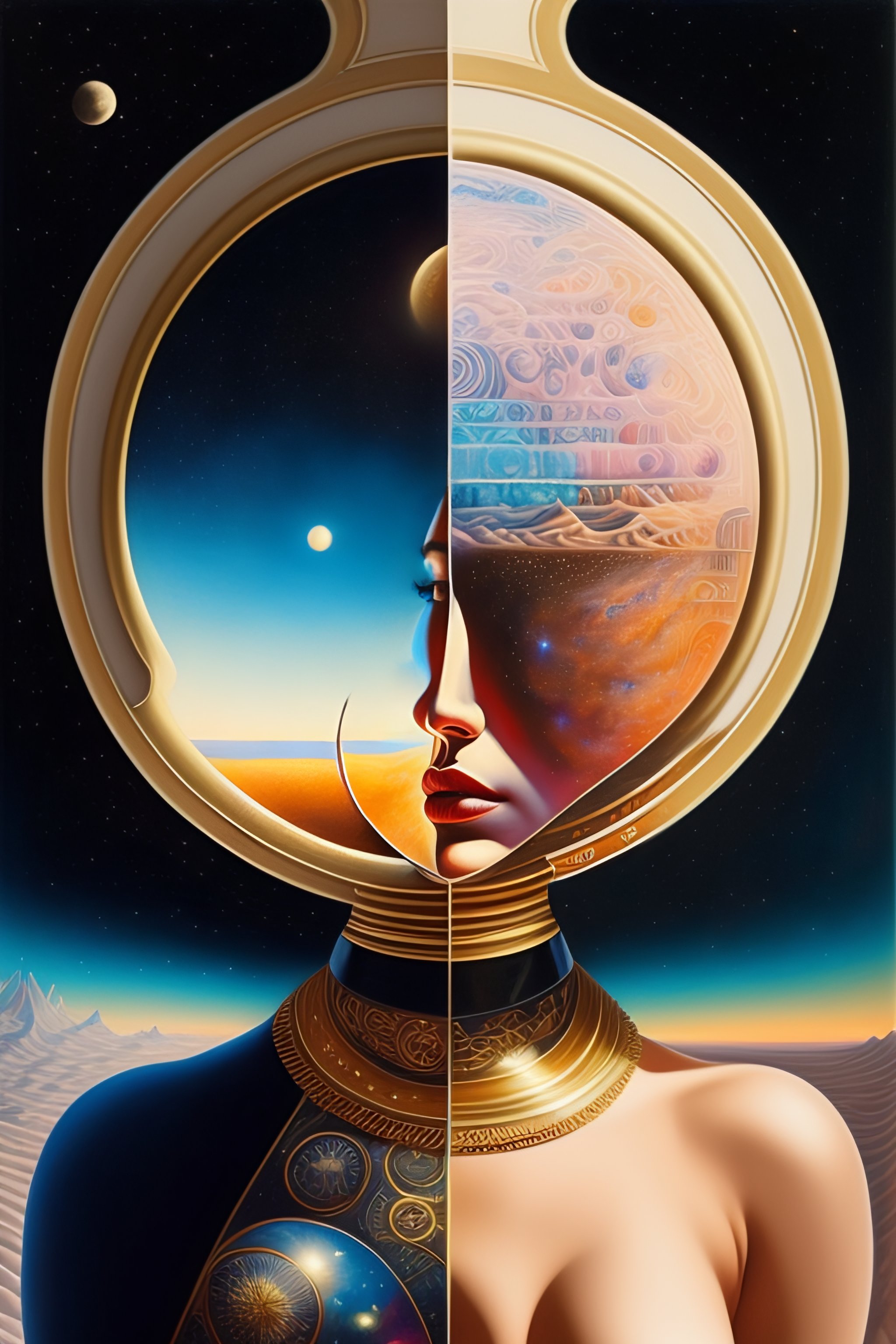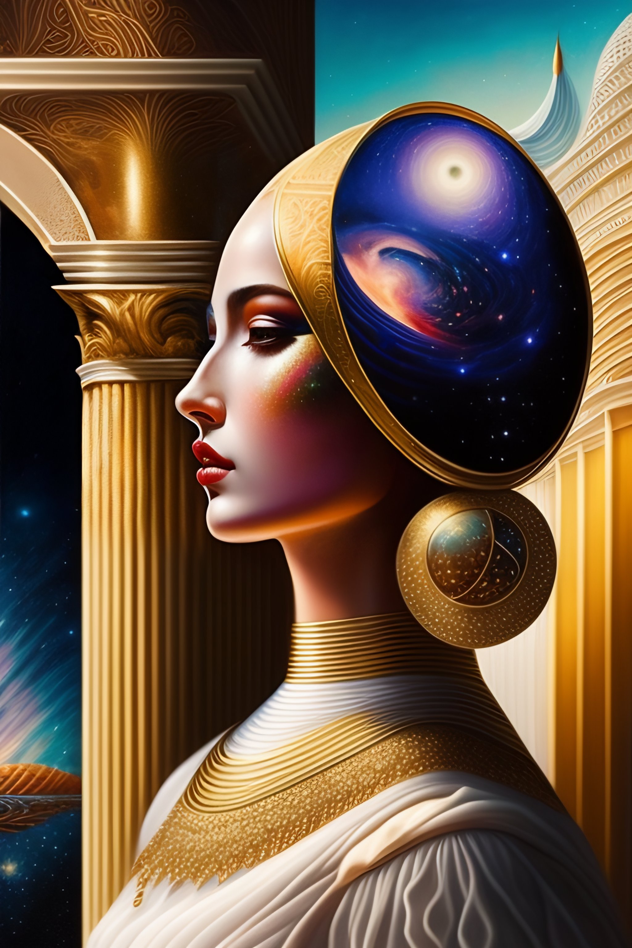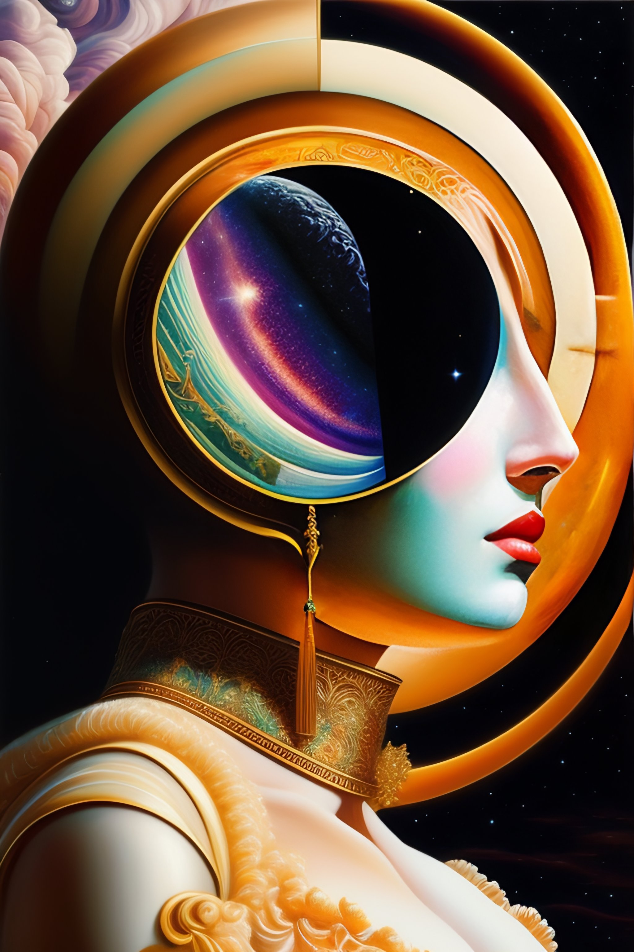 You are the universe experiencing itself., universe fulfilling the body, fantasy, renaissance aesthetic, star trek aesthetic, pastel colors aesthetic, intricate fashion clothing, highly detailed, surrealistic, oil painting, concept art, sharp focus, by giorgio de chirico