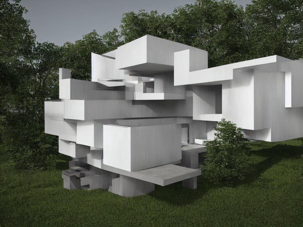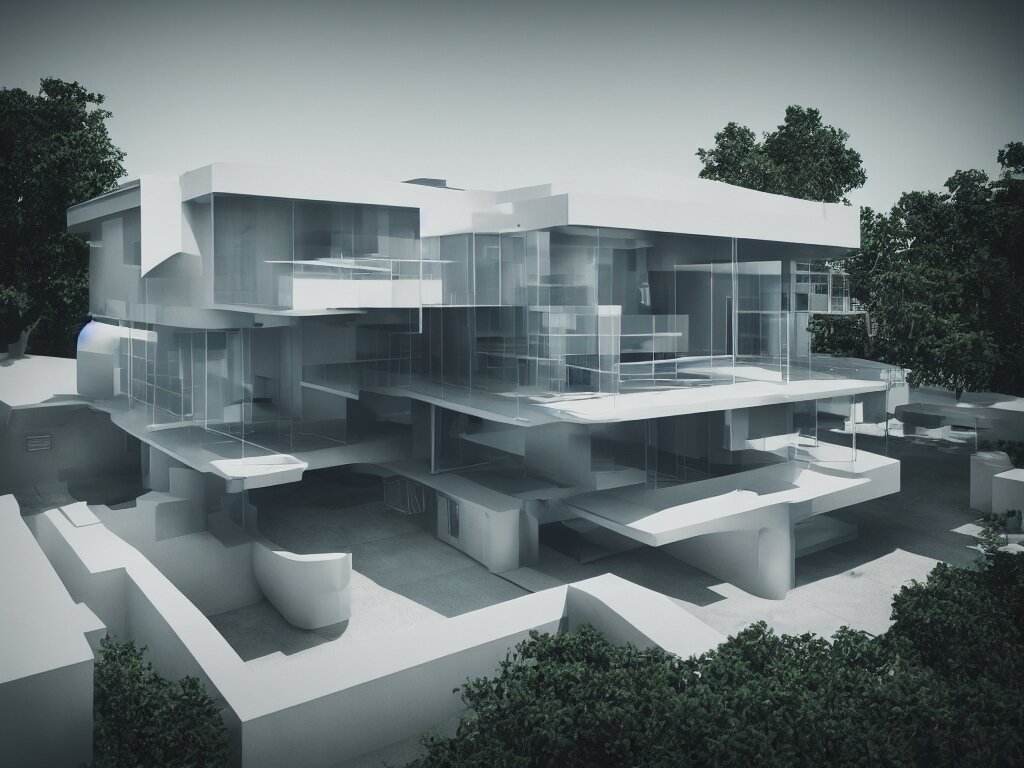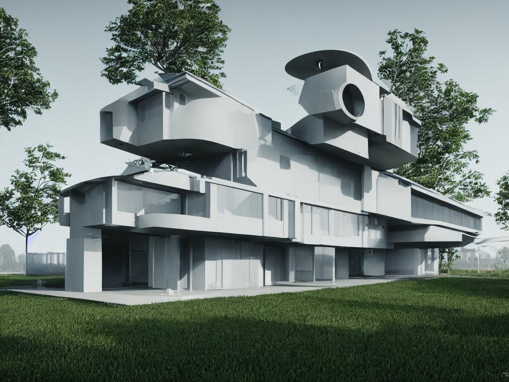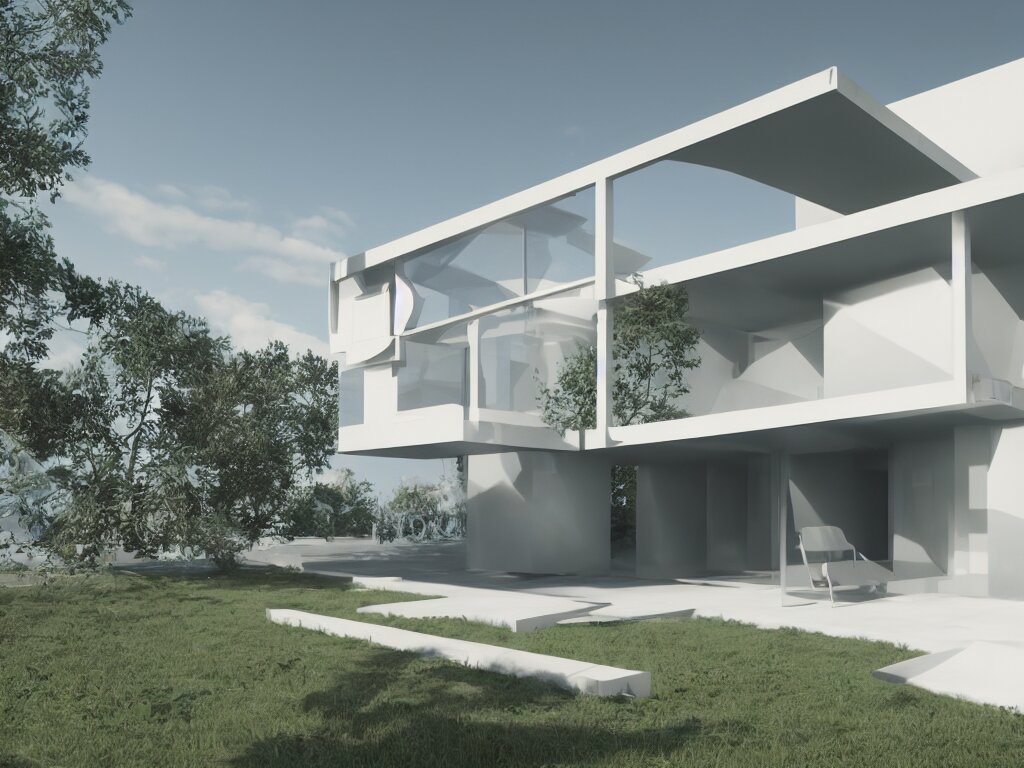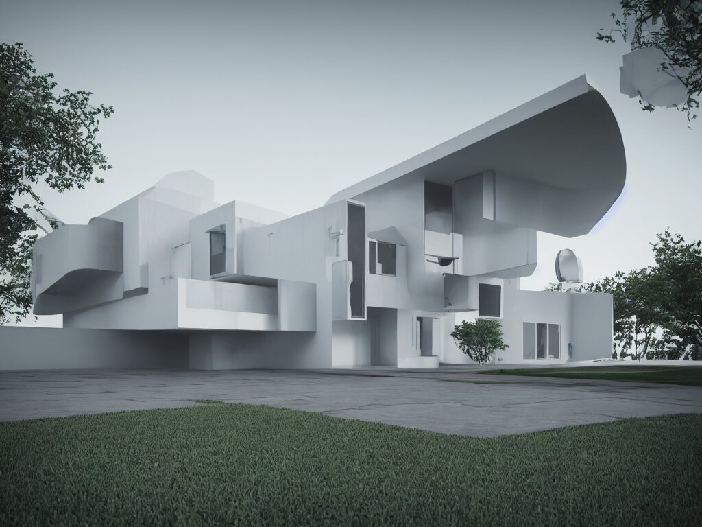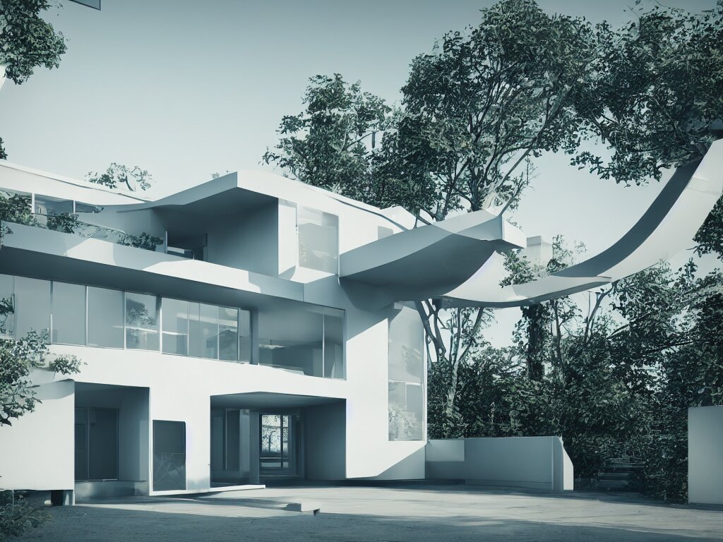 Futuristic bauhaus house concept, 3 d render, octane renderer, raytracing, 8 k resolution, rim light, hyperrealistic, photorealistic, high definition, highly detailed, tehnicolor, architecture photography, masterpiece