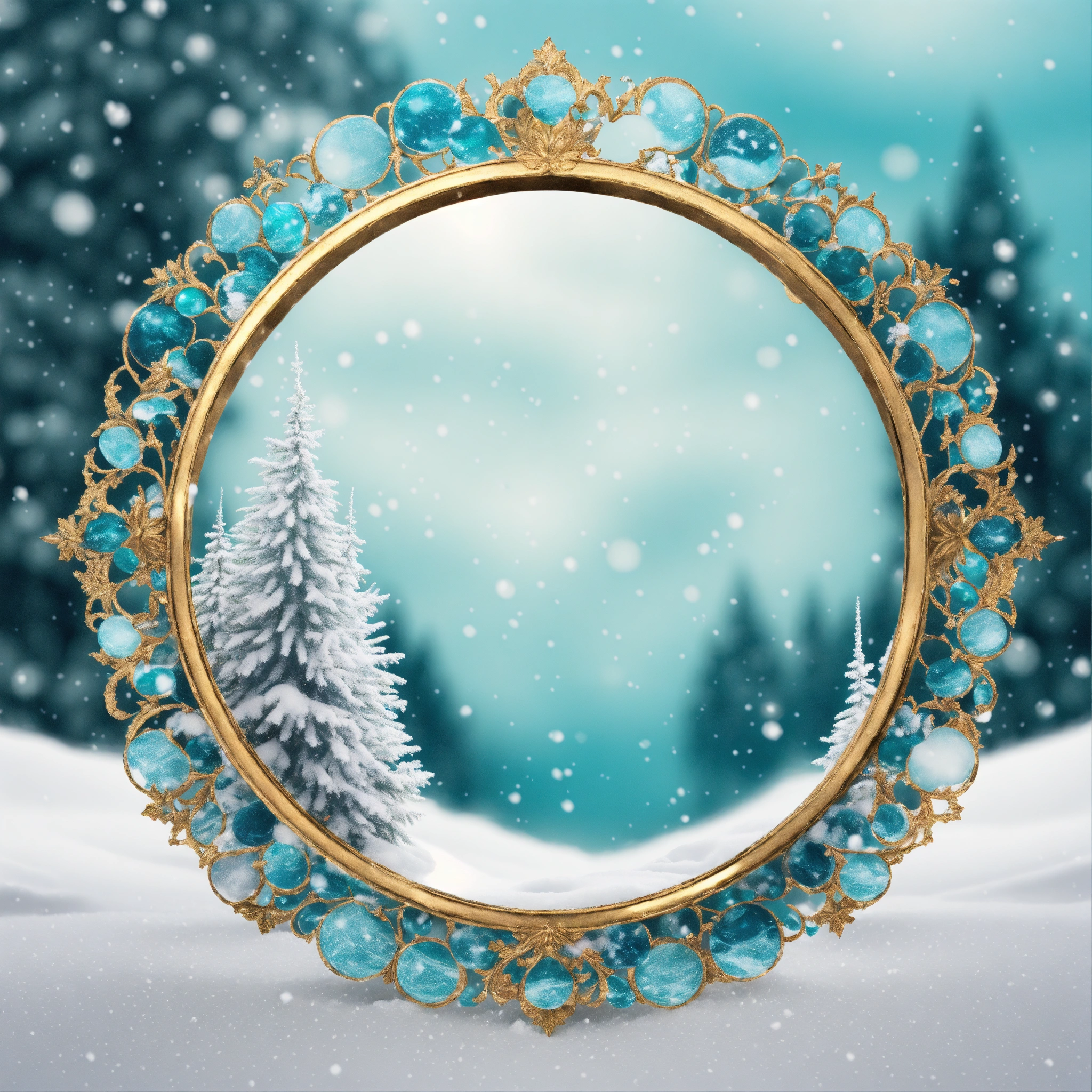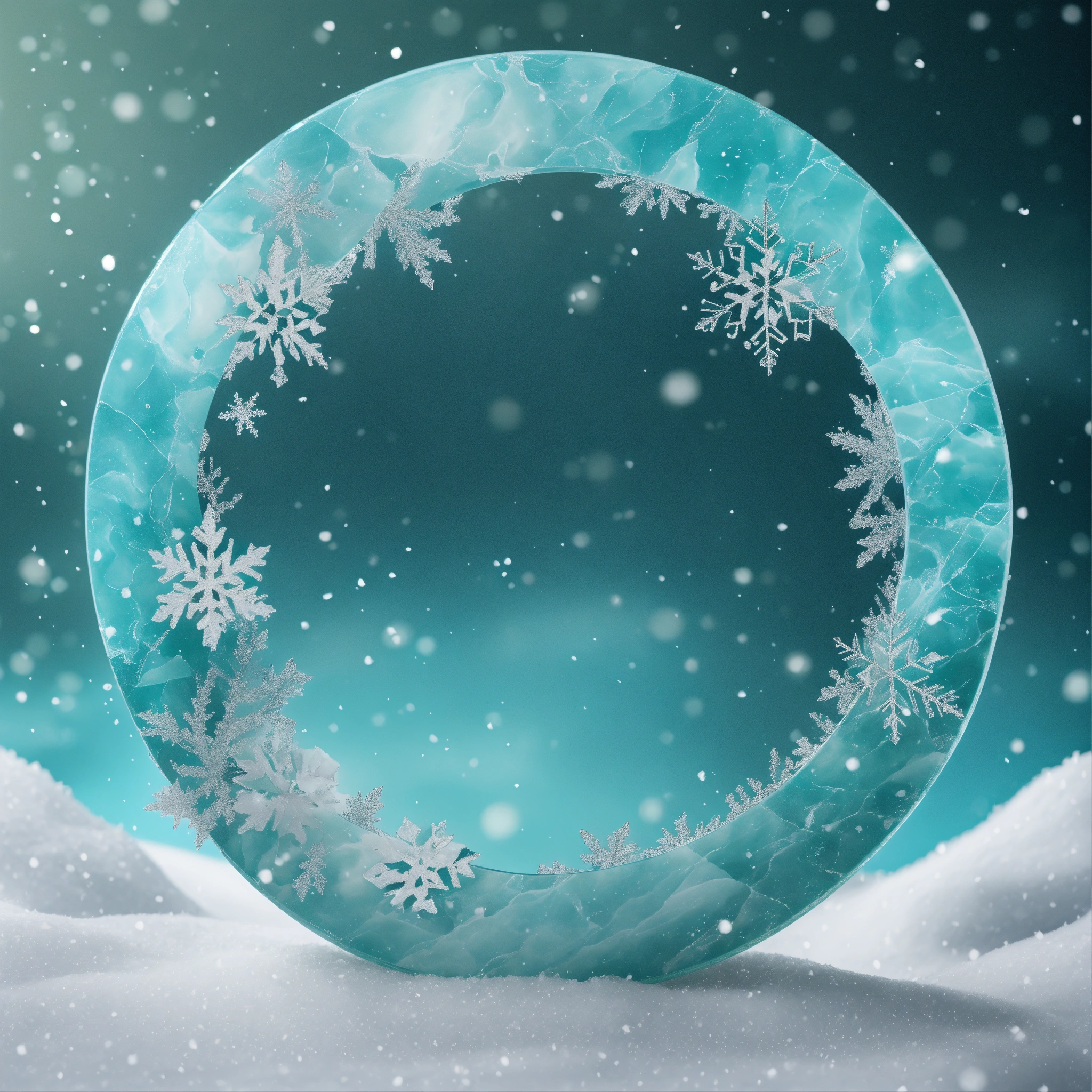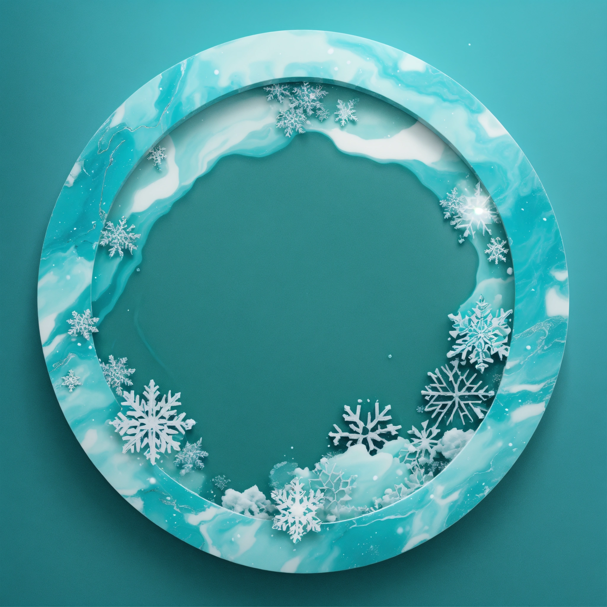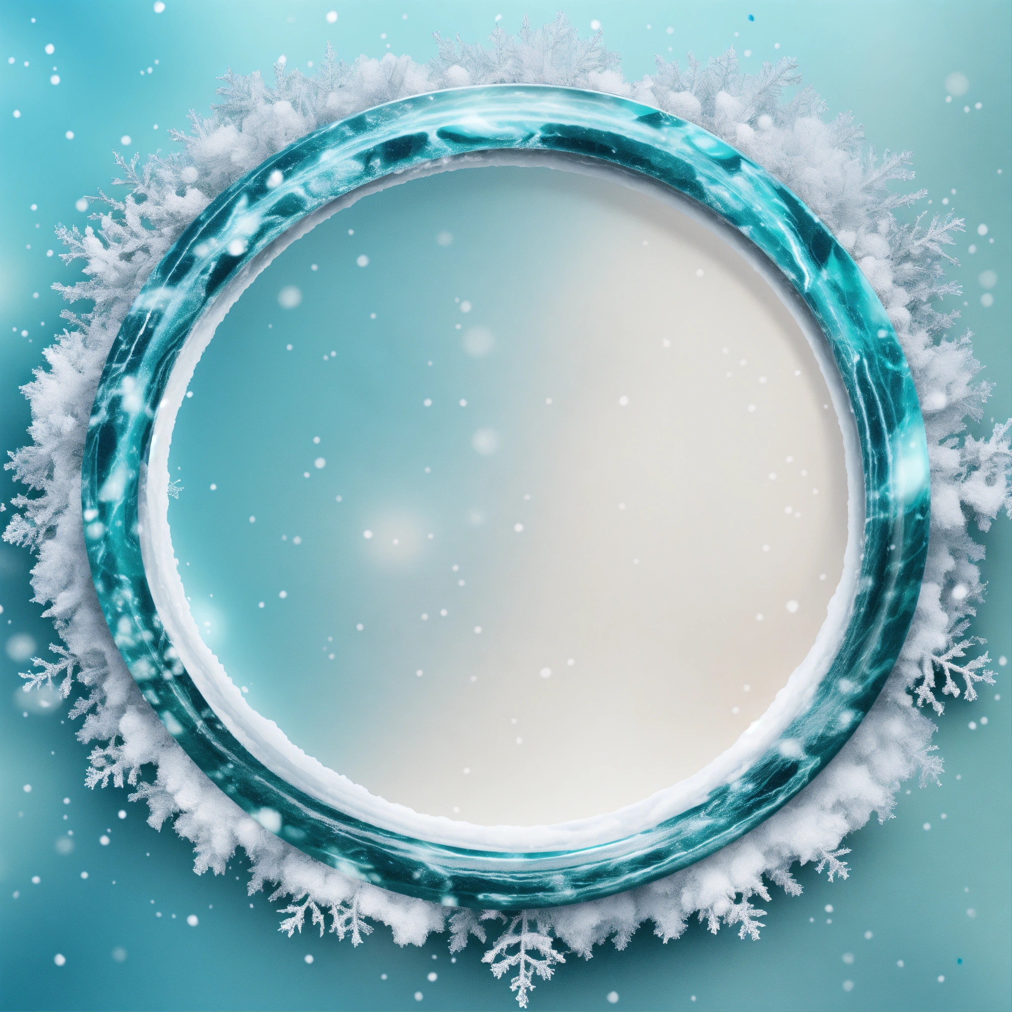 Create a slim aqua marble winter circle frame in a snow white png background