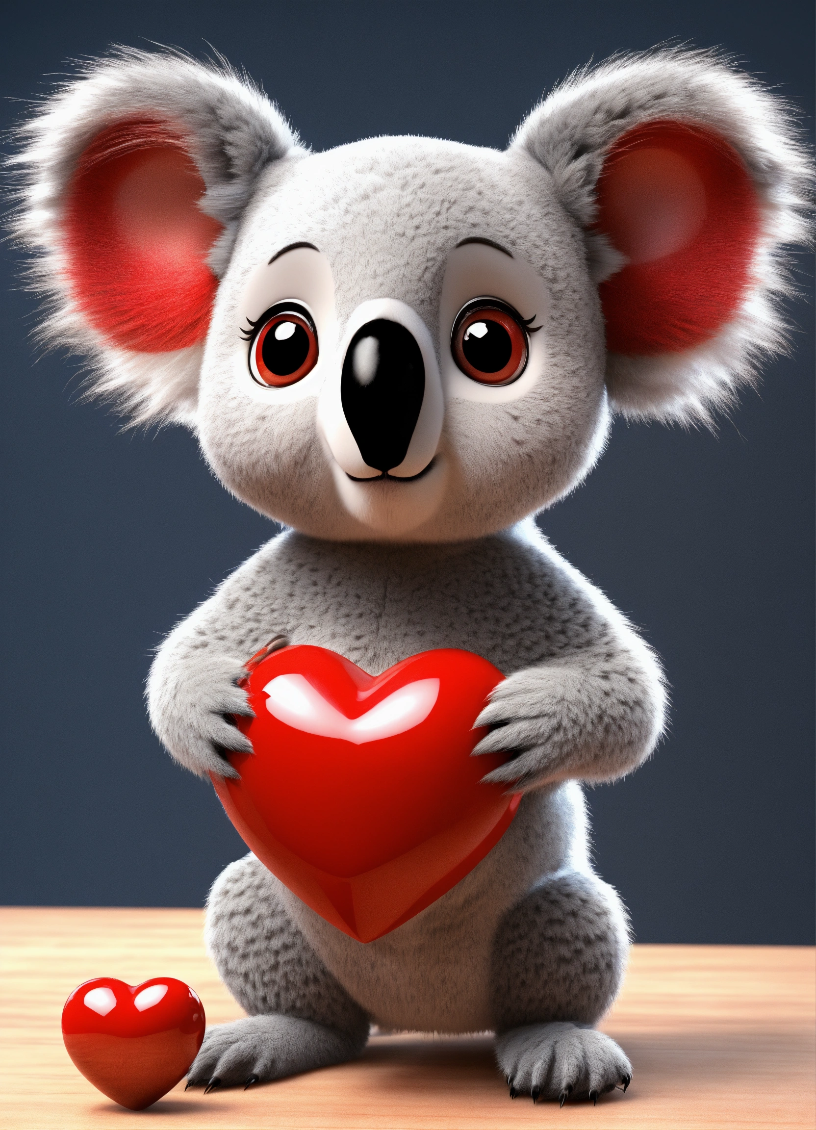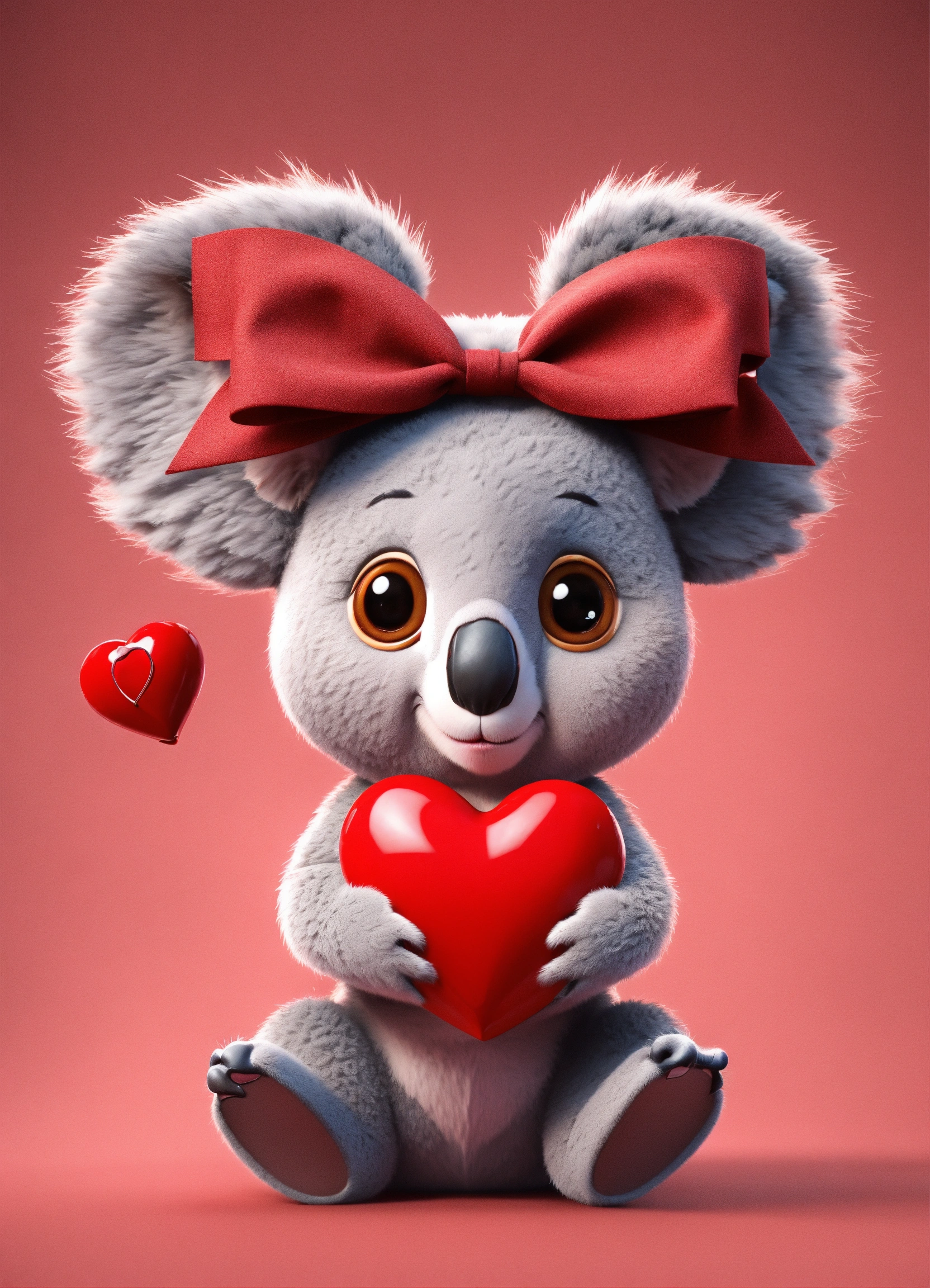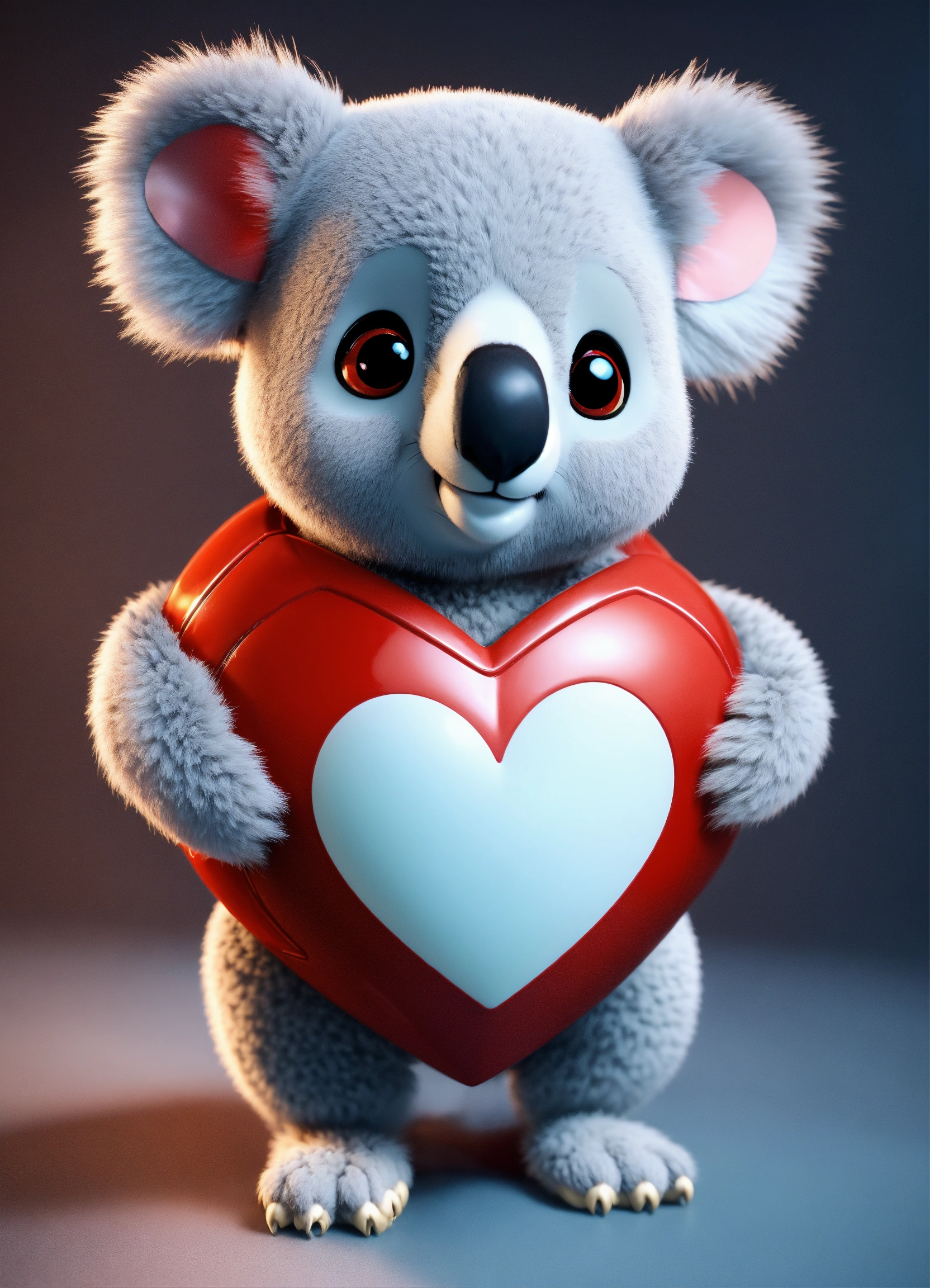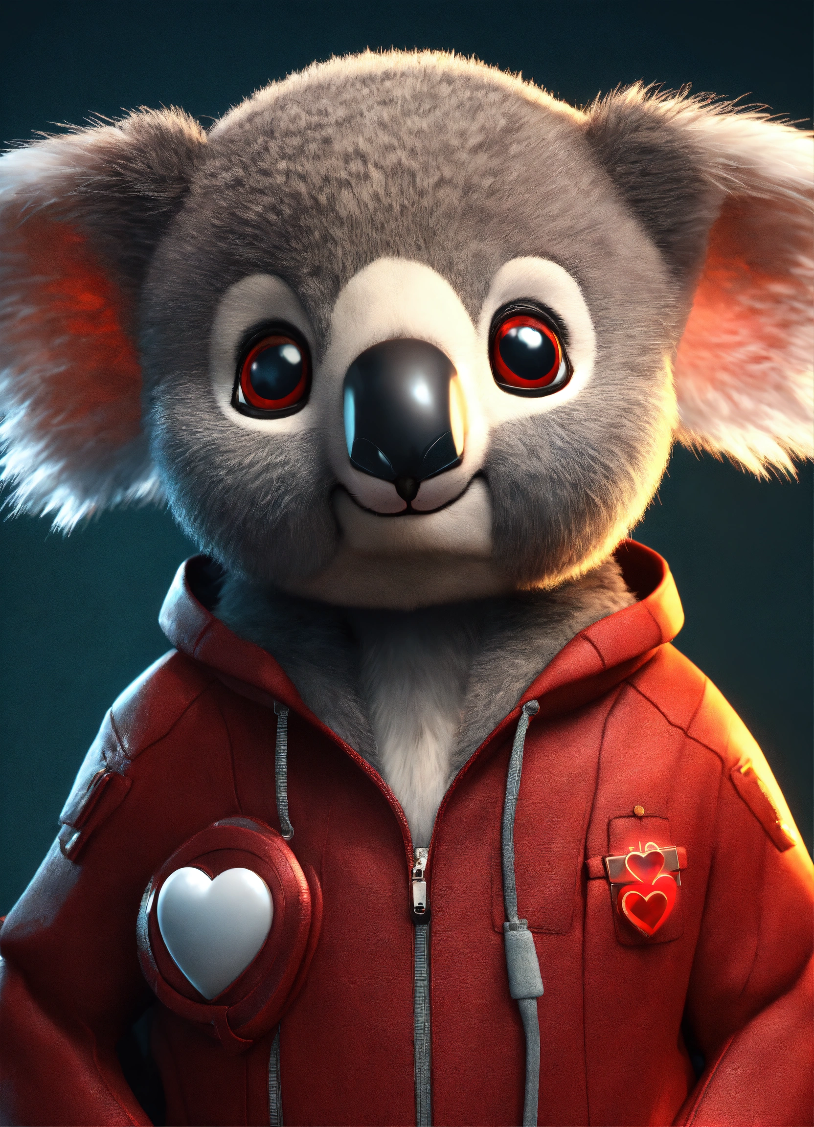 A cute 3d model koala character in a matrix, big eyes, charming, attractive, adorable, luxurious, red heart on his chest, high resolution, hyperrealistic, cartoonish