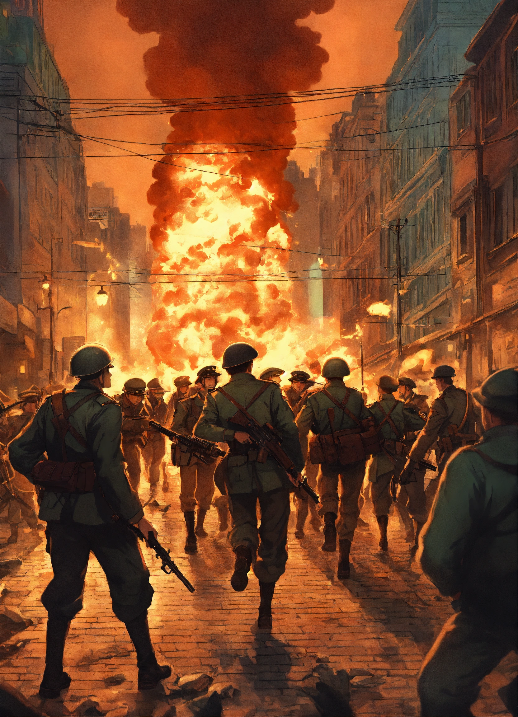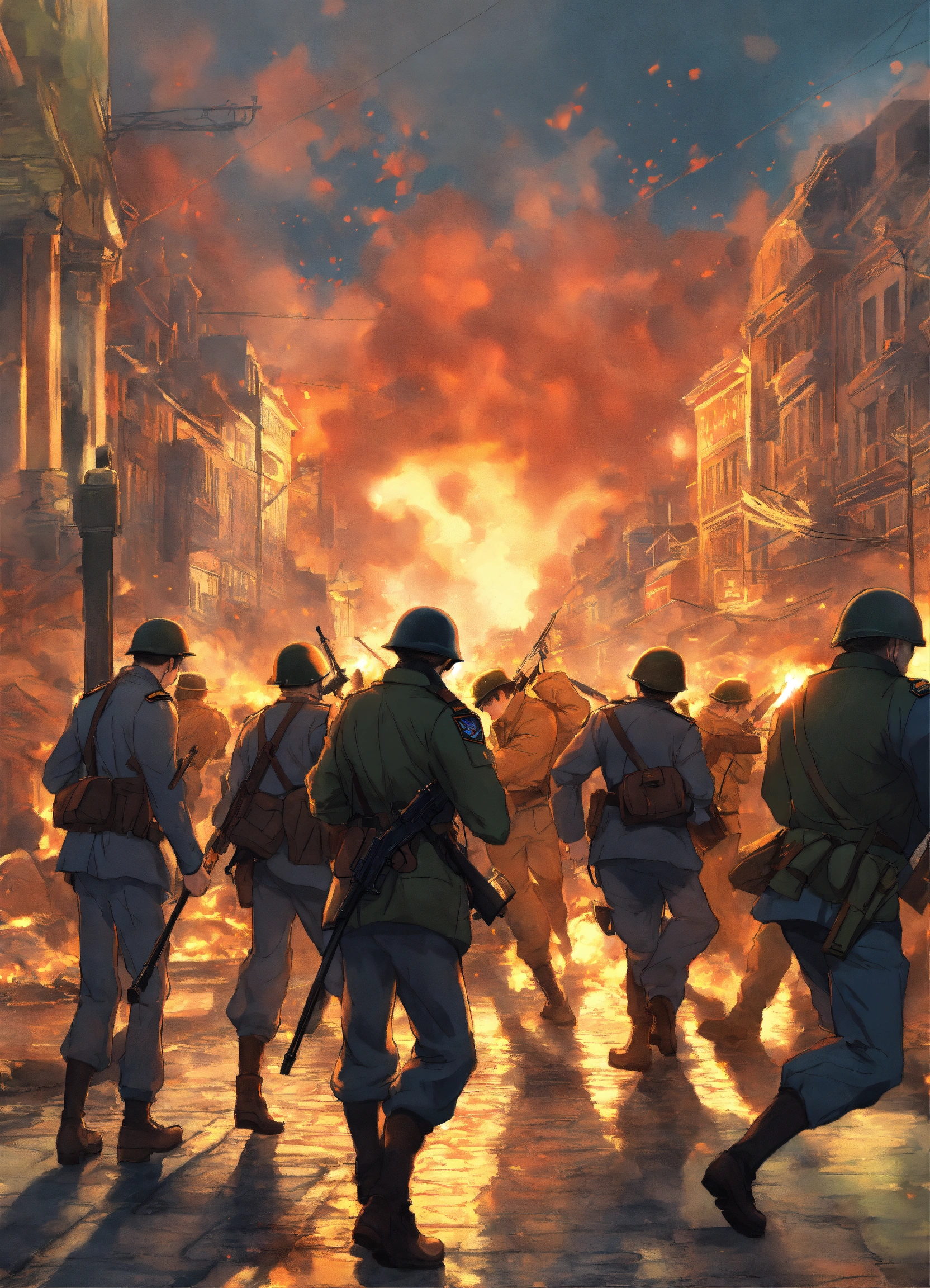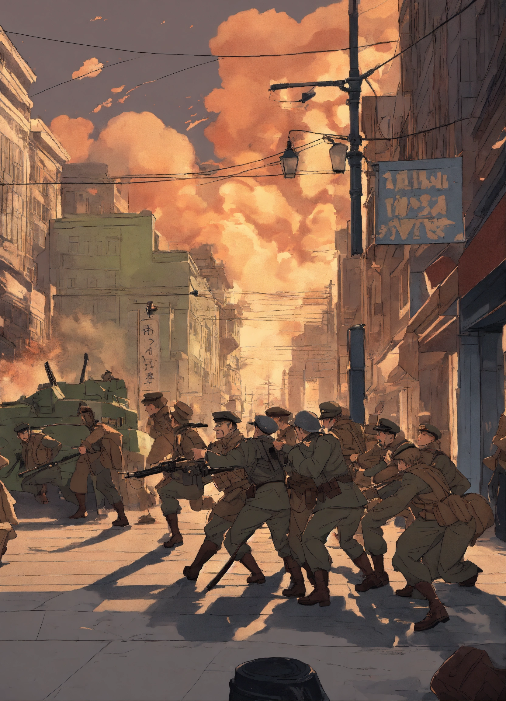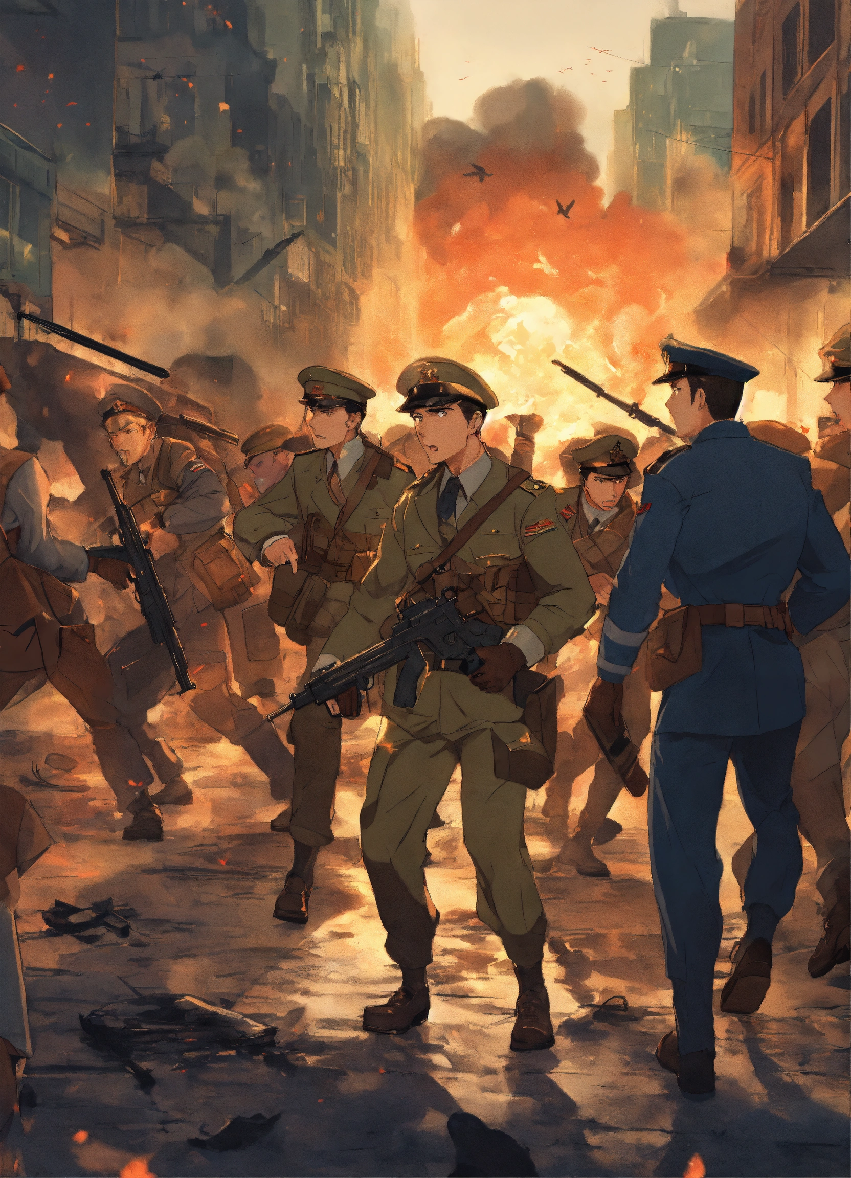 End of world war 2 a group fighting one man in city streets