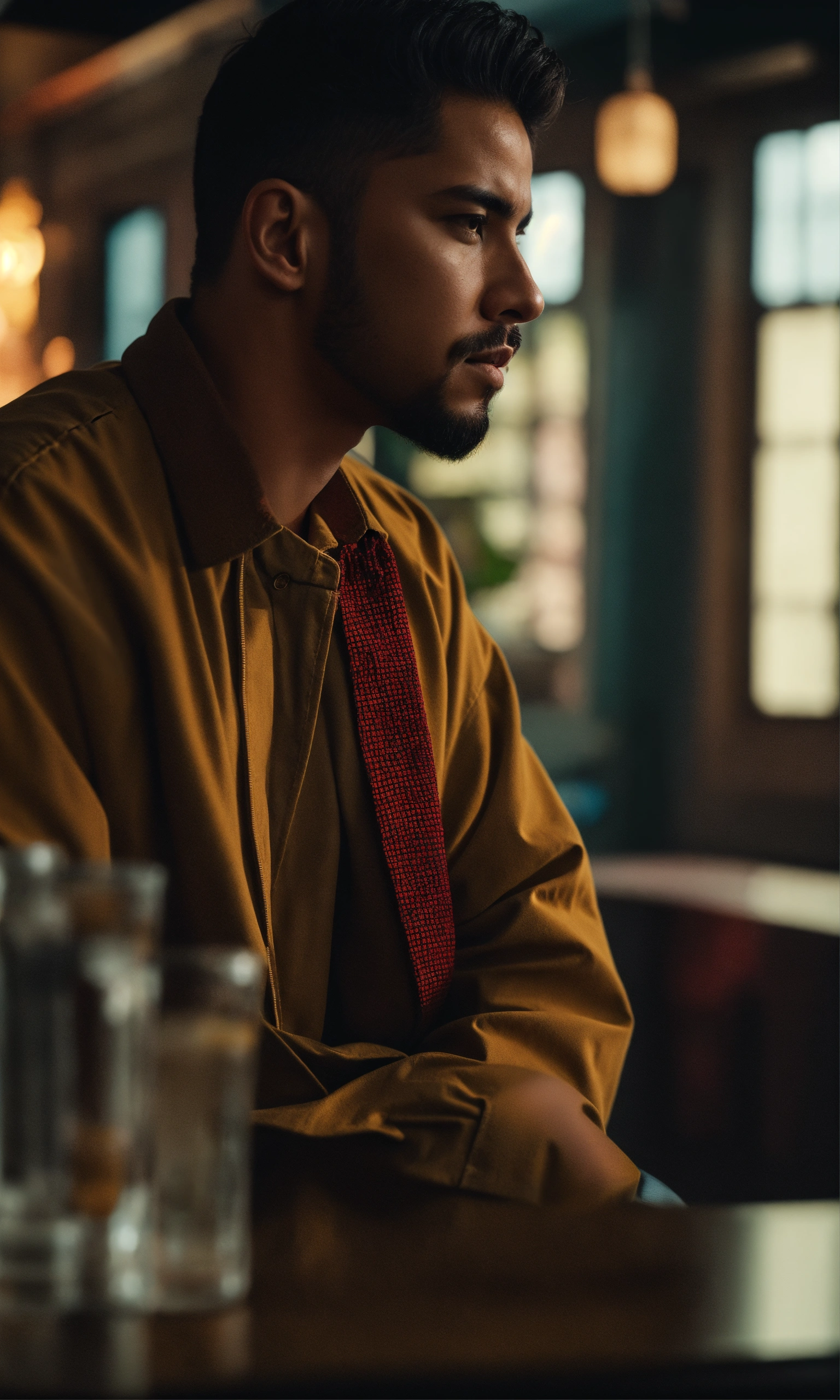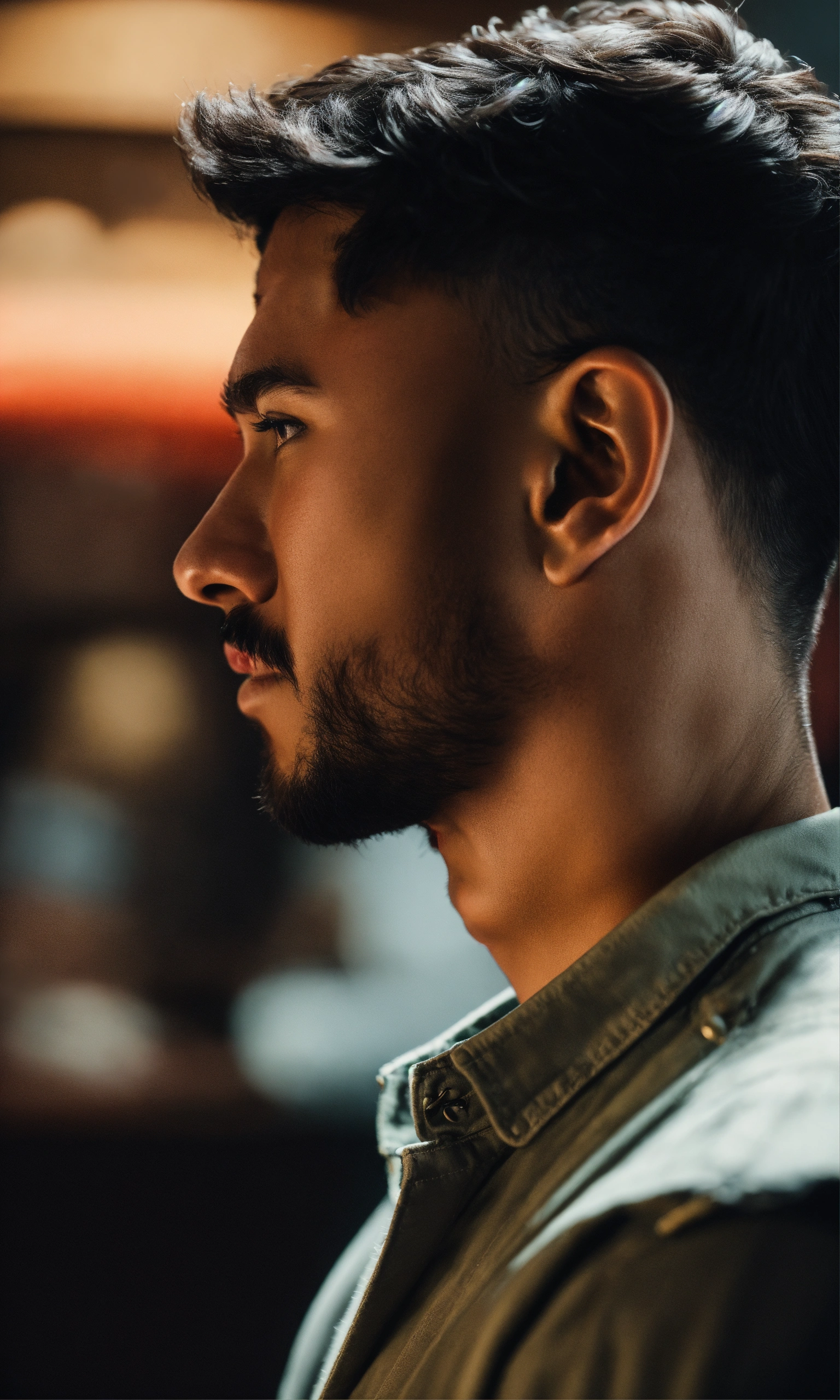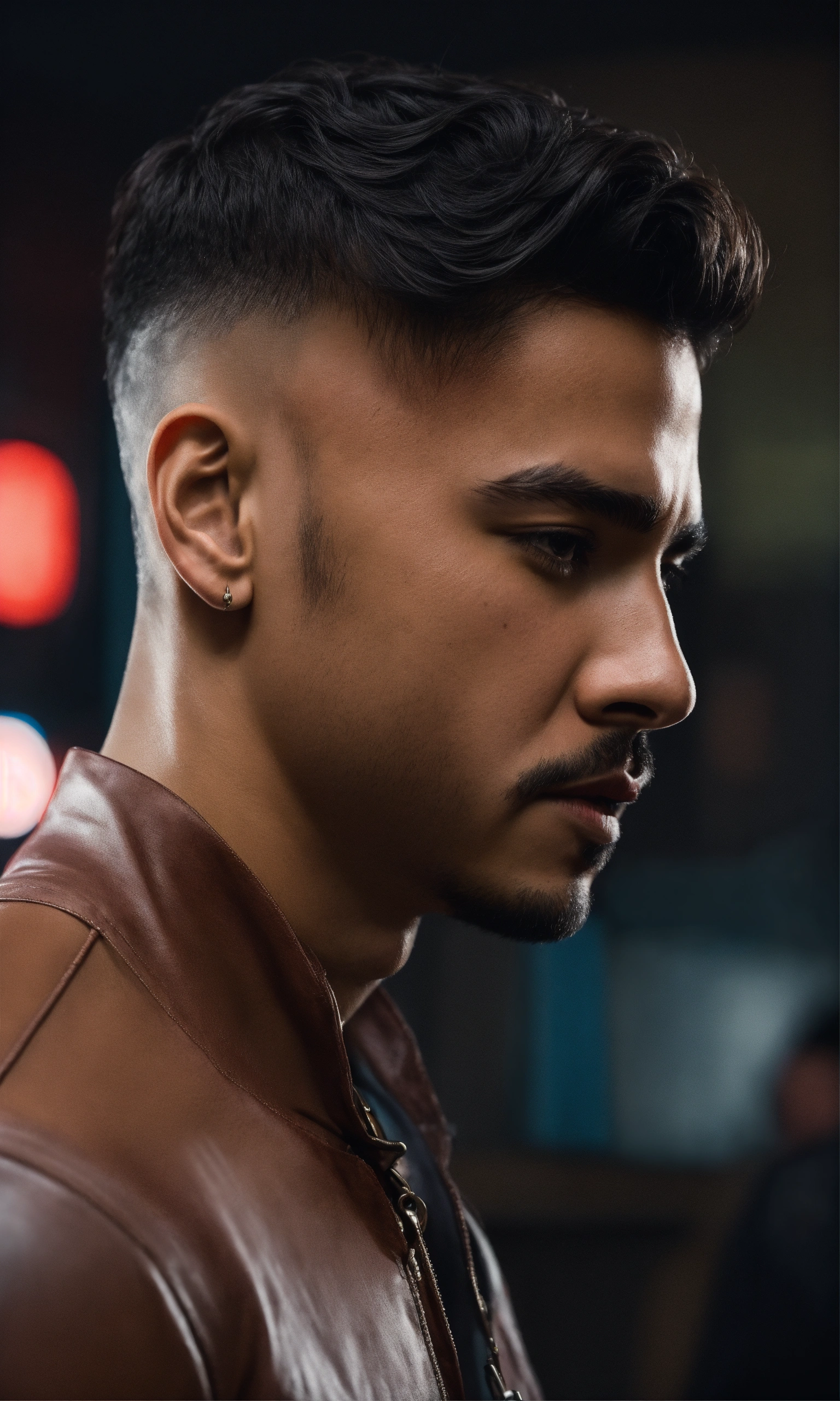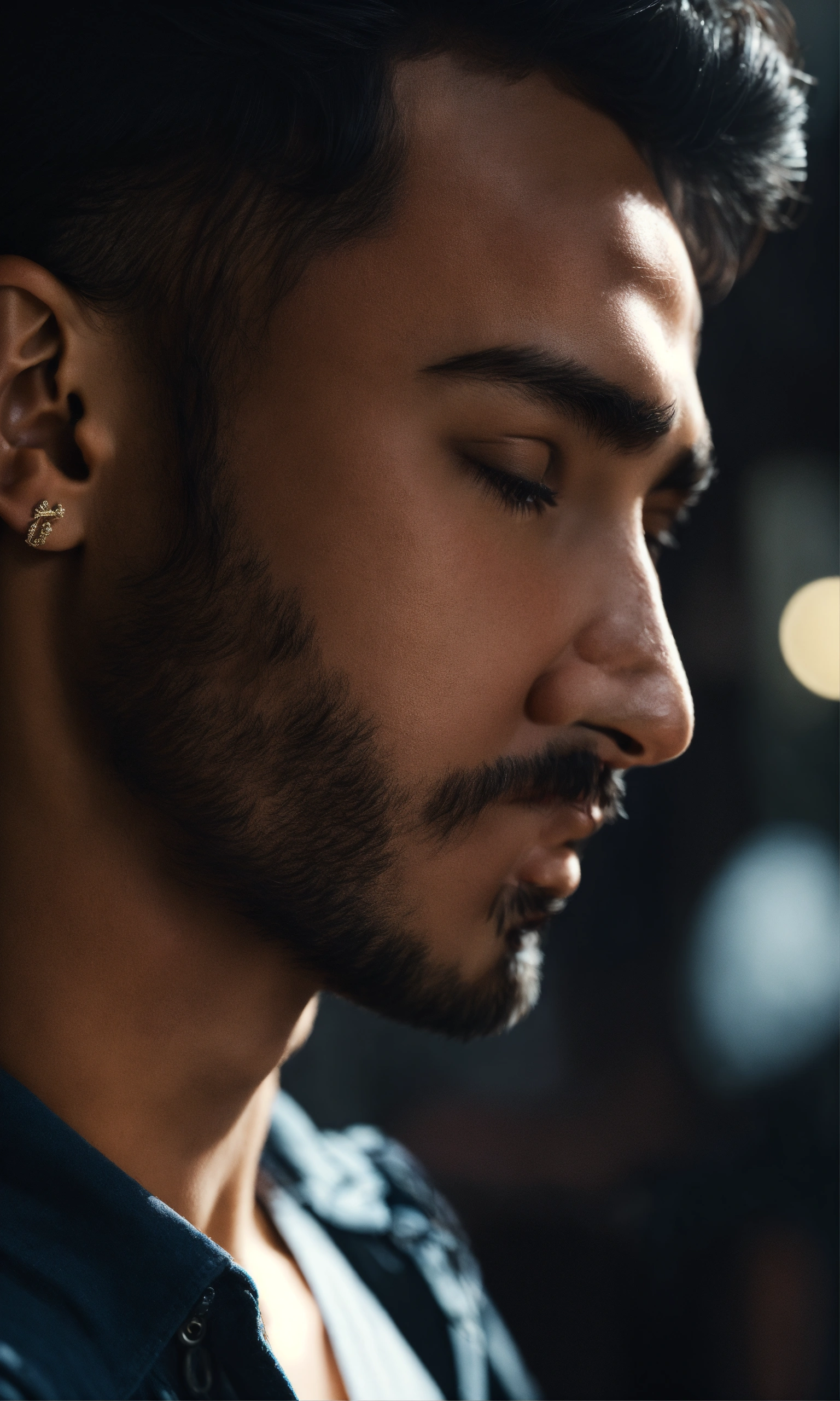 Cinematic photo side view of noncommittal latino cheater, high resolution, realistic details, ultra 8k