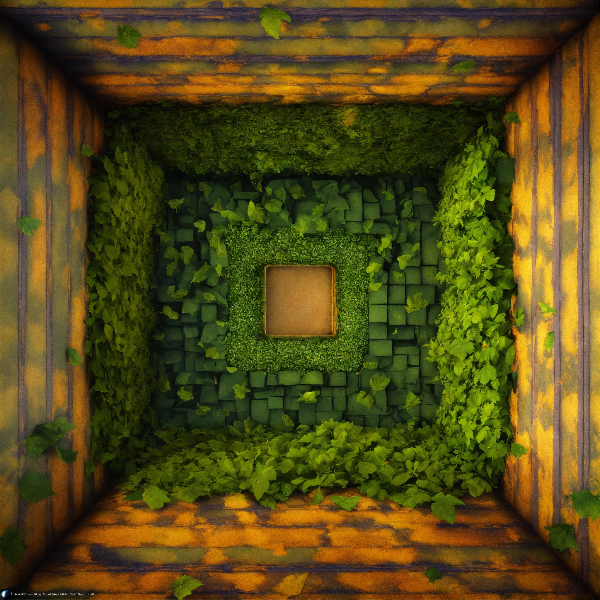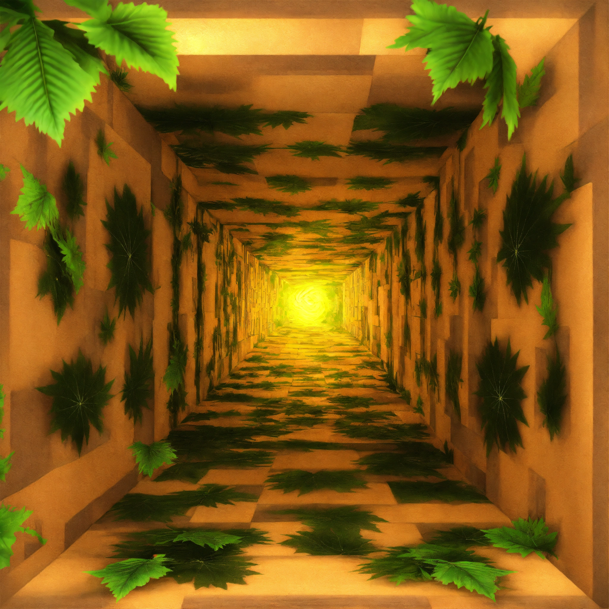 A texture for cubemap 3 sides projection with optical illusion how ganja leaves falling down to the eternity hole