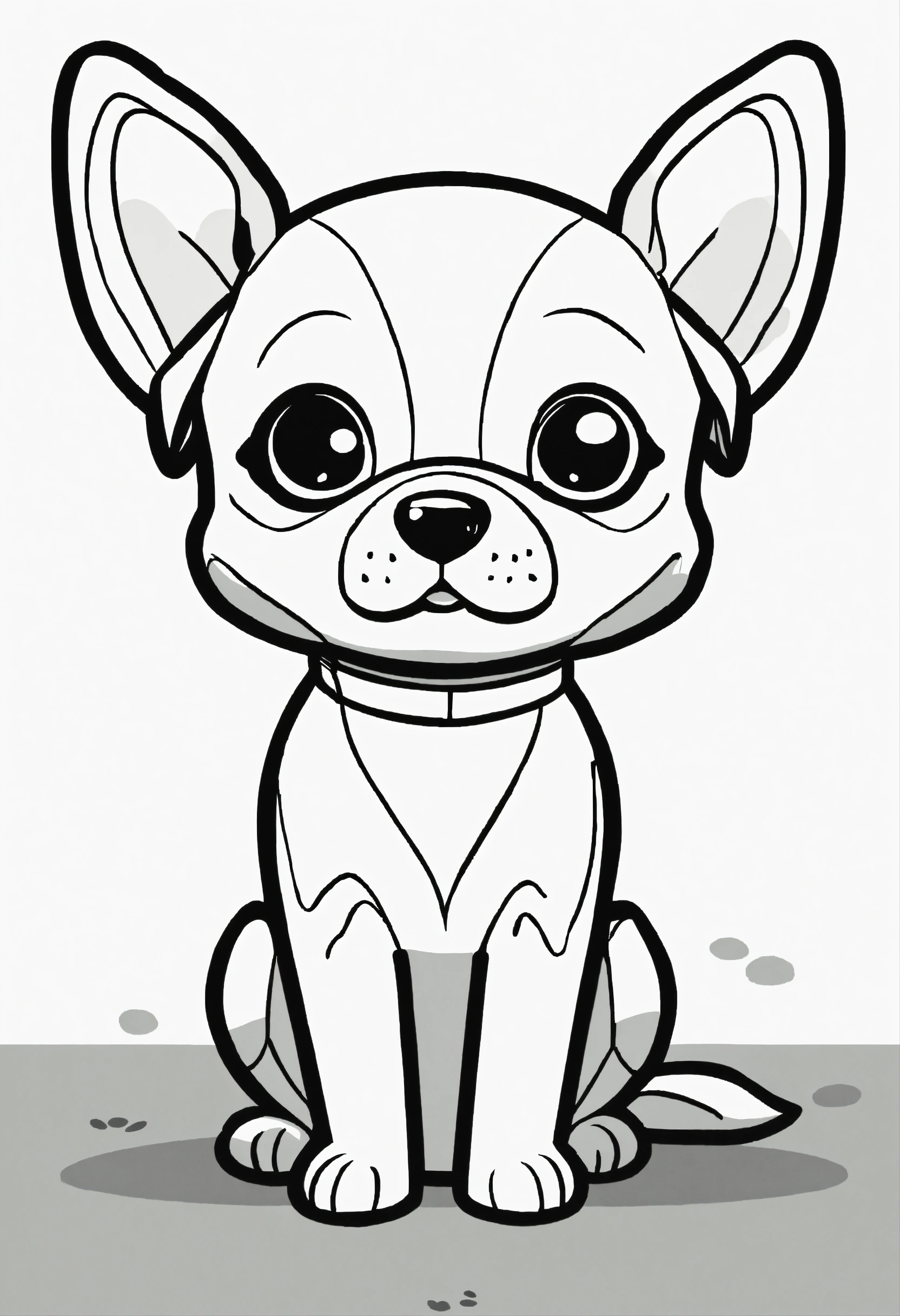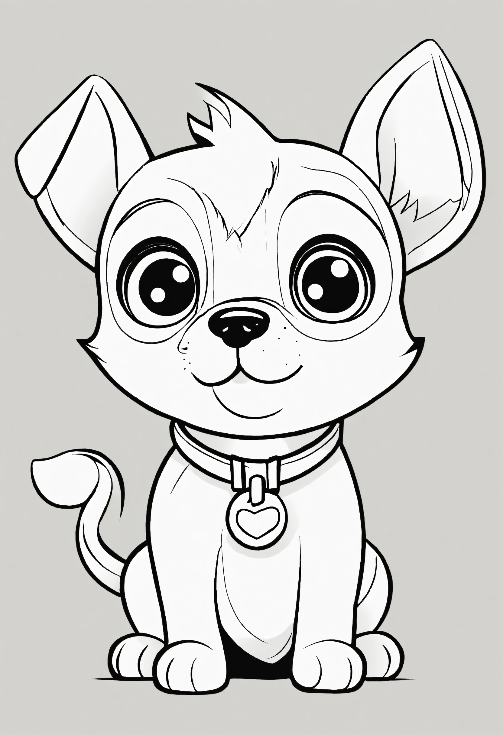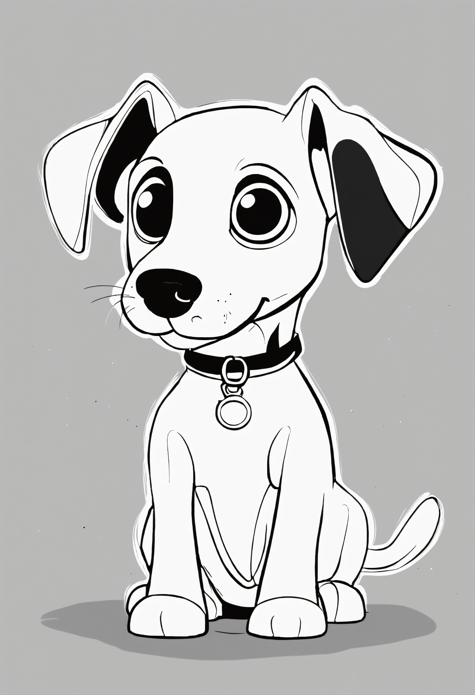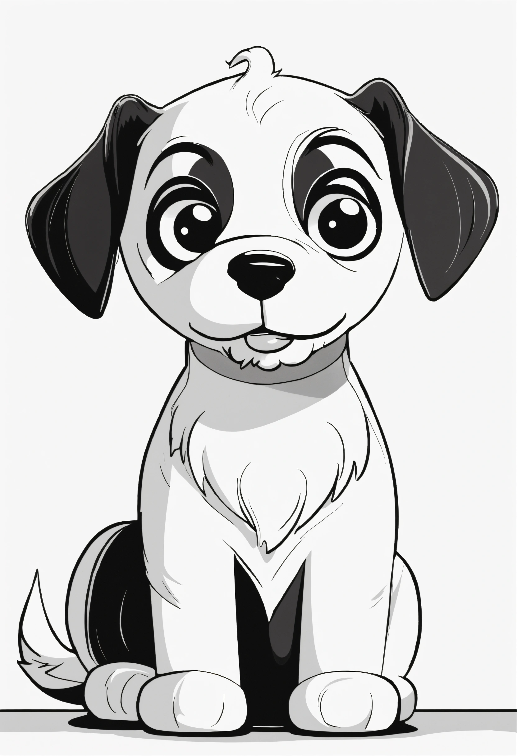 Cute dog, big cute eyes, pixar style, simple outline and shapes, coloring page black and white comic book flat vector, white background