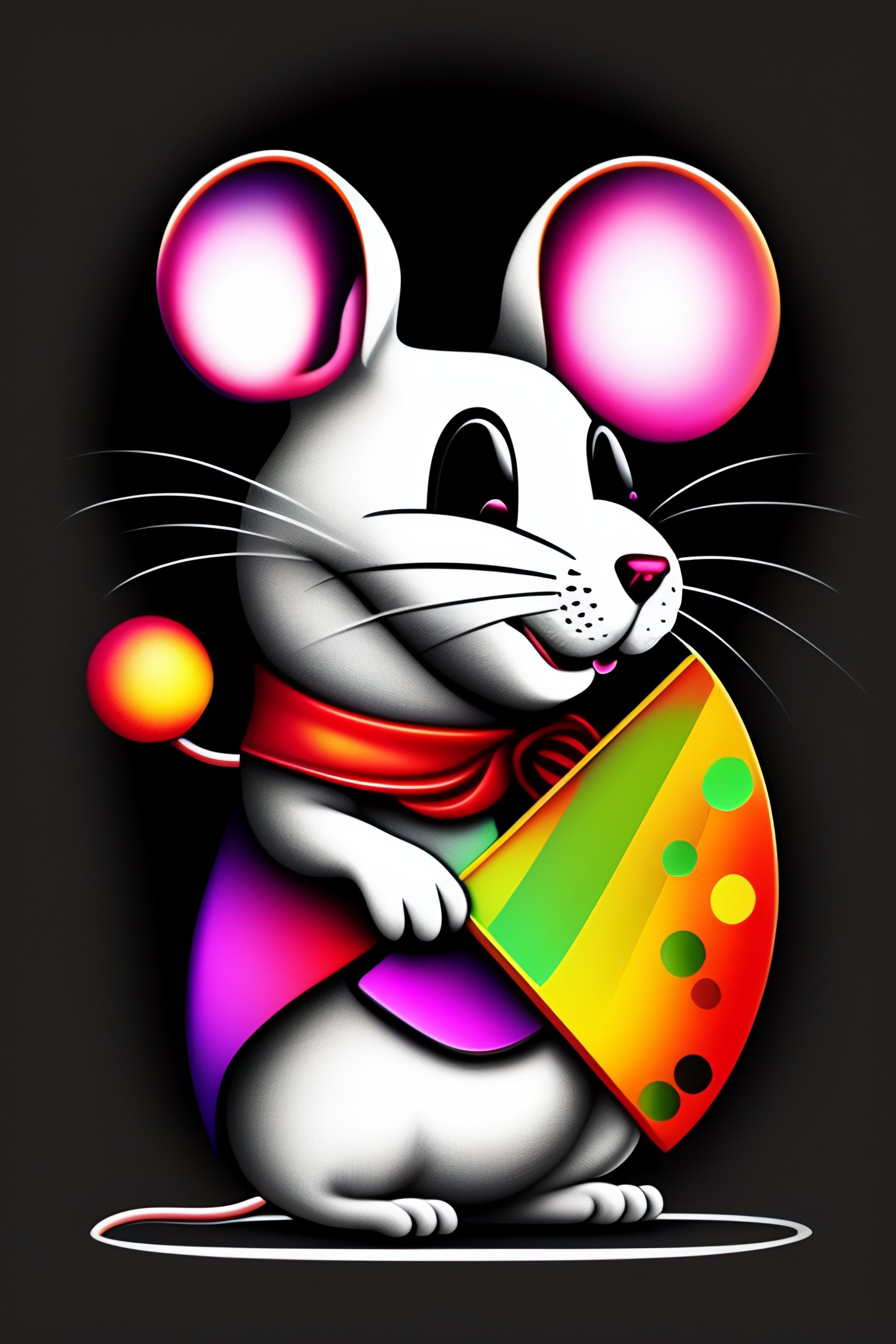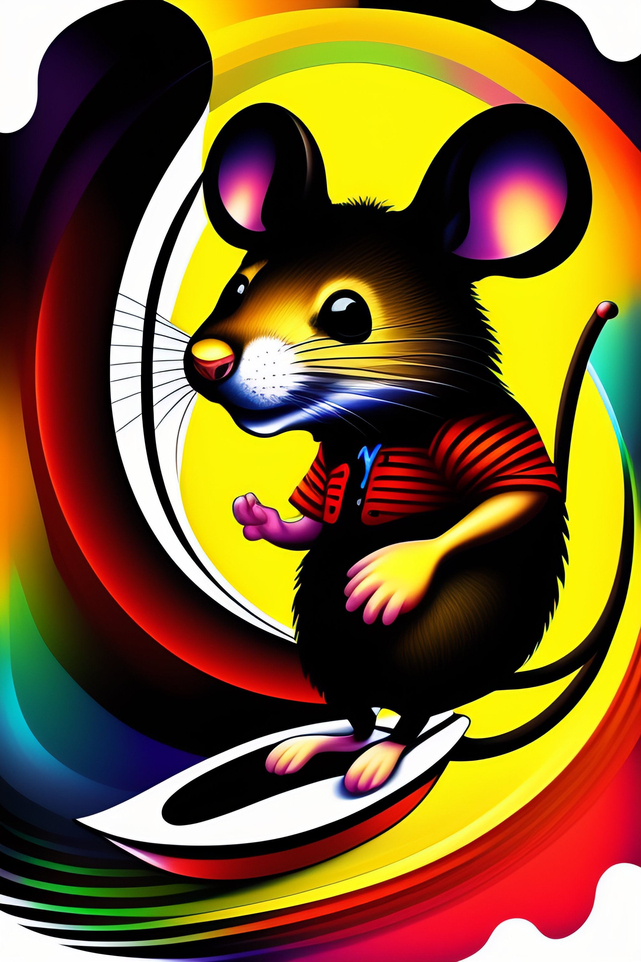 Anthropomorphic mouse traveling, dressed colorful, abstract, creative, masterpiece, cartoon style, line art, black and white