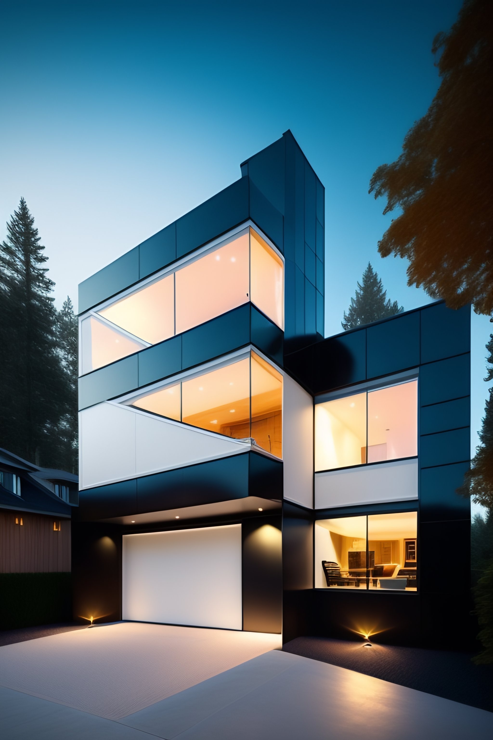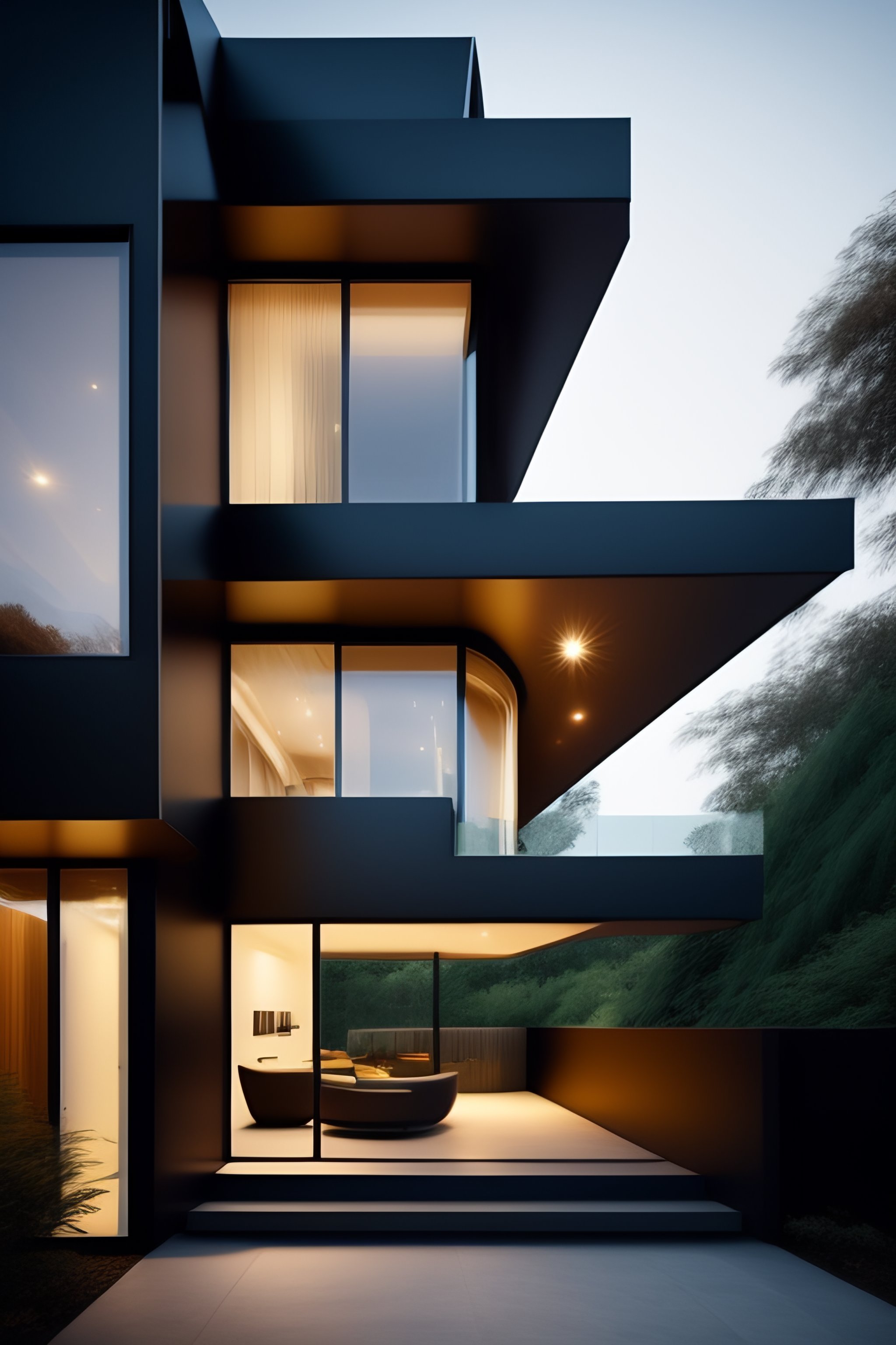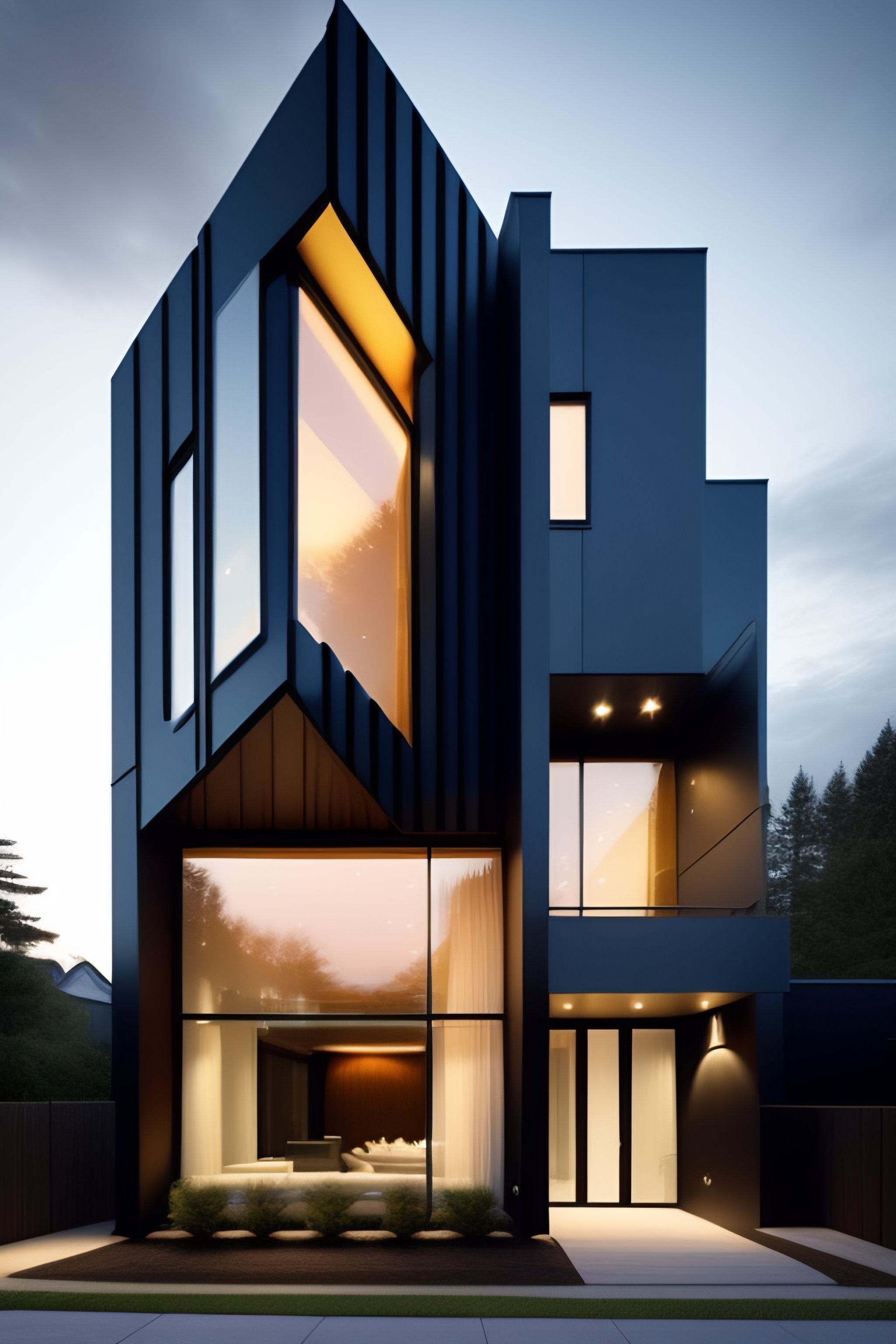 An asymmetrical or unusual design can be particularly effective at creating interest and intrigue, also incorporating elements such as modern architecture, high-tech materials, and futuristic design elements can also help to create a visually striking and memorable facade.