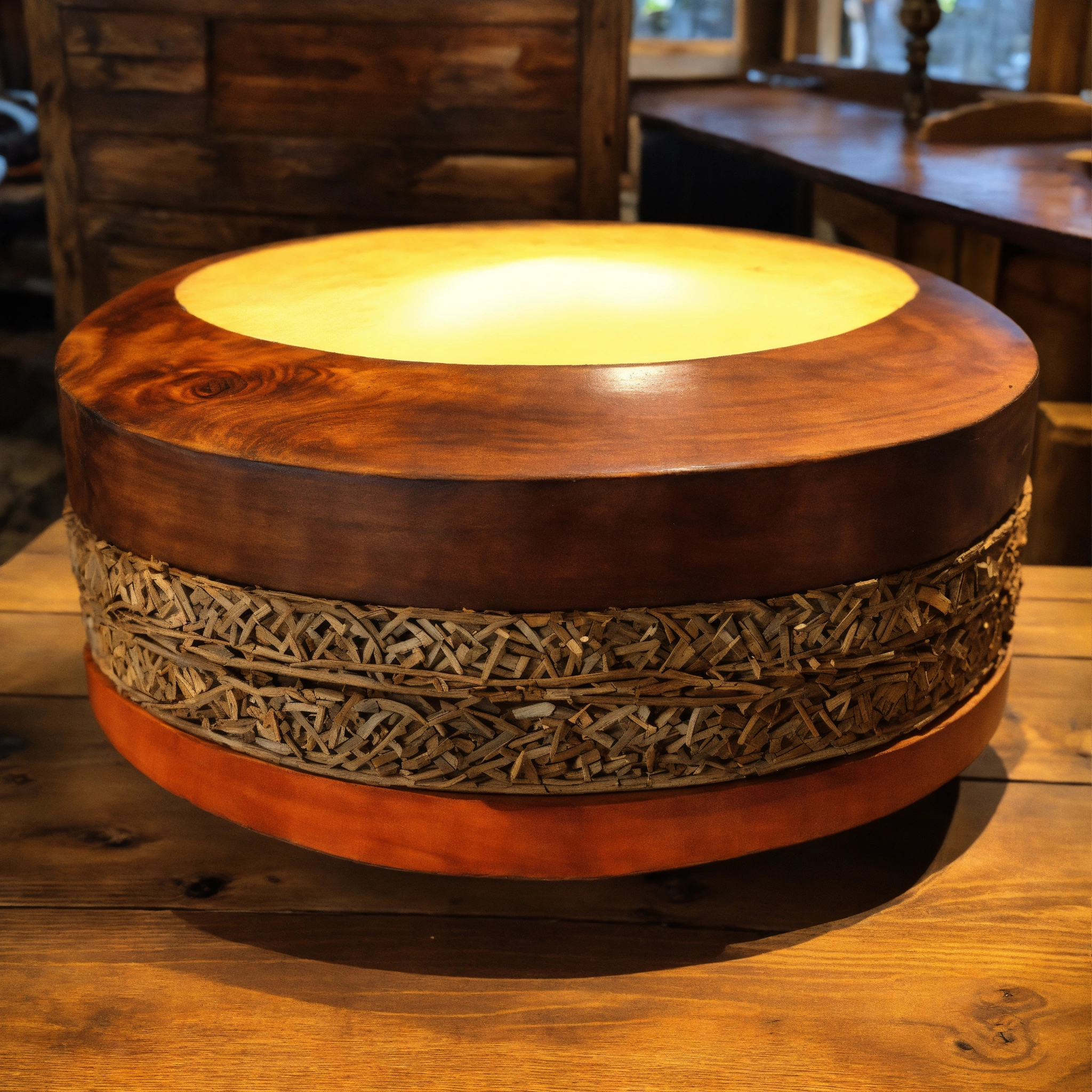 A photo of a handmade item, the item is made of wood and has a rustic look, the item is displayed on a wooden table