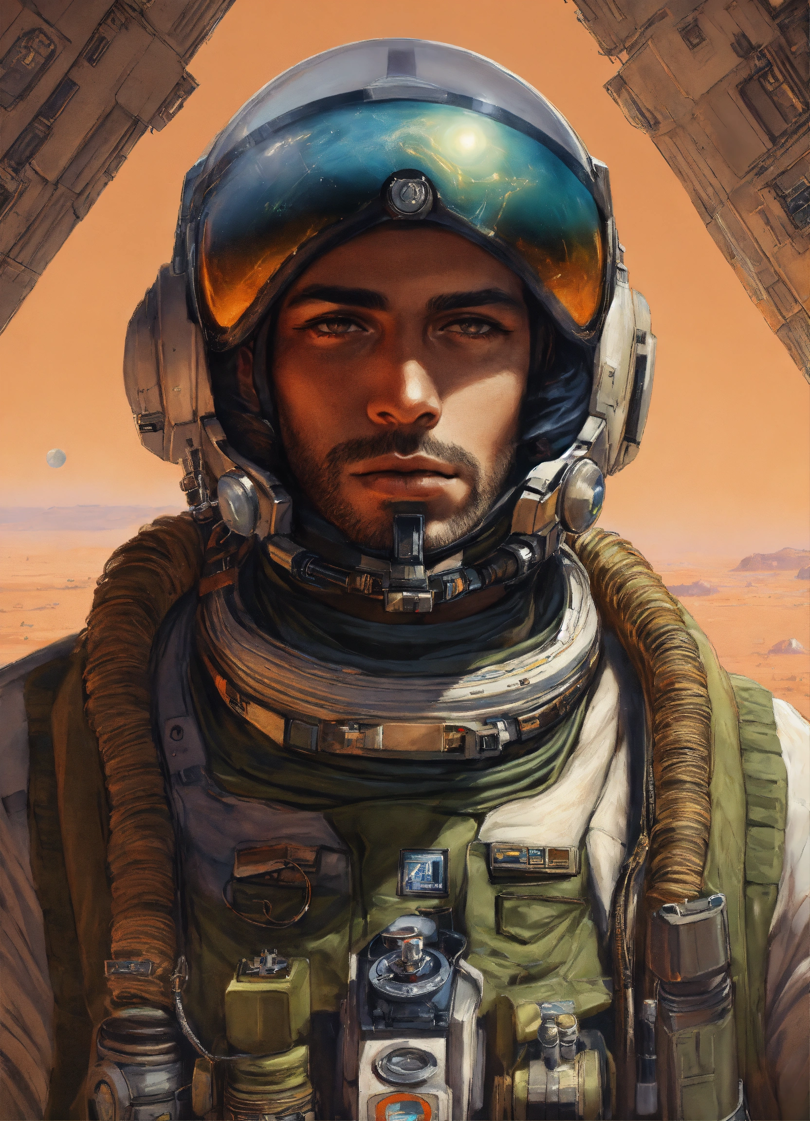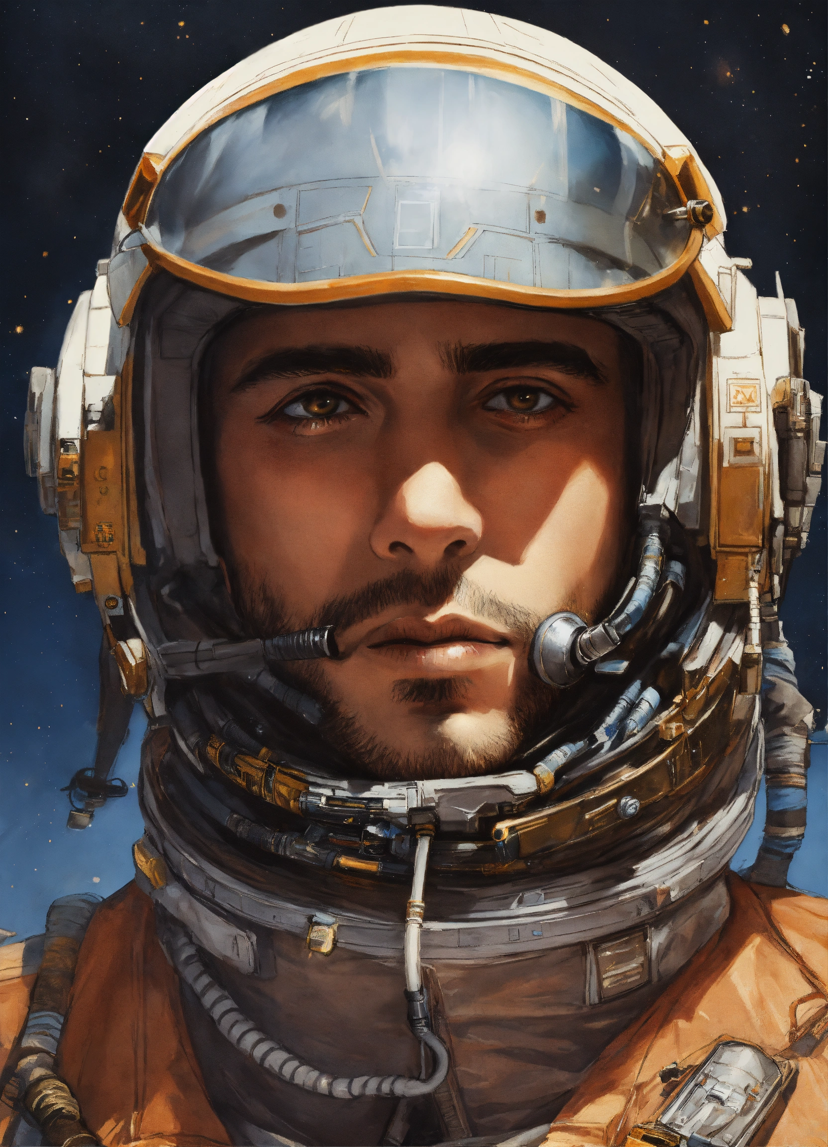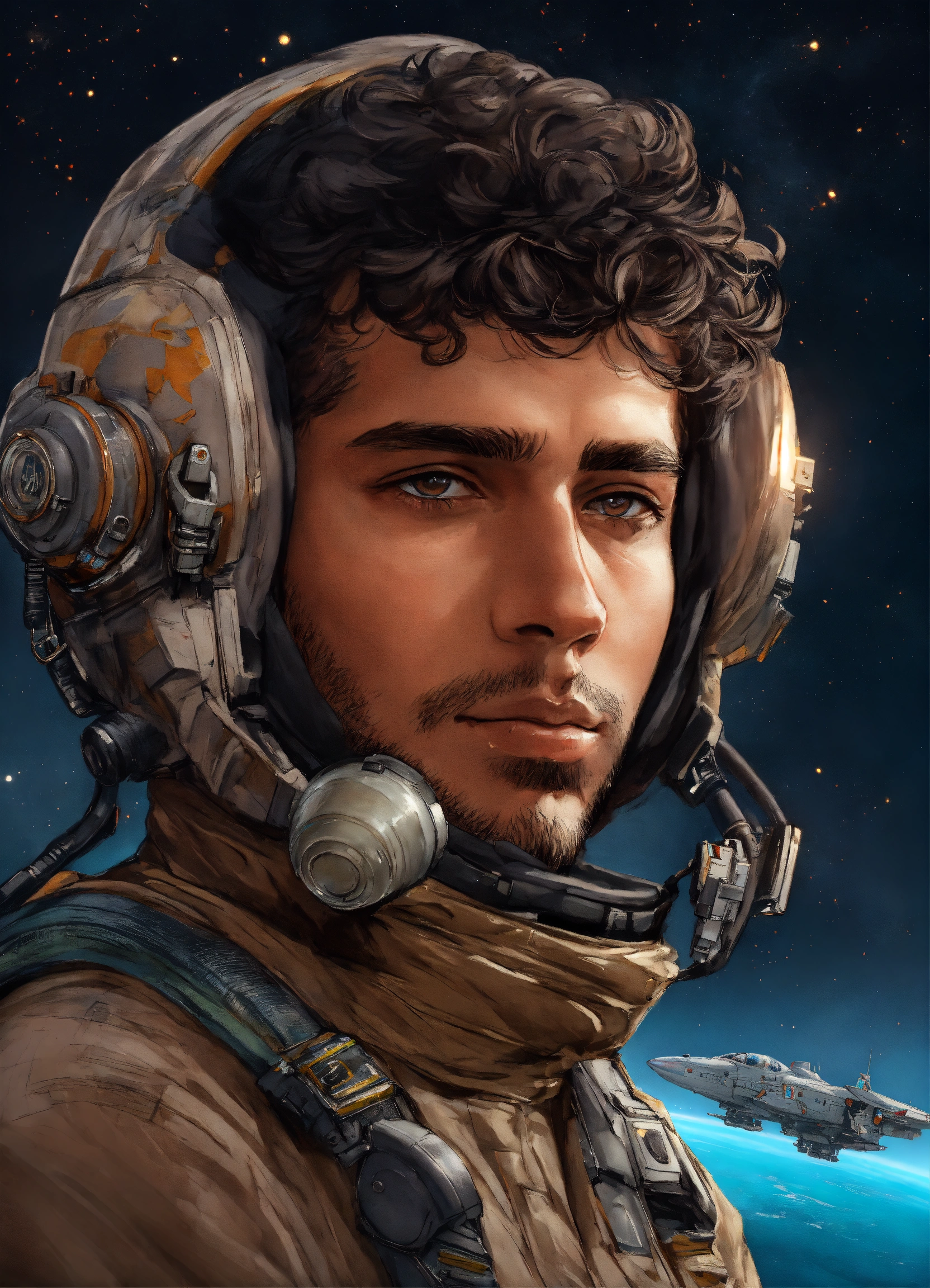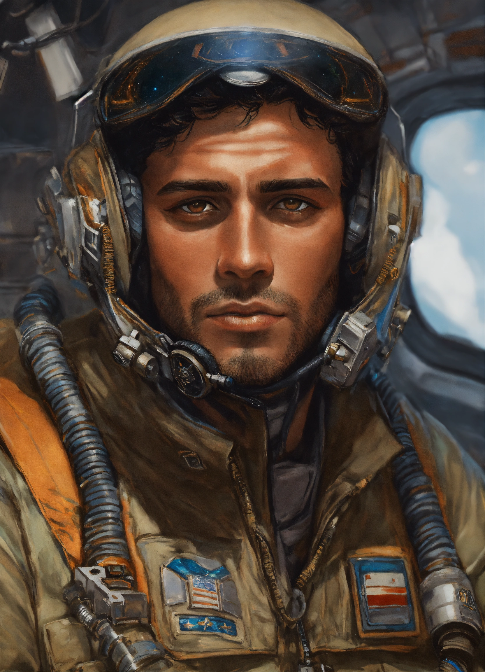Arab male space fighter pilot, coriolis the third horizon, hyper detailed, artist gustaf ekelund, face view