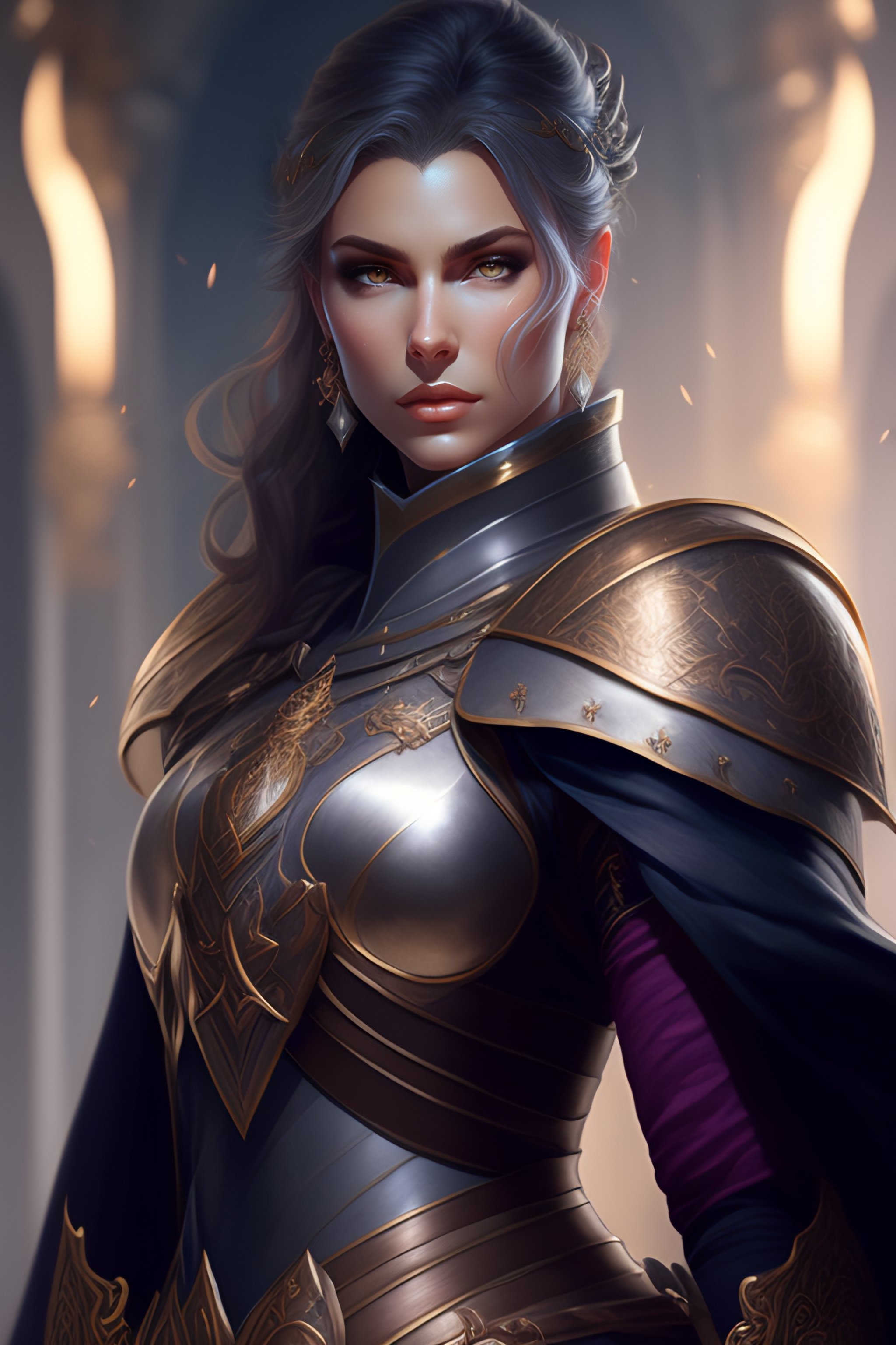 Female paladin in center, dnd, fantasy, short gray hair, holding sword, dark light night, intricate, elegant, sharp focus, illustration, highly detailed, dark lighting, full body, digital painting, concept art, matte, art by wlop and artgerm and greg rutkowski and alphonse mucha, masterpiece