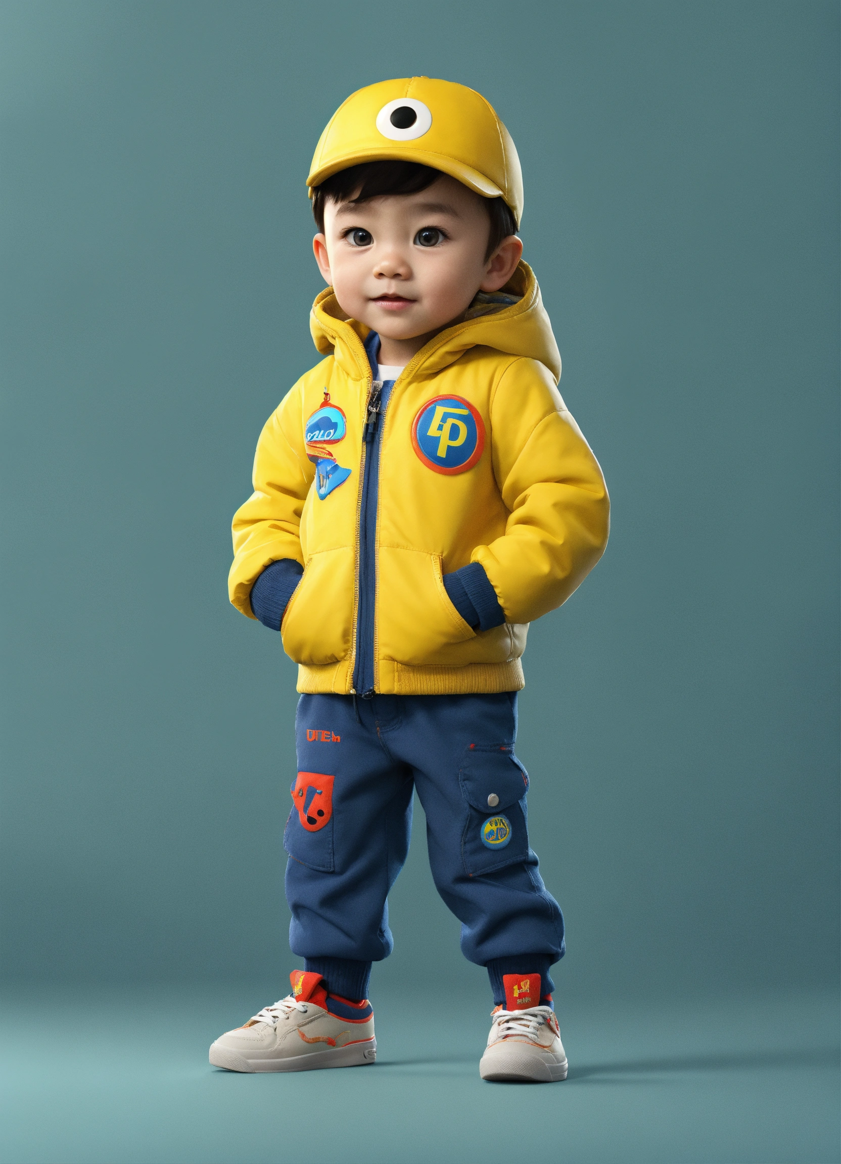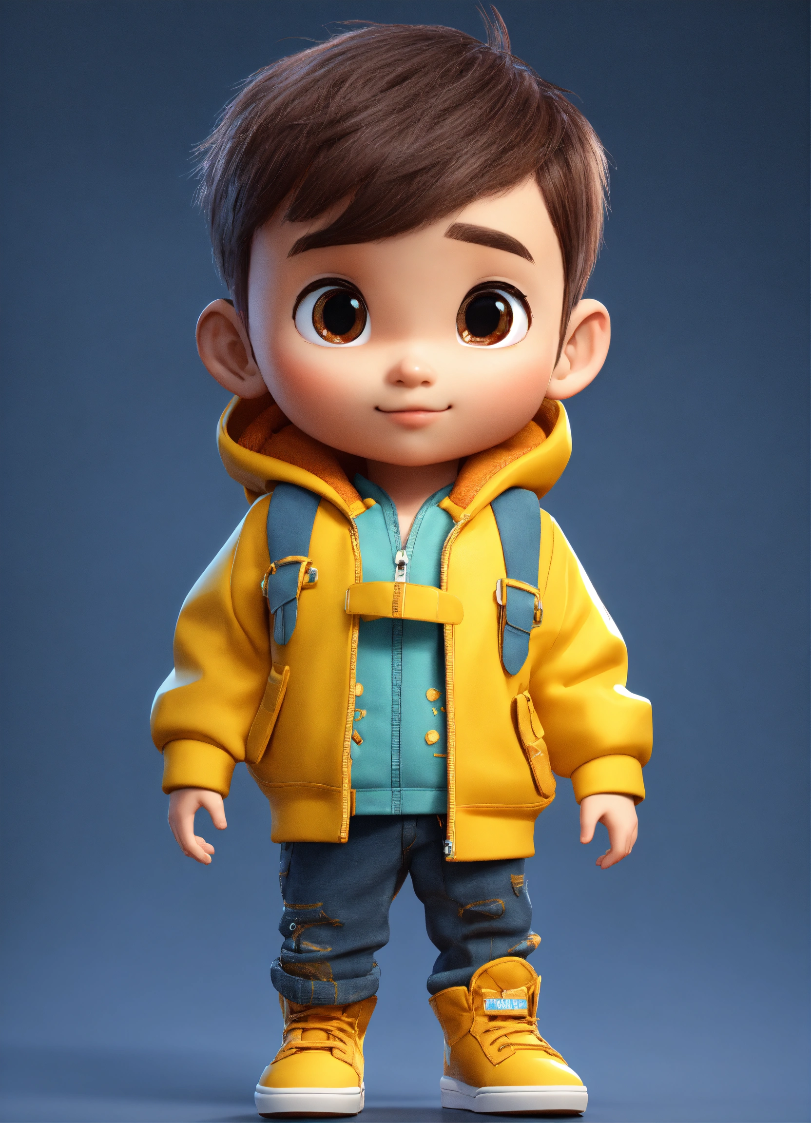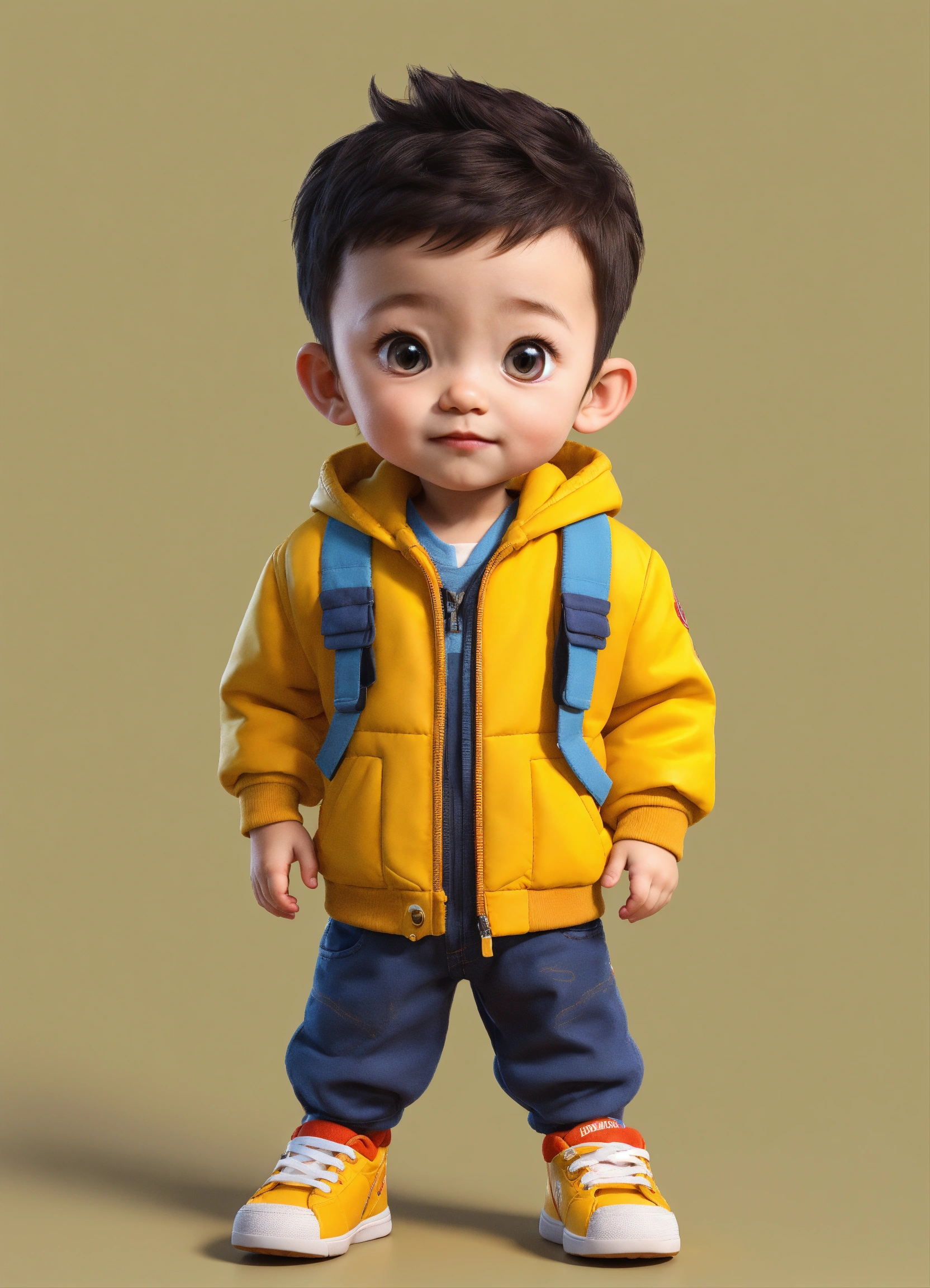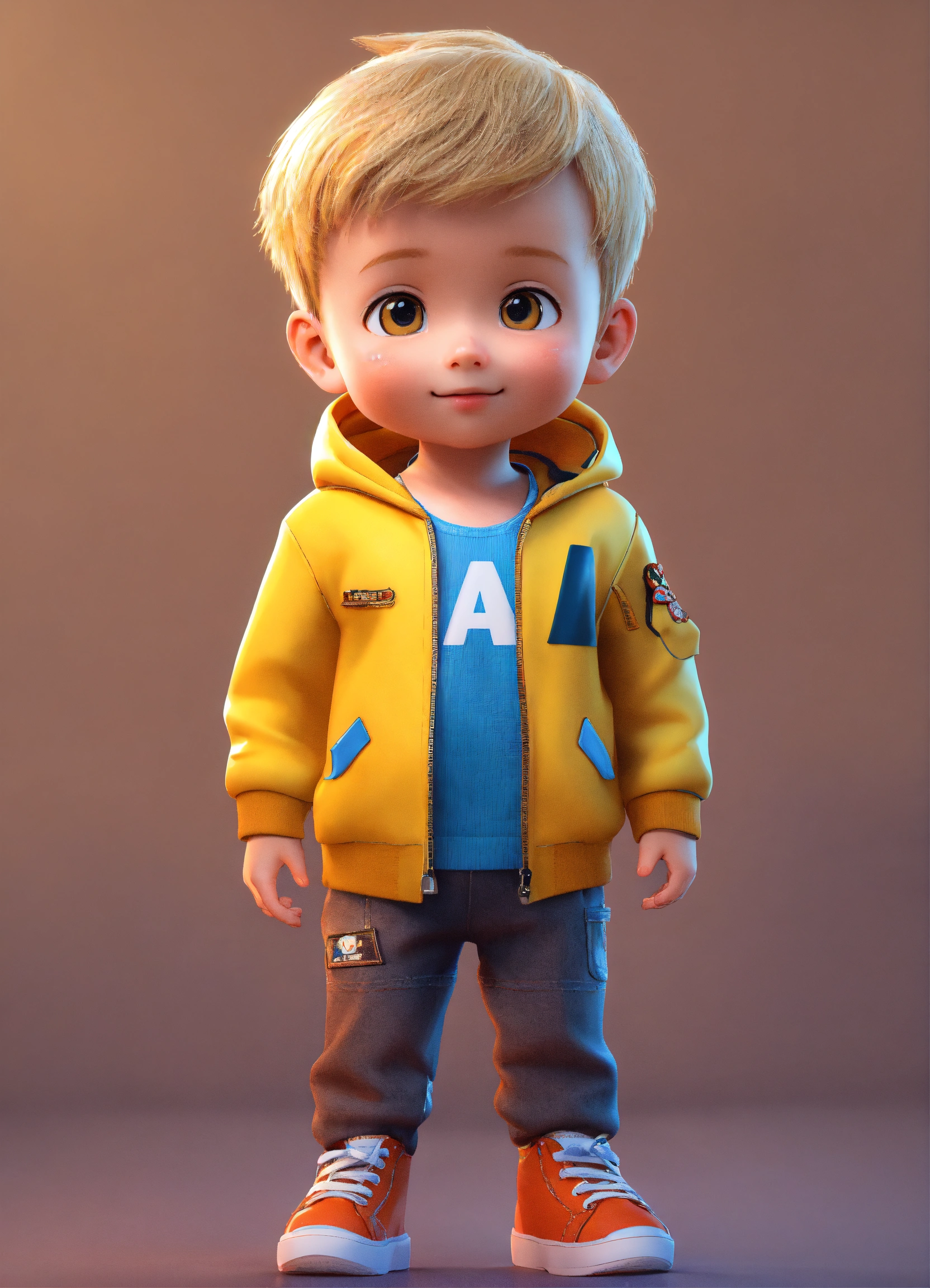 A beautiful young a 2years old boy, full body image of a cute little chibi boy realistic, vivid colors octane render trending on artstation, united colour background wall, a yellow jacket, beautiful, attractive, 3 d rendering, pixar cute, inspired by du qiong, blond boy, andrew dickson, realistic, 3d, cartoon style, well shaded, smooth, pixar.