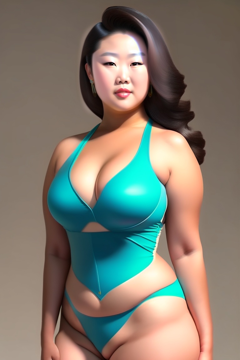 Thick beautiful asian woman wearing swimsuit