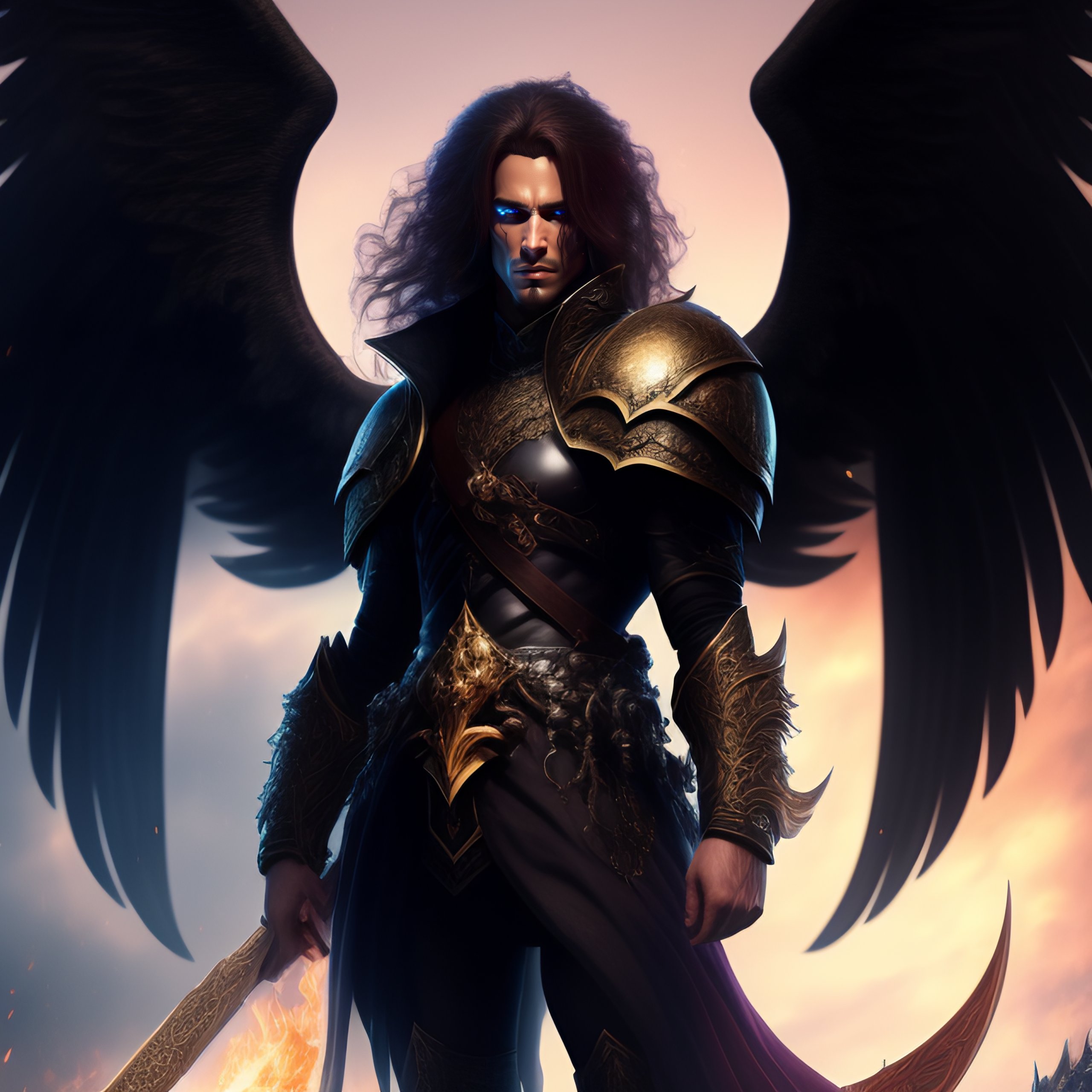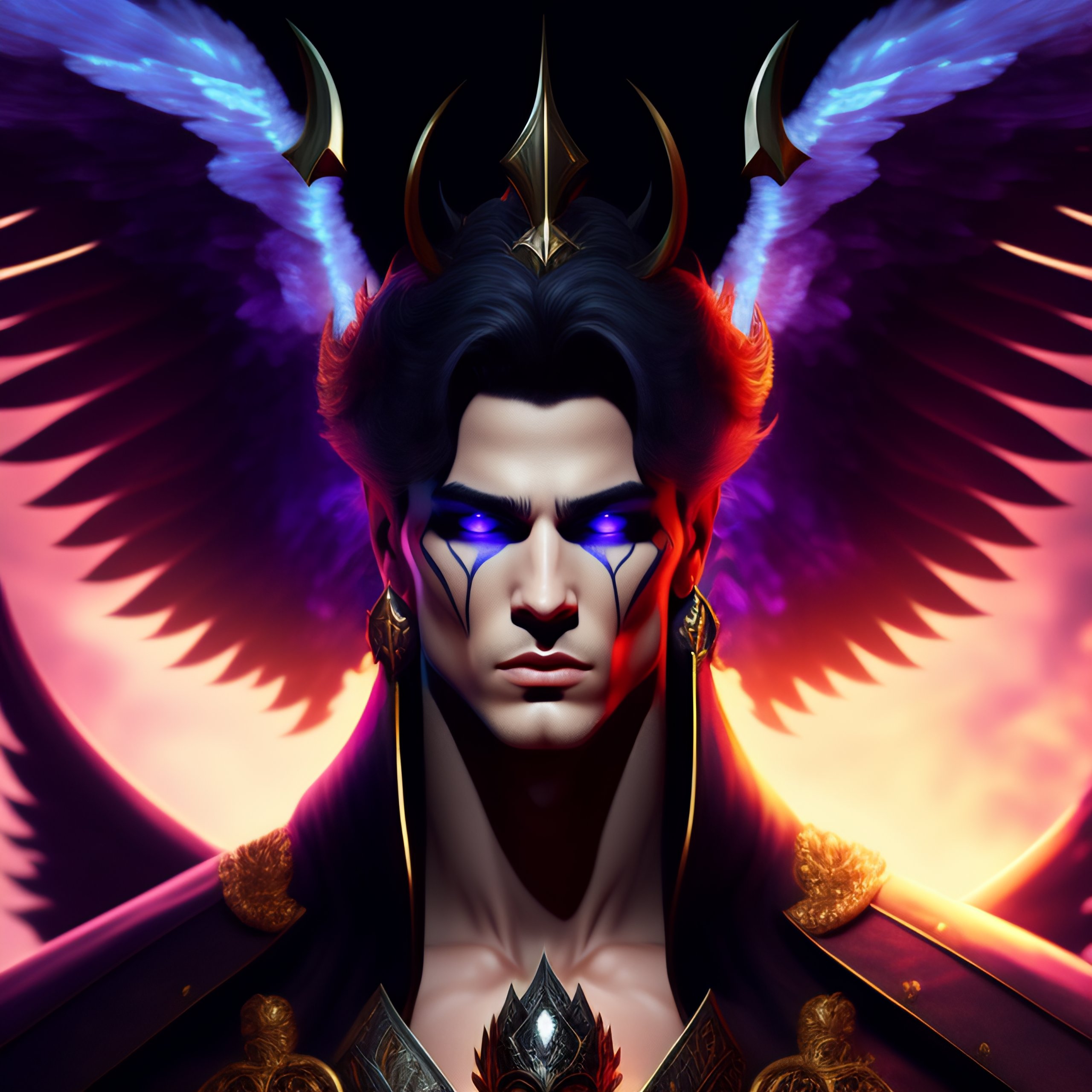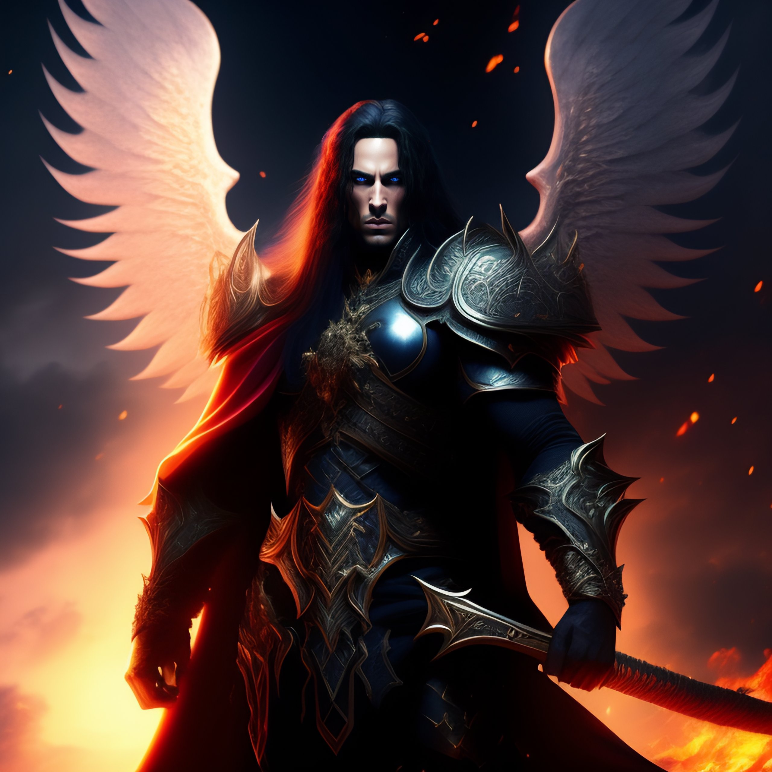 Draw abaddon, the fallen angel of abyss, based on everything you know about him. he was leading heavan's armies in a war with hell and demons. draw him in the middle of that battle.